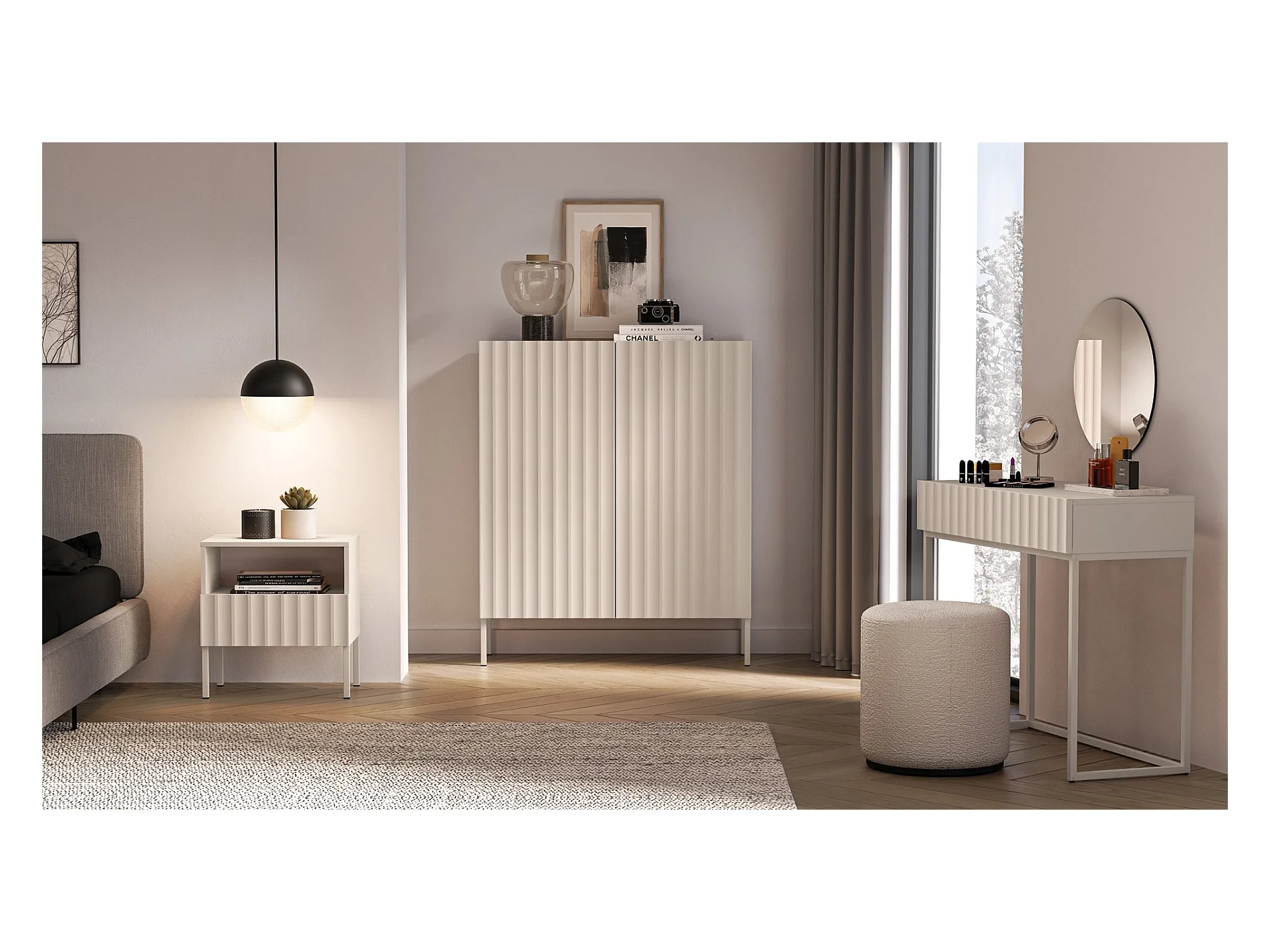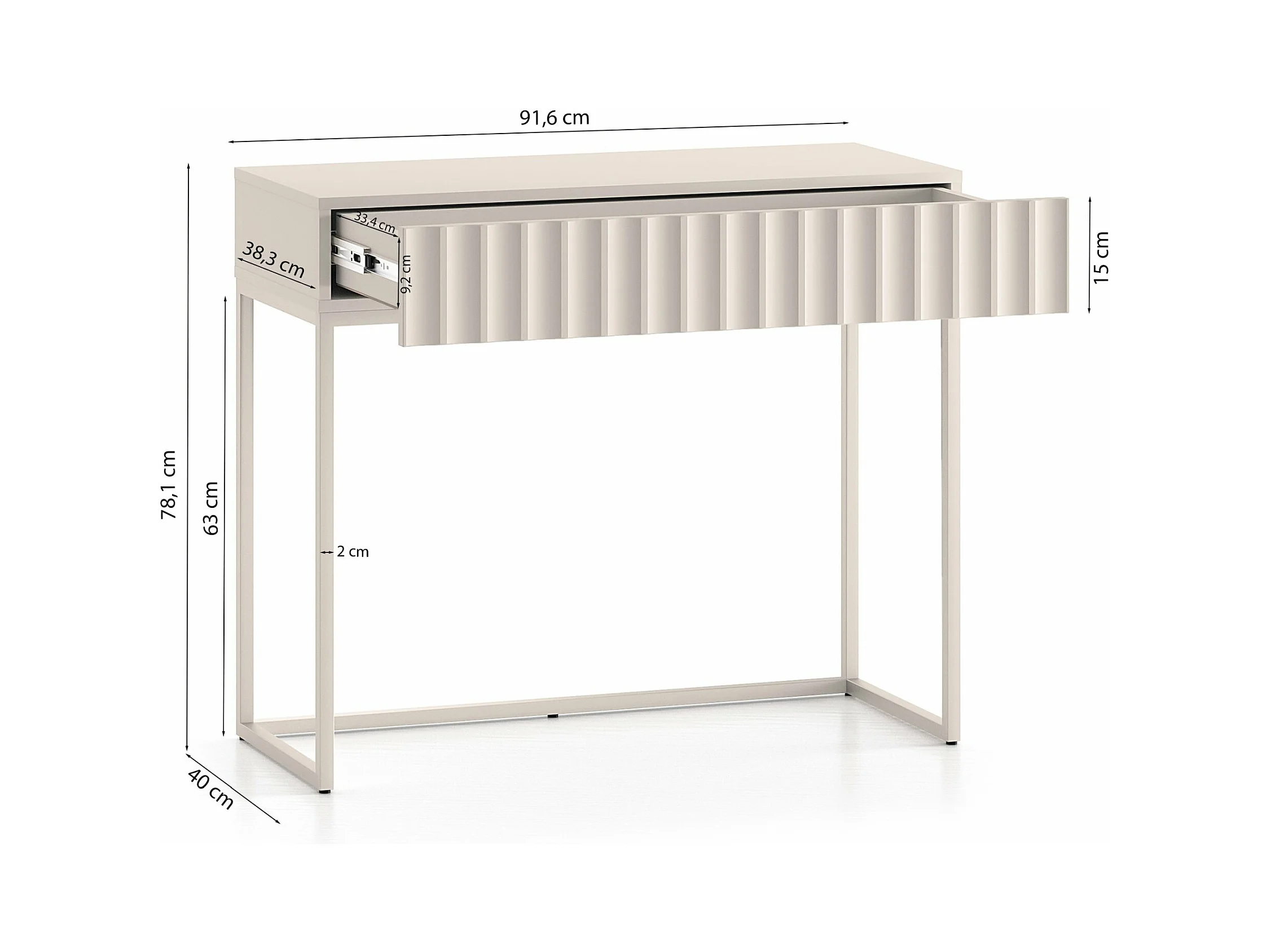 Coiffeuse avec tiroir et façades cannelées - 91 cm - beige clair - DERRIVA