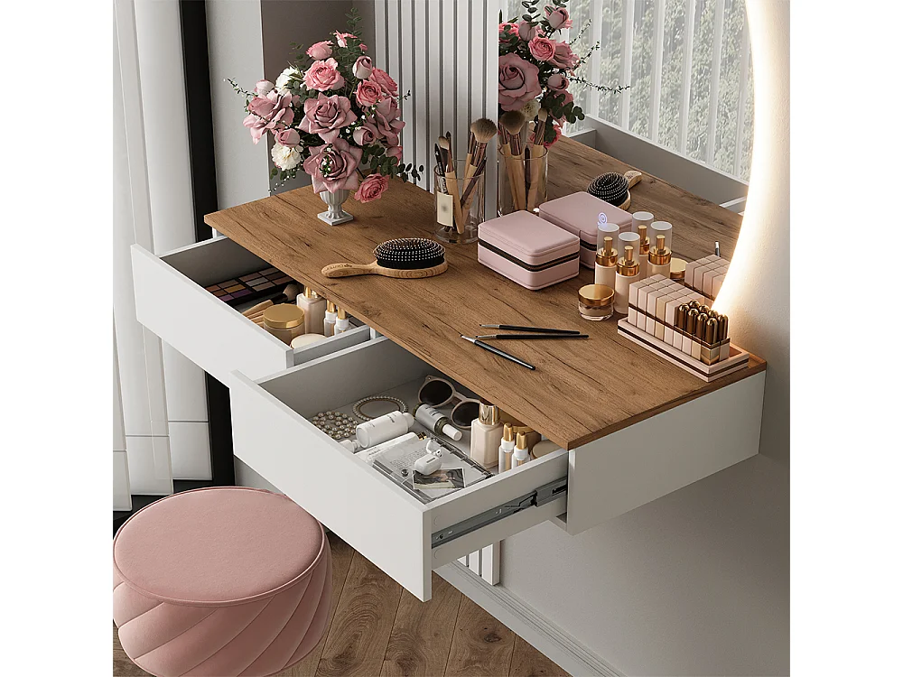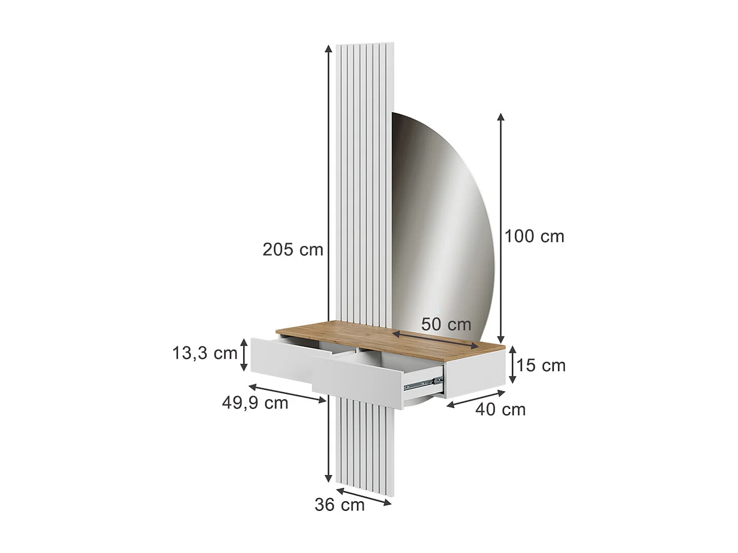 Coiffeuse blanc/chêne 100x40x205 melina