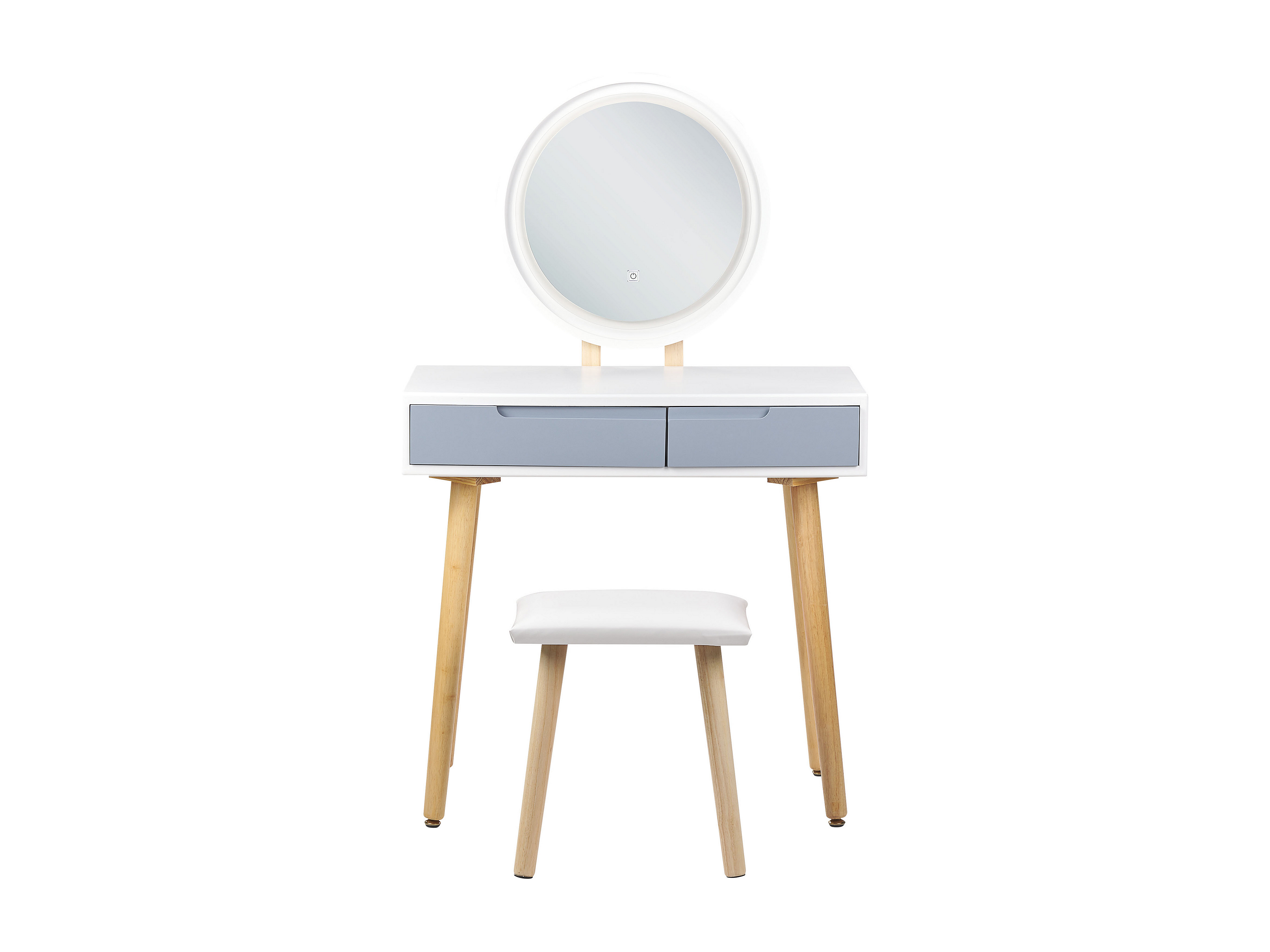 Coiffeuse avec miroir et tabouret SOYE LED Blanc