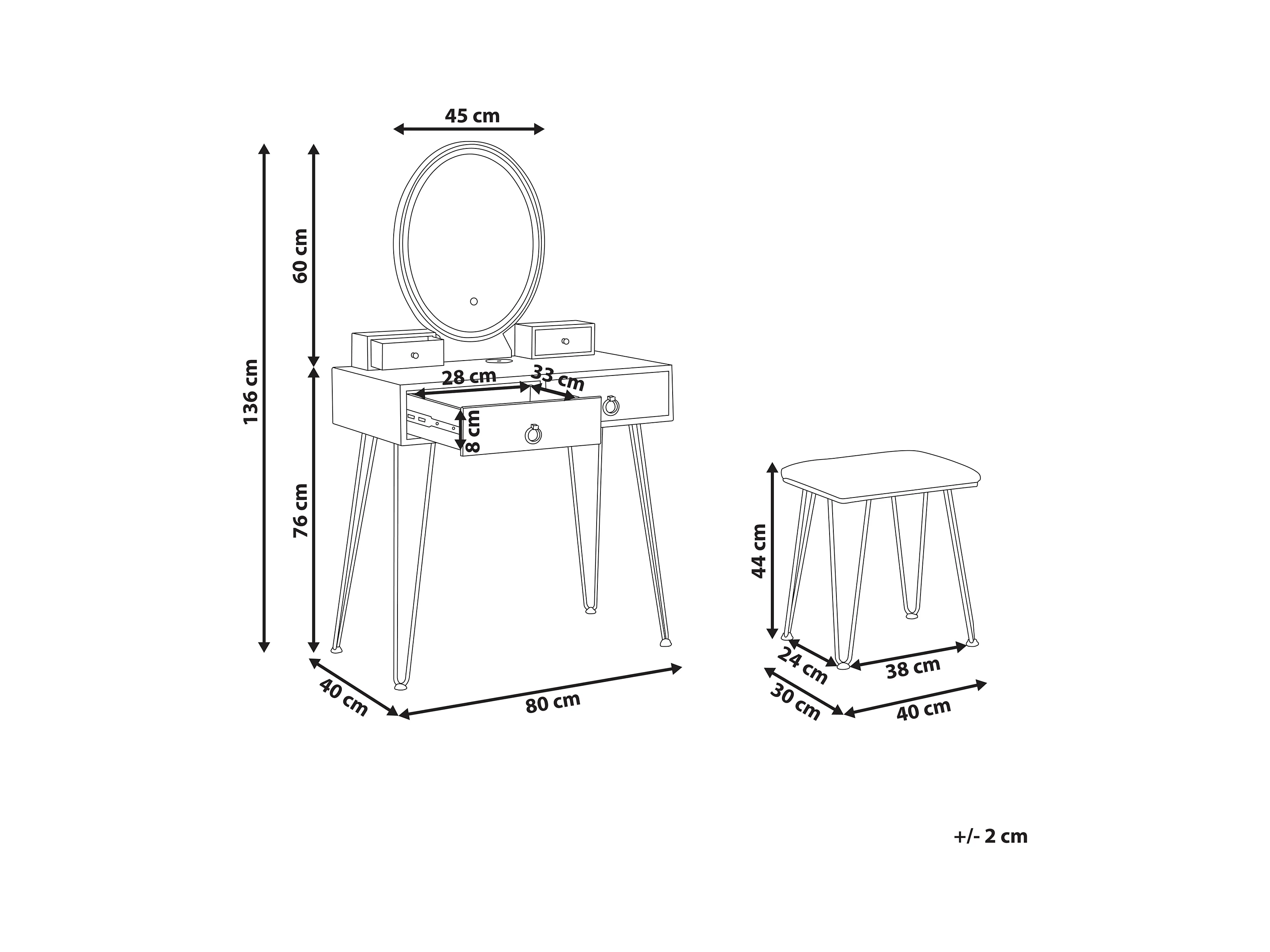 Coiffeuse avec miroir et tabouret YVES LED Blanc