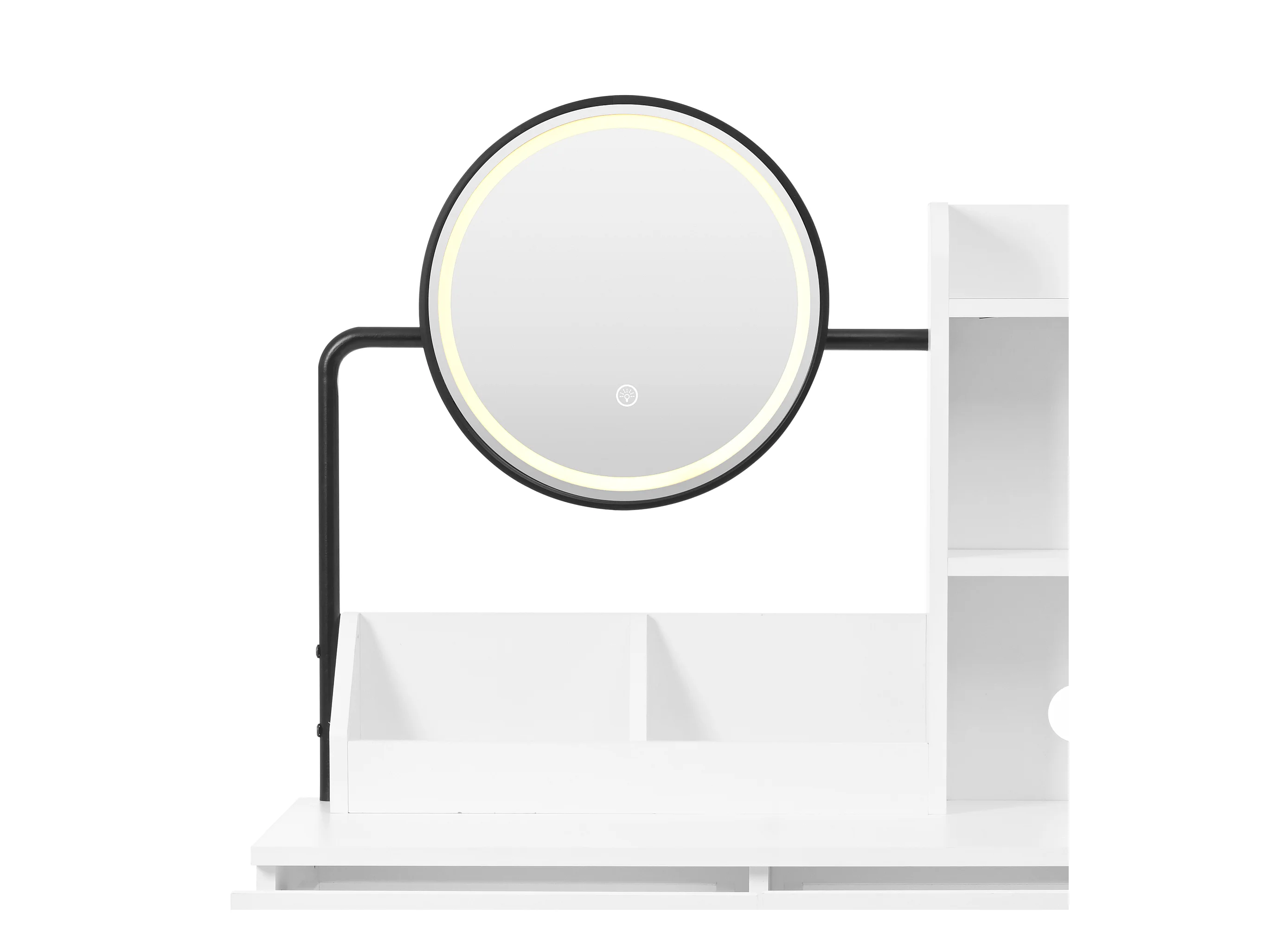 Coiffeuse blanche avec 3 tiroirs de rangement et 1 porte, miroir LED - sans tabouret