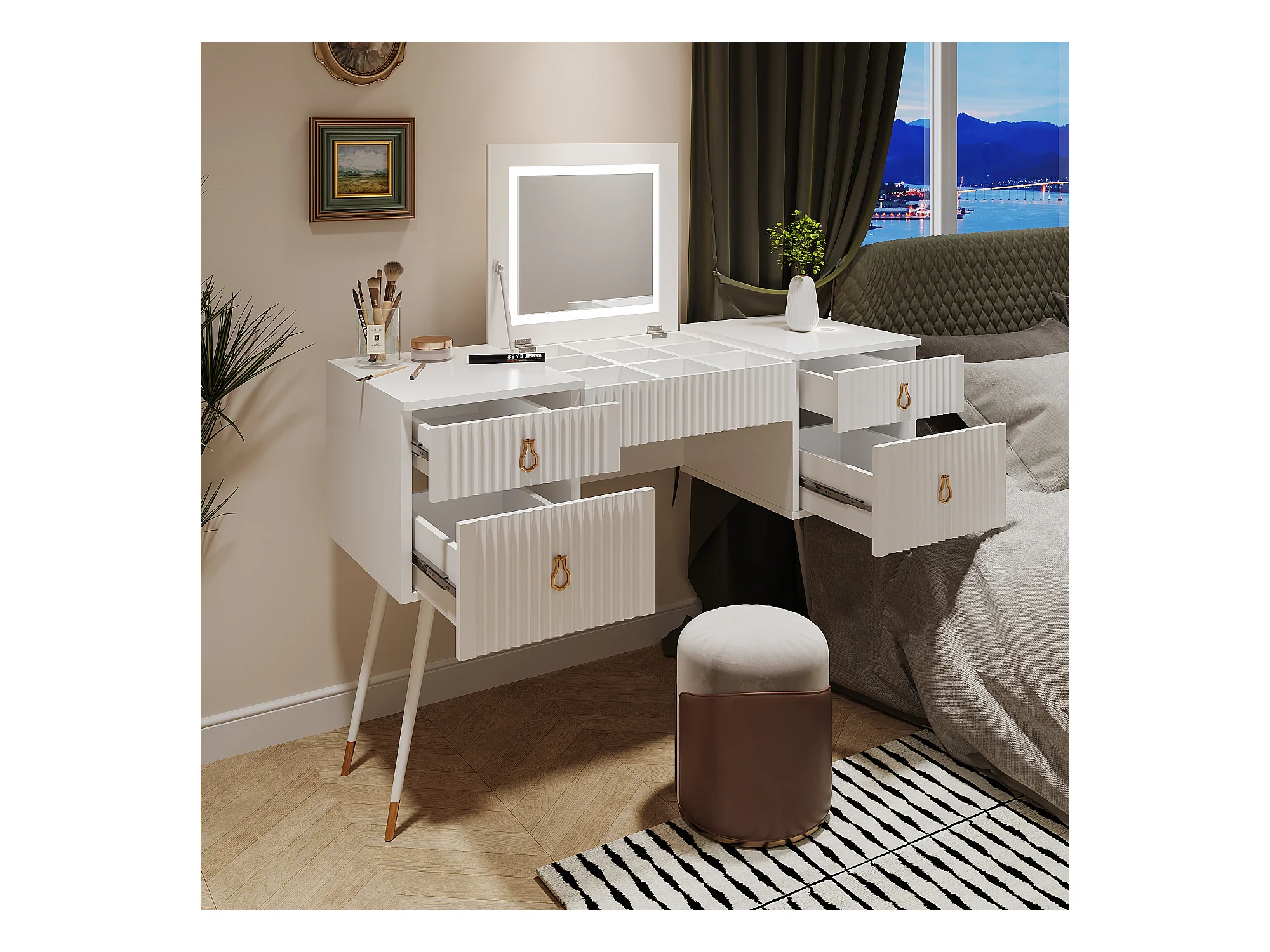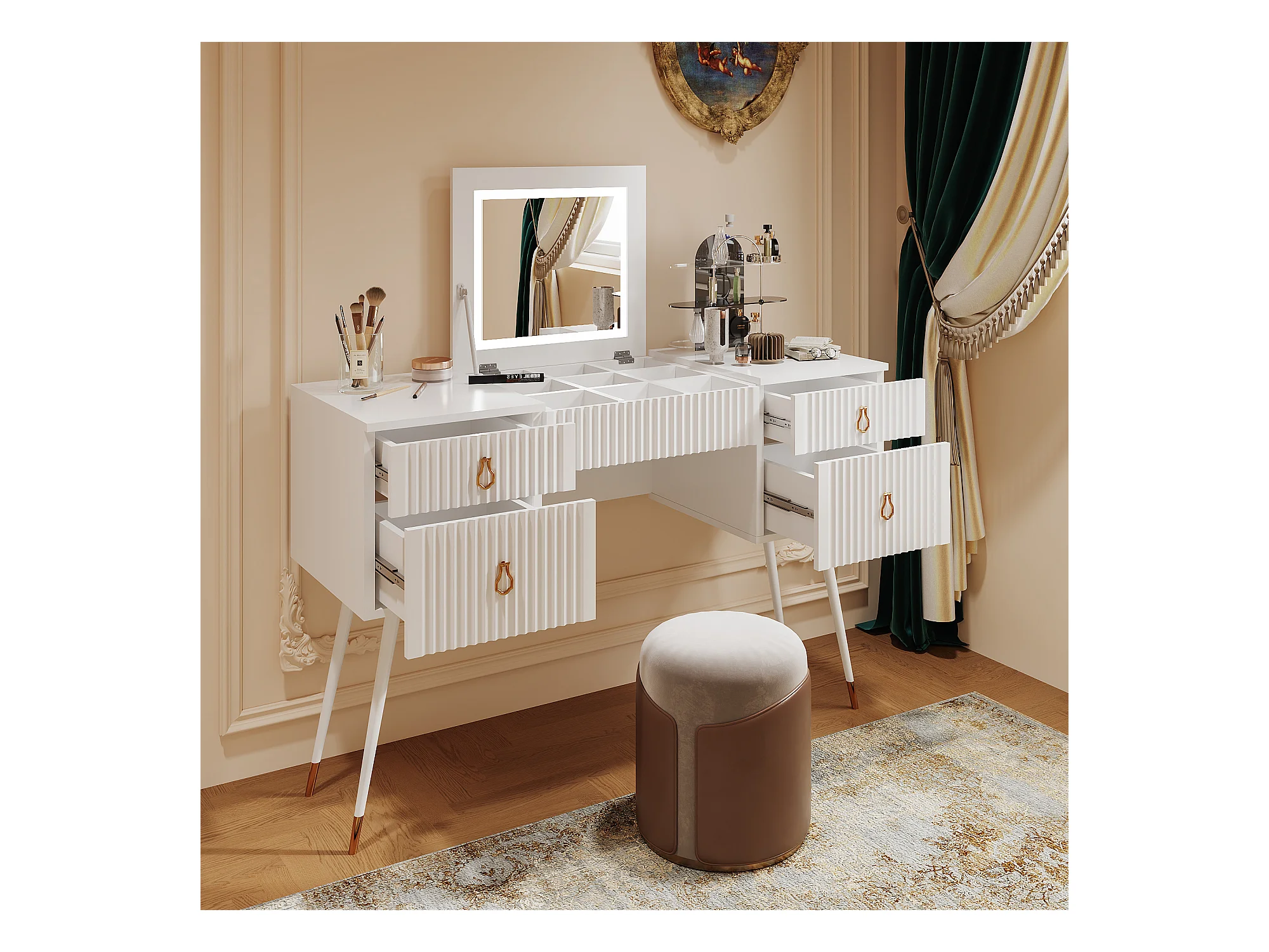 Coiffeuse(Contient un tabouret de maquillage),Tabouret de rangement multifonctionnel
