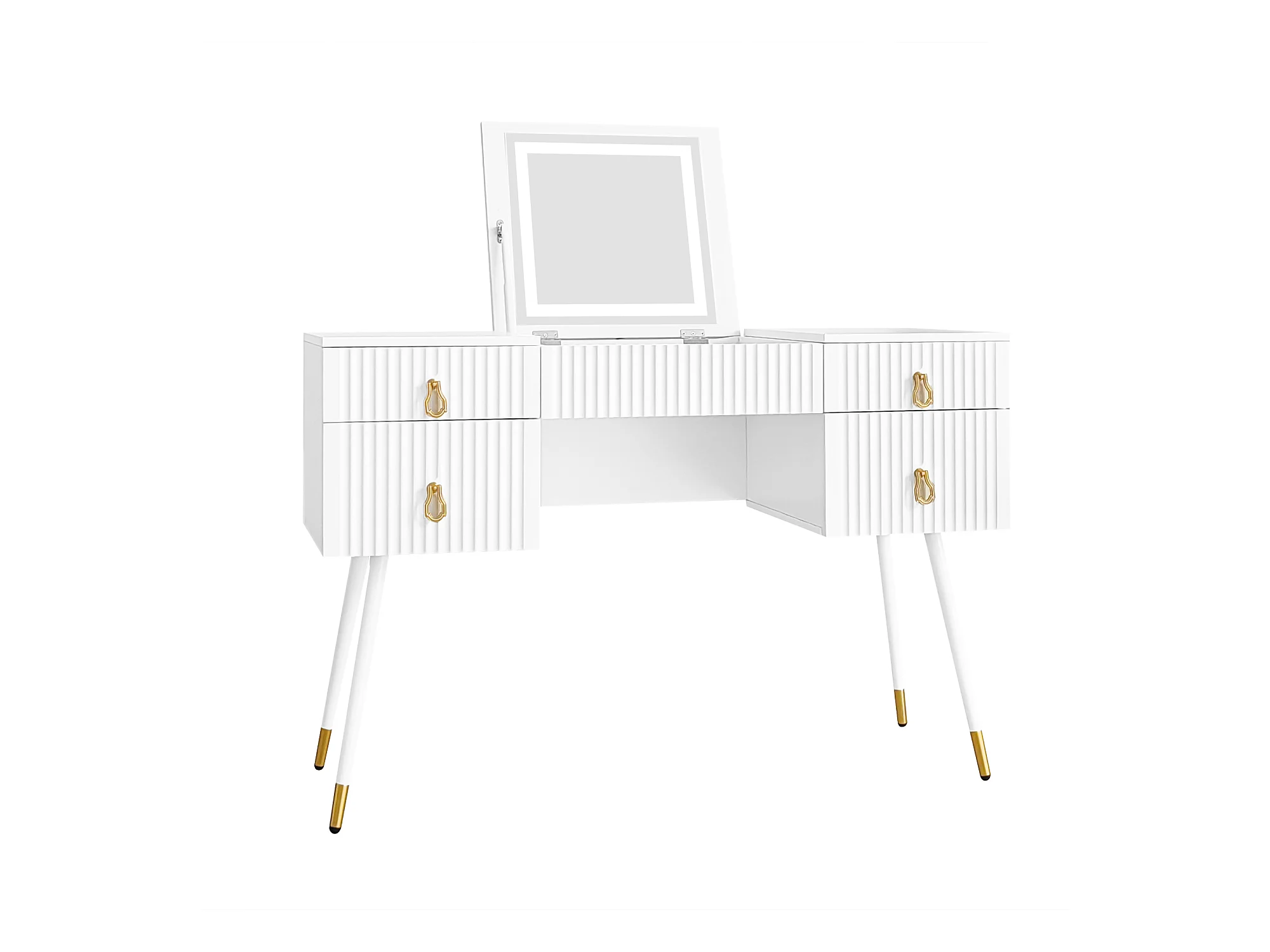 Coiffeuse blanche avec miroir LED, 4 tiroirs, lumière réglable, design élégant, MDF (80x40x101 cm)