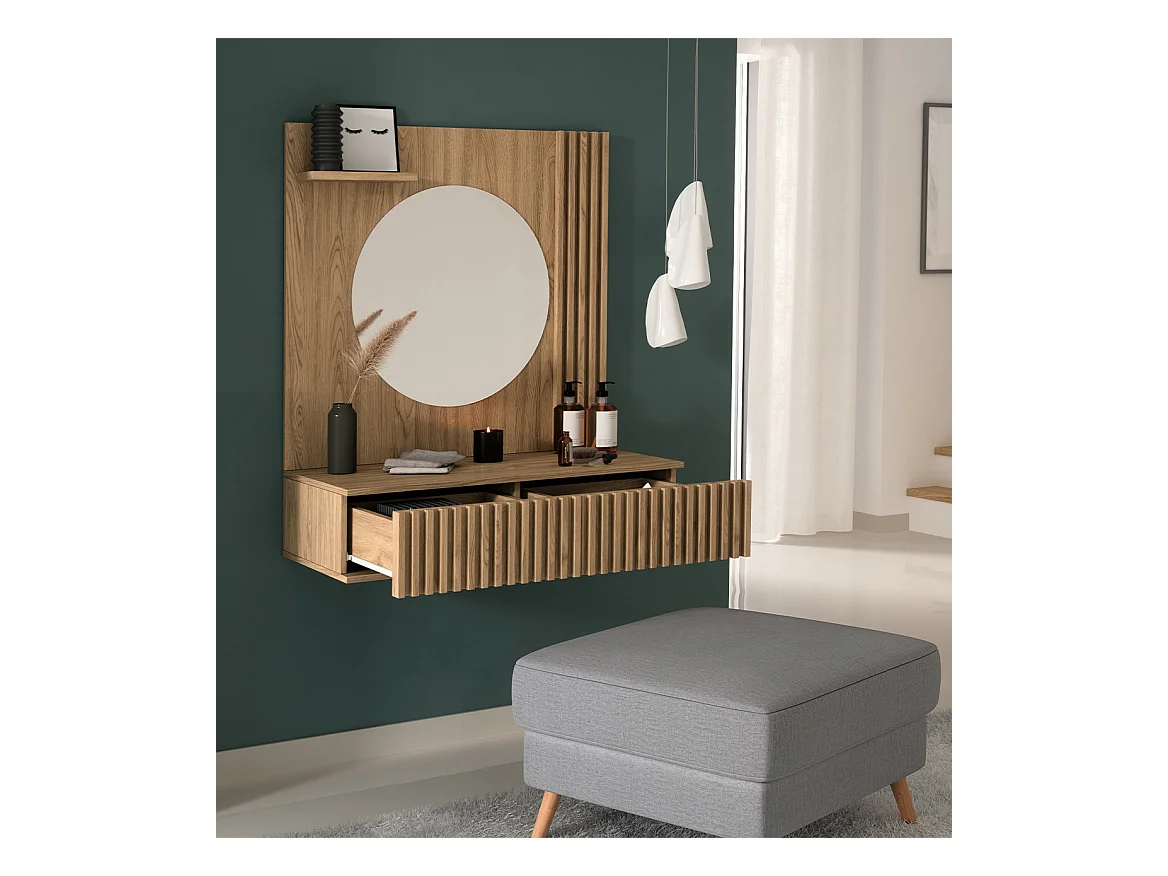 Coiffeuse avec tiroir - debout - 110 cm - couleur de bois chêne huilé- NOLIE