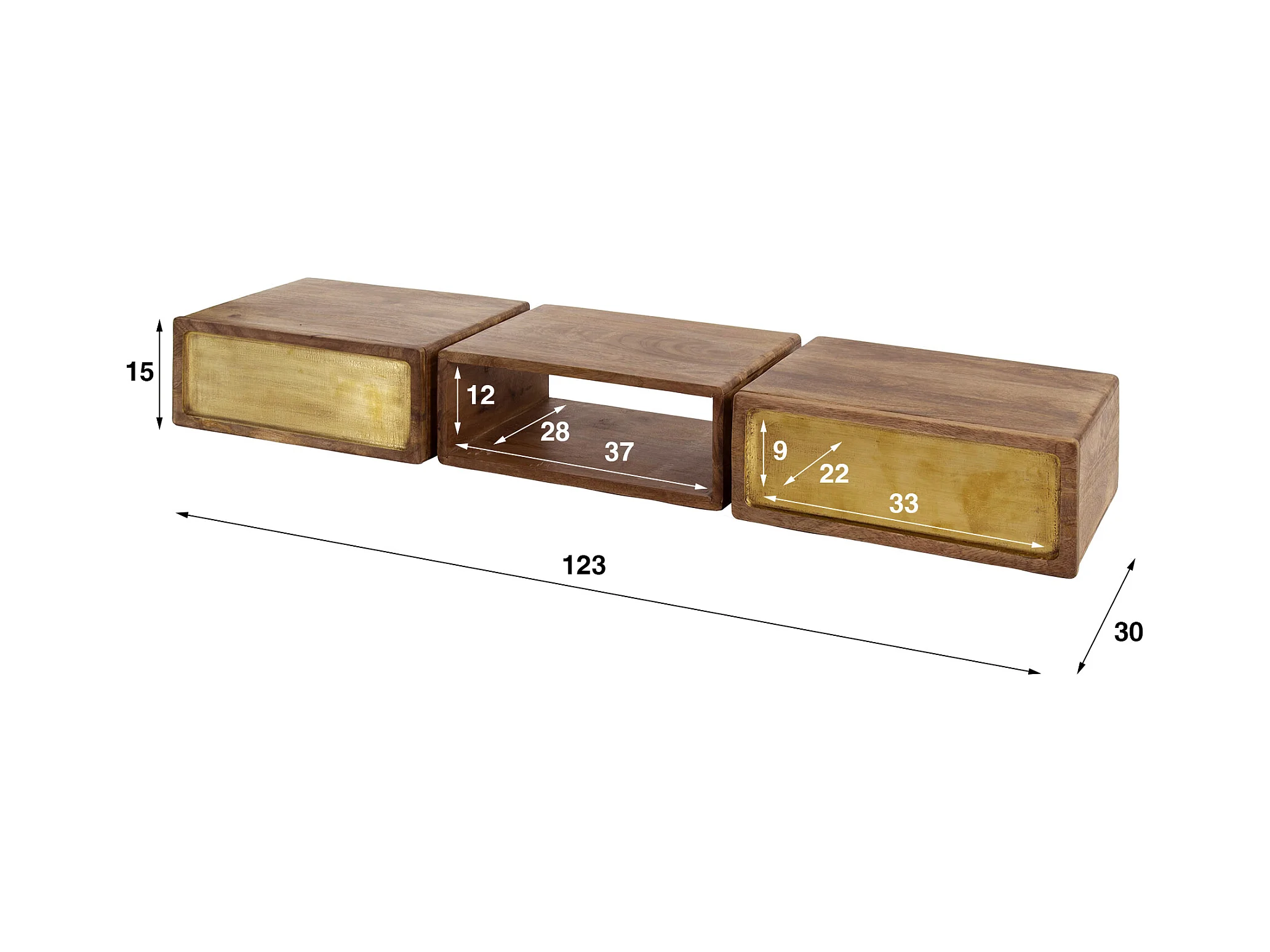 Coiffeuse en laiton - Manguier massif noir - 123 cm de large