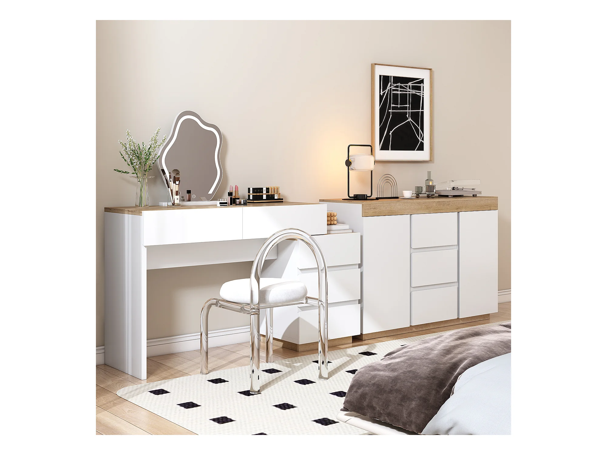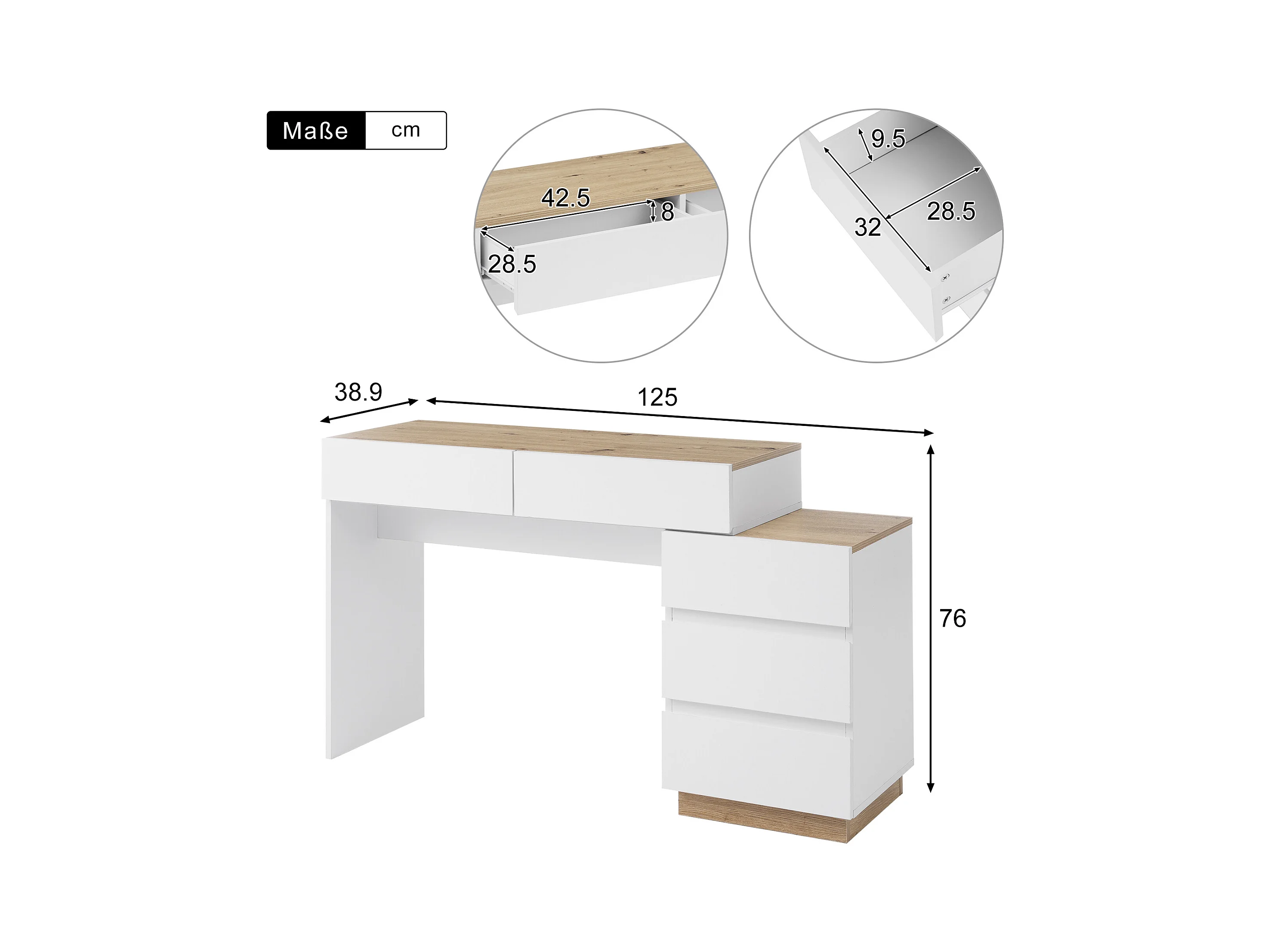 Meuble coiffeuse - 125 x 38.9 x 76 cm - avec 5 tiroirs- pour chambre - aggloméré E1 - blanc