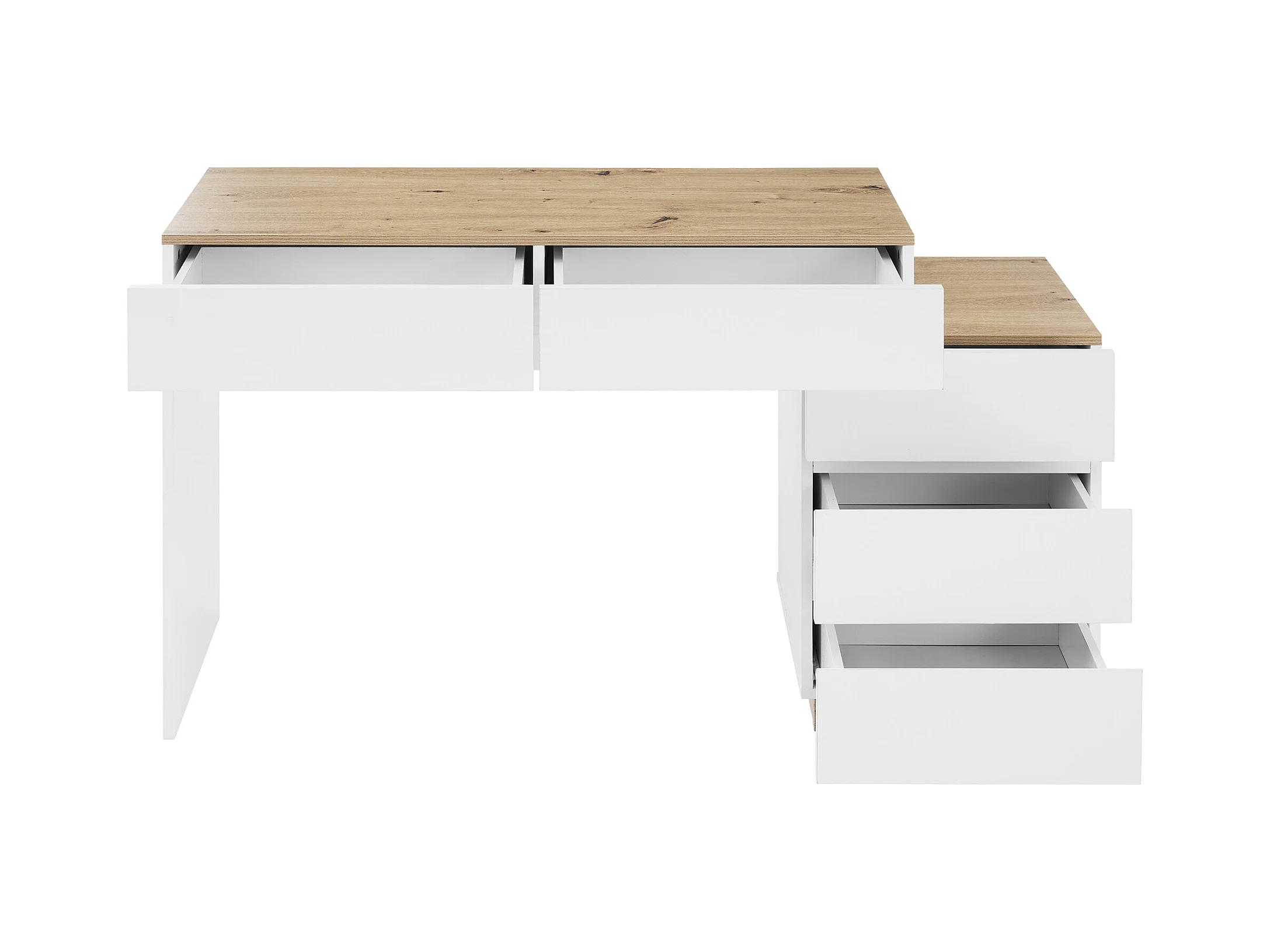 Coiffeuse rotative rétractable - bureau en L - avec 3 portes - Étagères réglables - Blanc