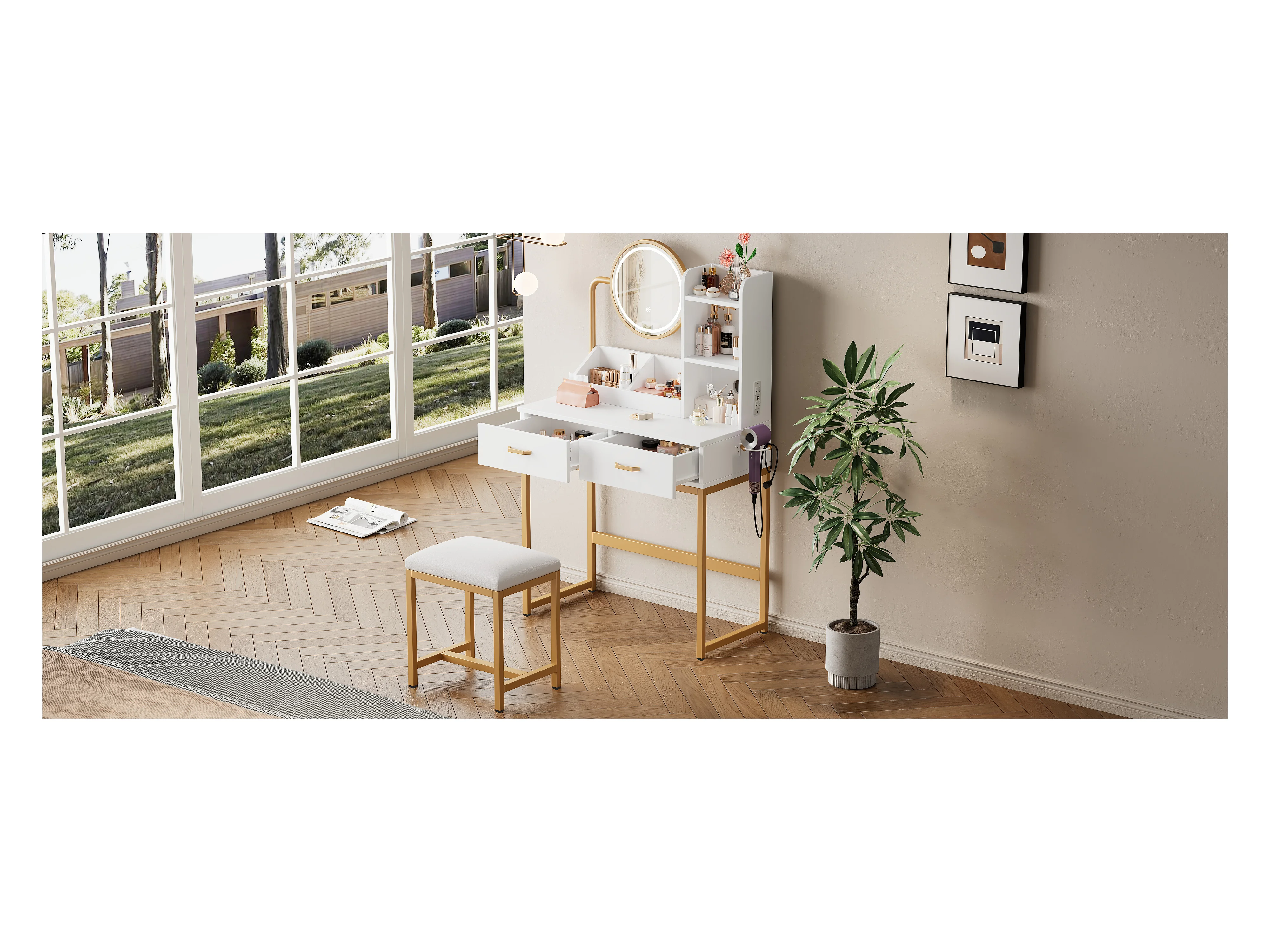 Coiffeuse blanche avec miroir LED, 4 tiroirs, lumière réglable, design élégant, MDF (80x40x101 cm)