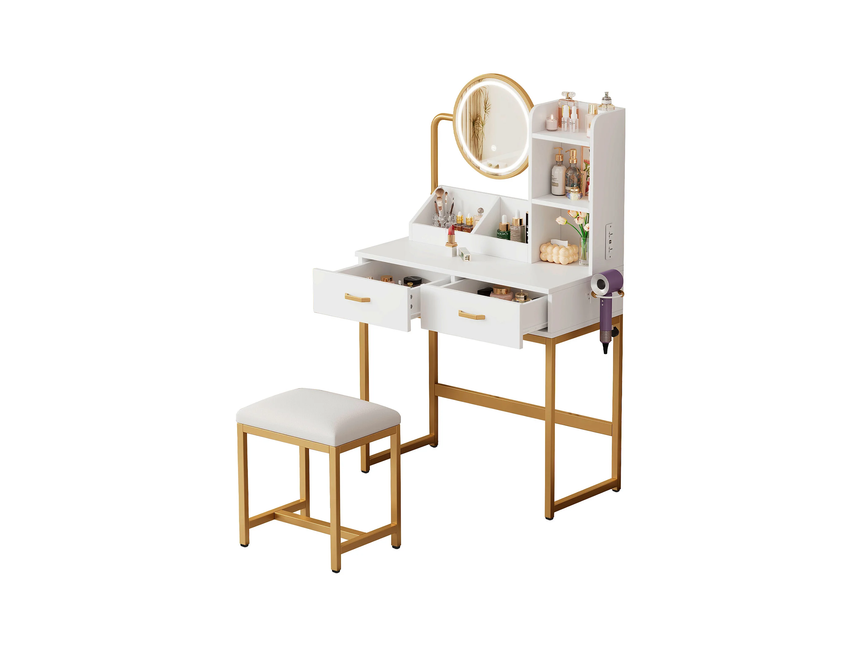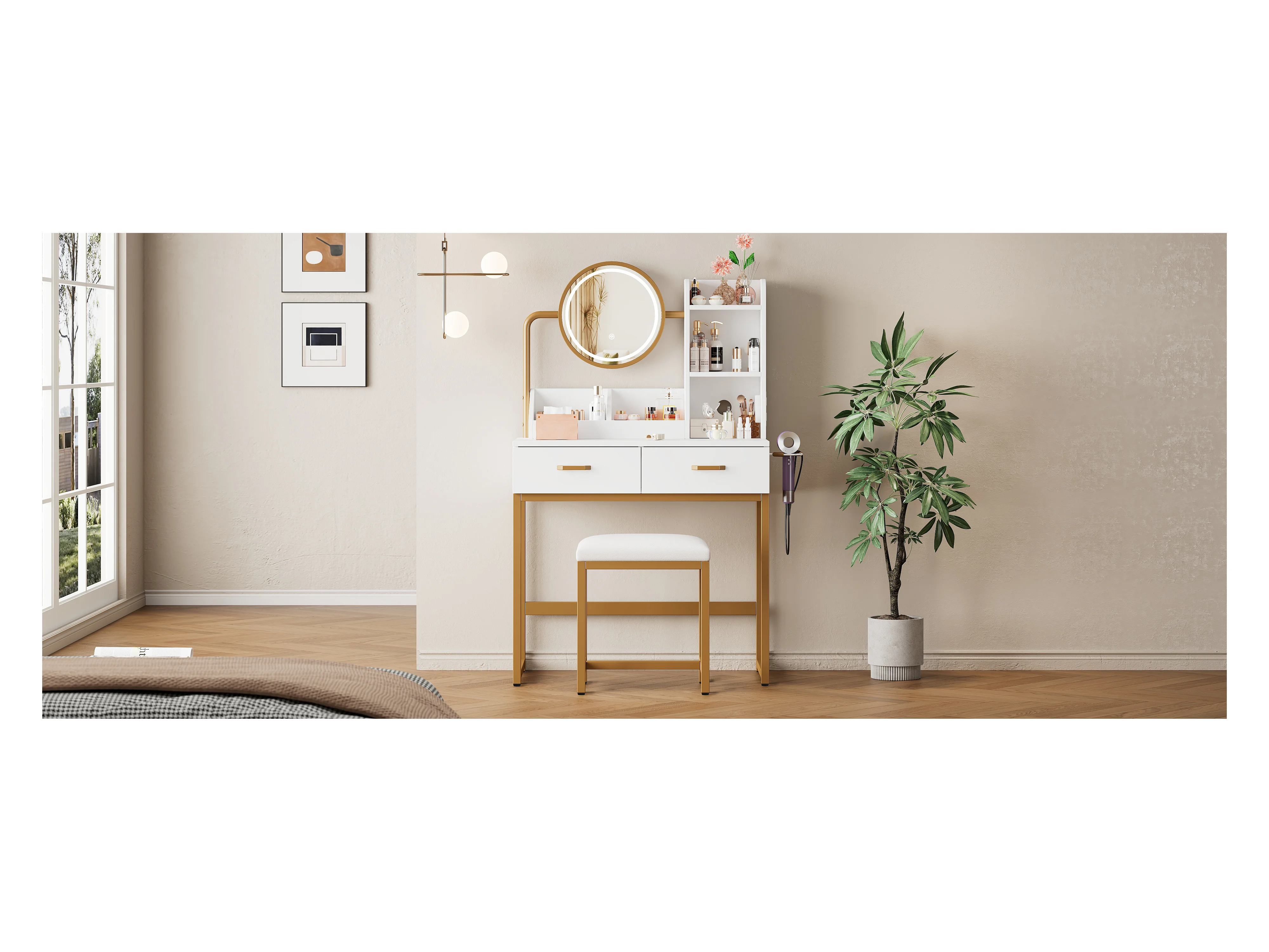 Coiffeuse avec miroir,tabouret de coiffeuse,ensemble de coiffeuse avec 6 ampoules,blanc
