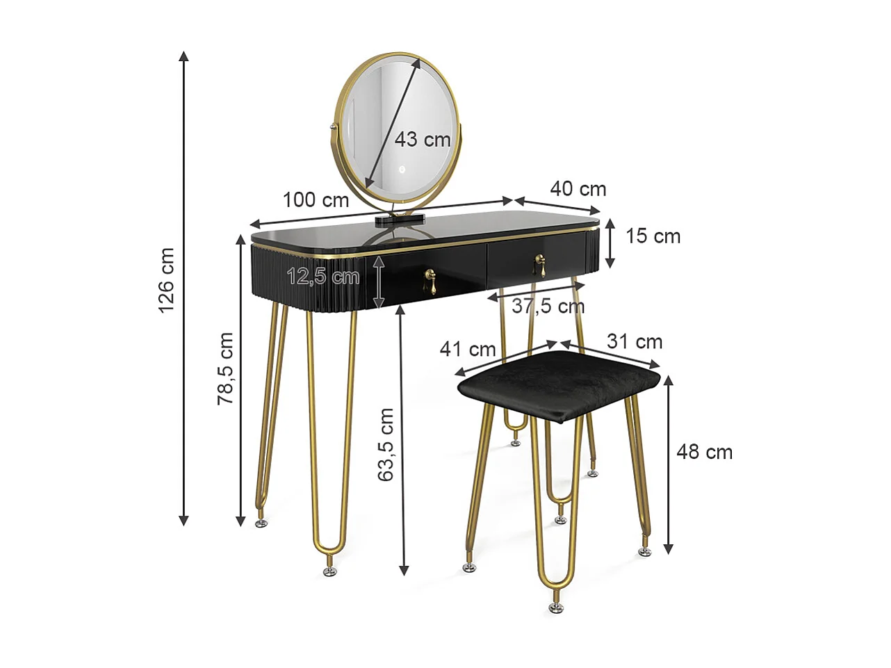 Coiffeuse noir 100x40x126 grace