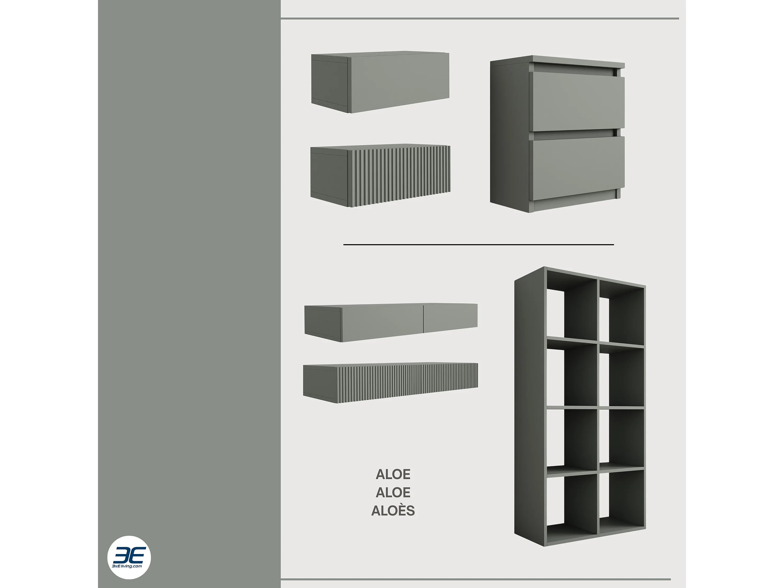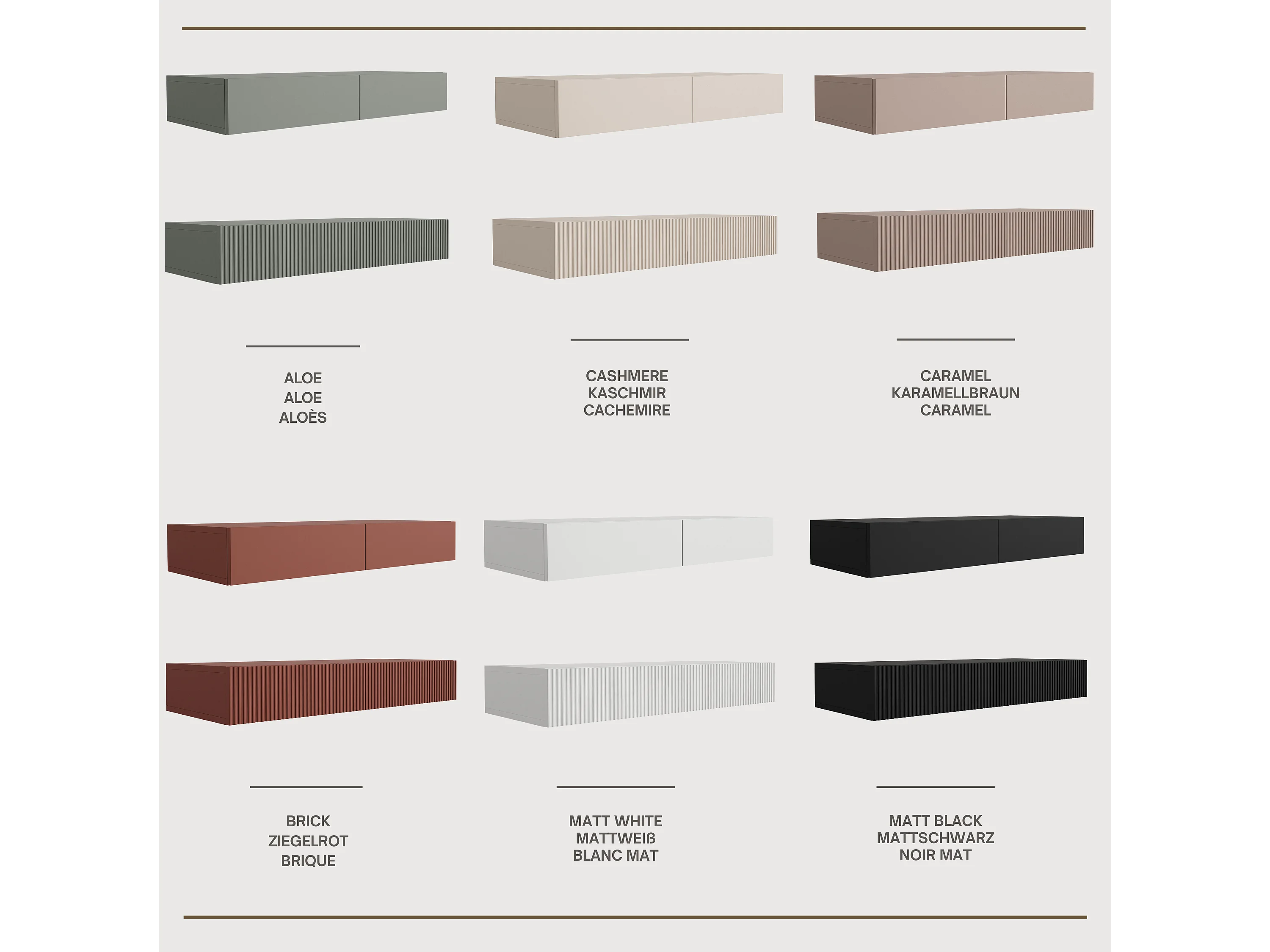 Coiffeuse suspendue avec deux tiroirs, façade rainurée - Couleur : aloès vert, 100 x 40 x 16 cm