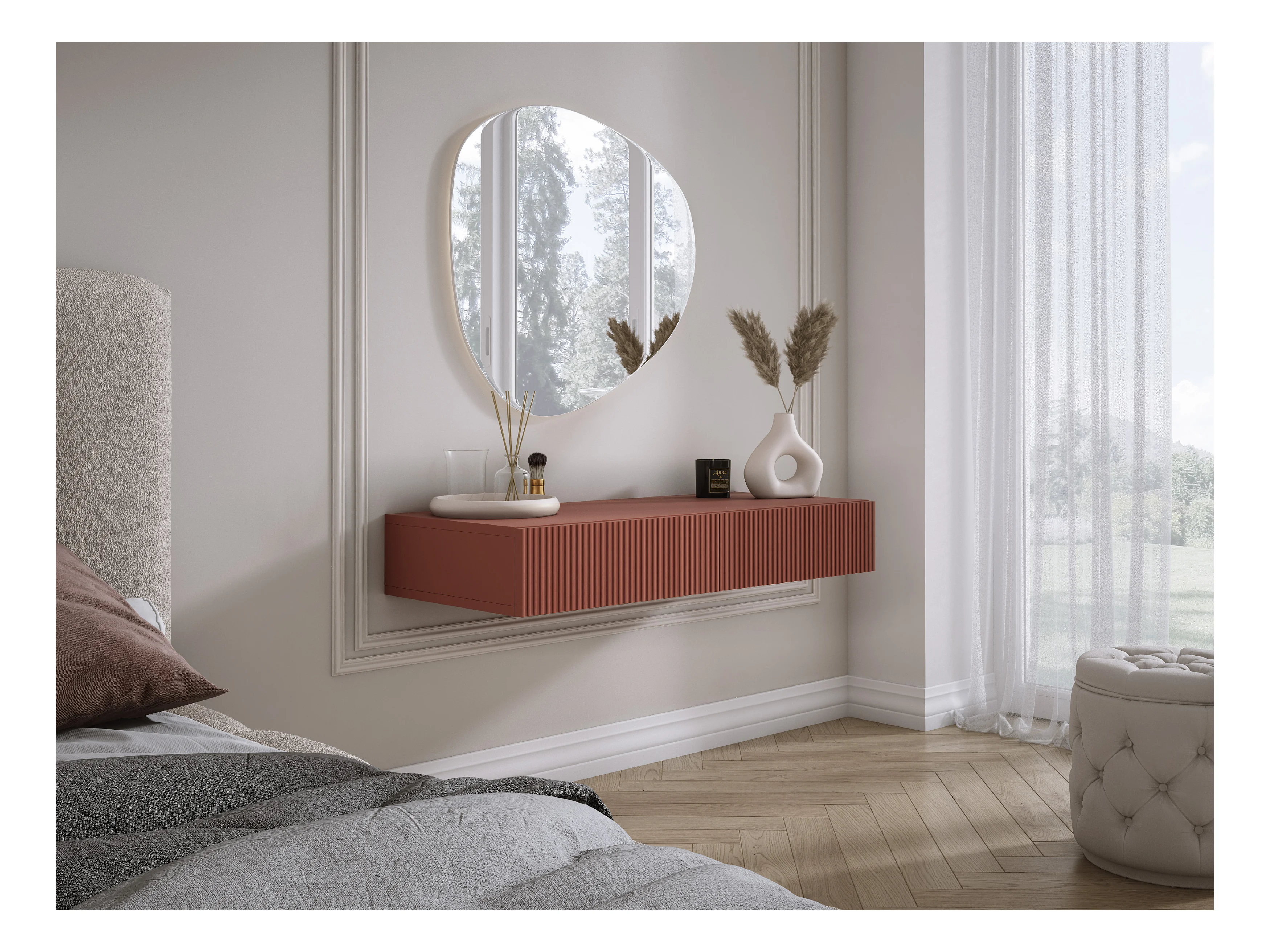 Coiffeuse suspendue avec deux tiroirs, façade rainurée - Couleur : rouge brique, 100 x 40 x 16 cm
