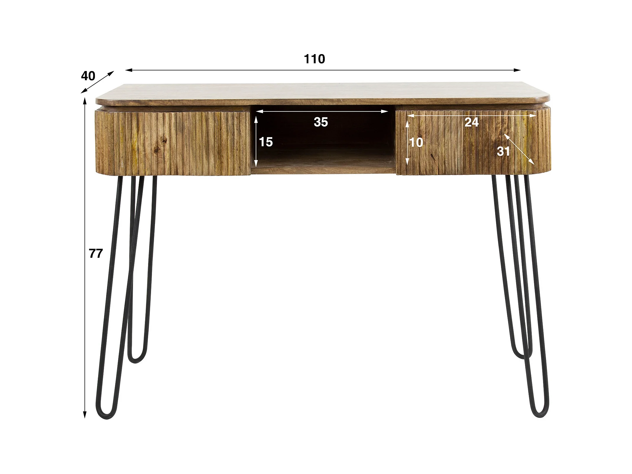 Coiffeuse Wave - 2 tiroirs - Bois de manguier - Couleur sable