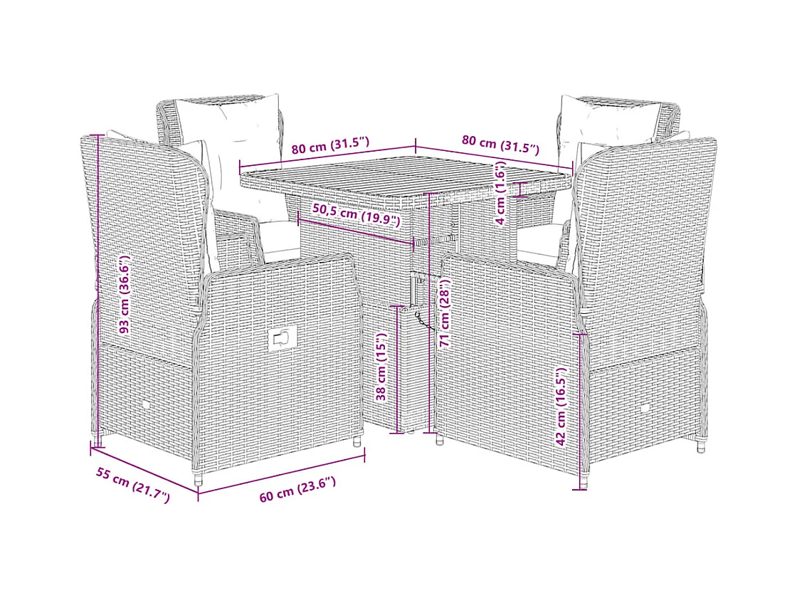 Isyra Ensemble à manger de jardin coussins 5pcs Noir Résine tressée