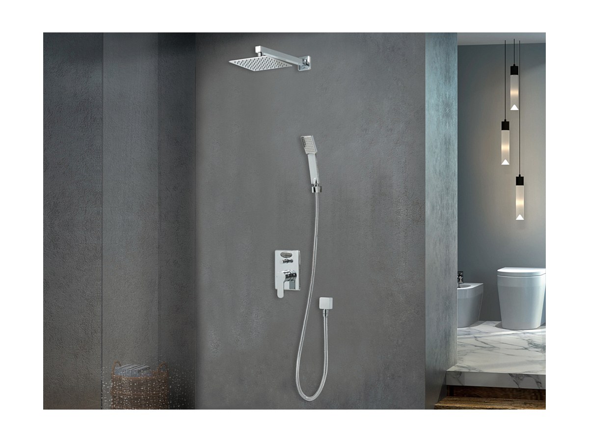 - Douche de tête haute : grand pommeau carré 20x20cm en acier inoxydable avec 135 microjets