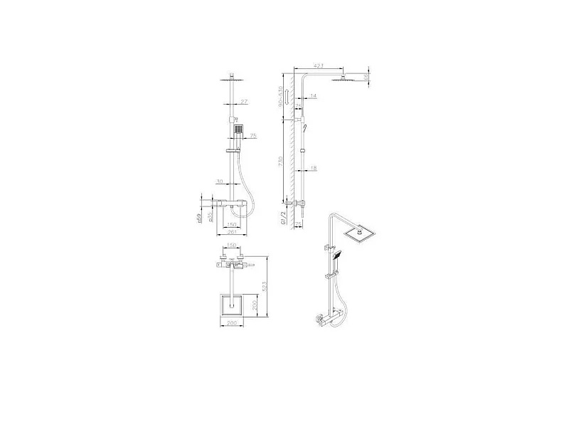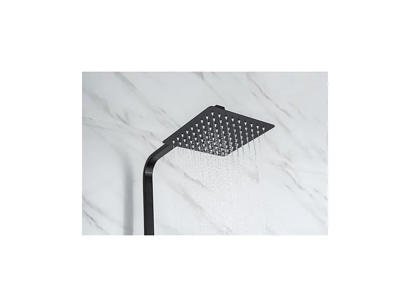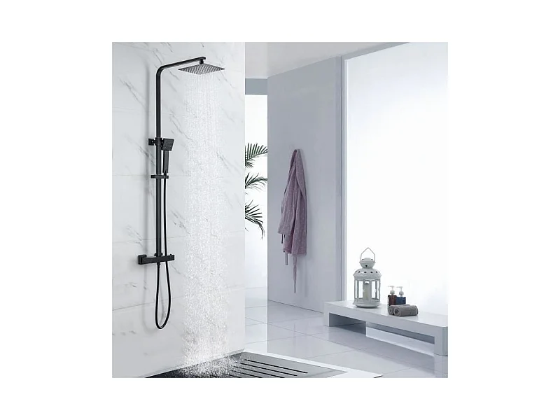 Colonne de douche - Mitigeur thermostatique - Pomme haute carrée 20x20 cm - - Noir mat