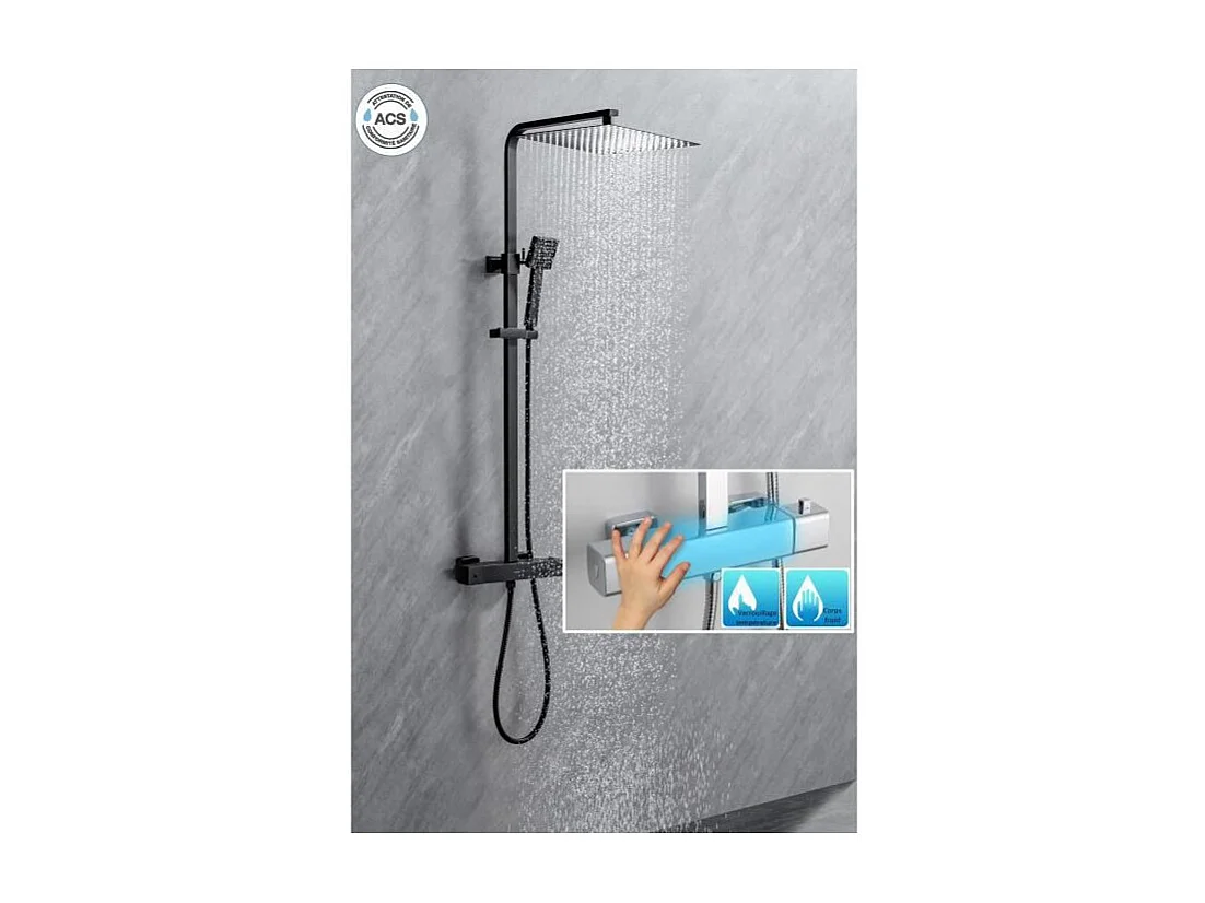 Colonne de douche OCEANIC - Mitigeur thermostatique corps froid - Pomme haute carrée 30x30 cm - Noir mat