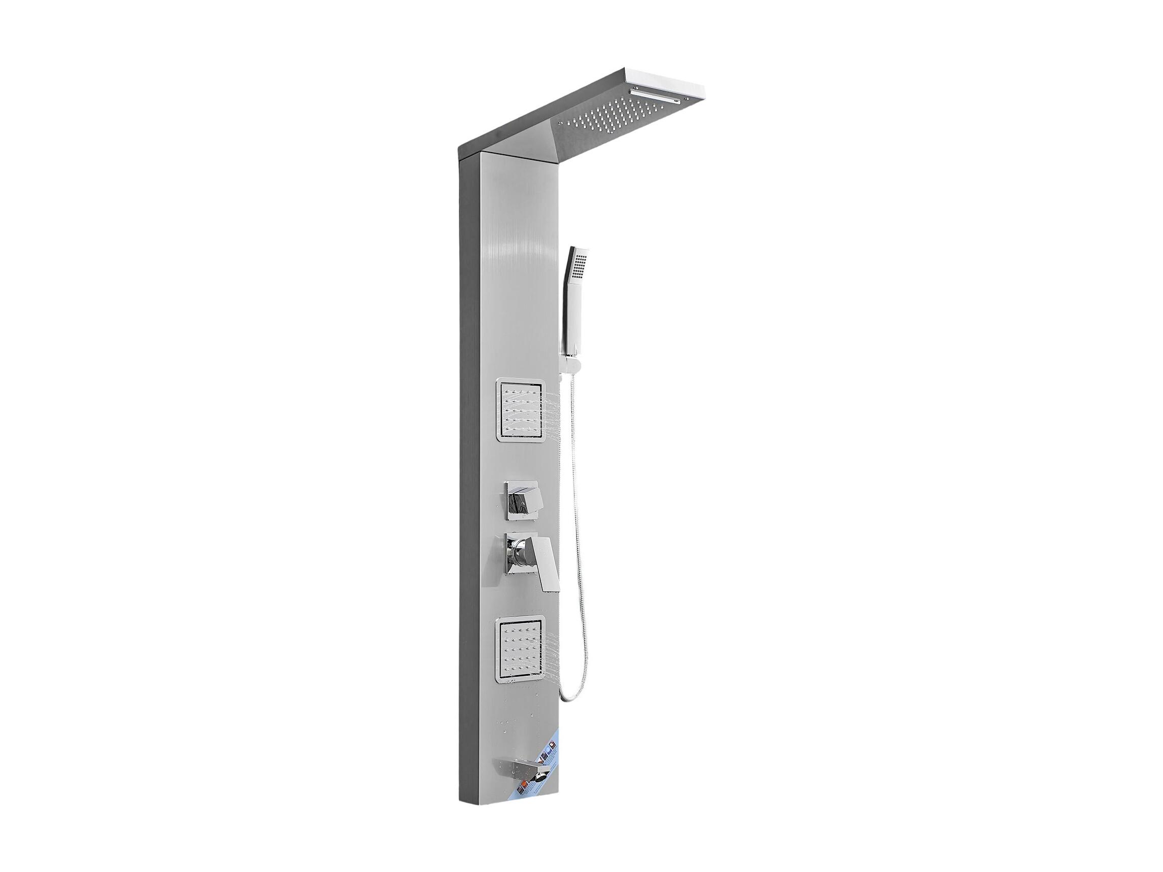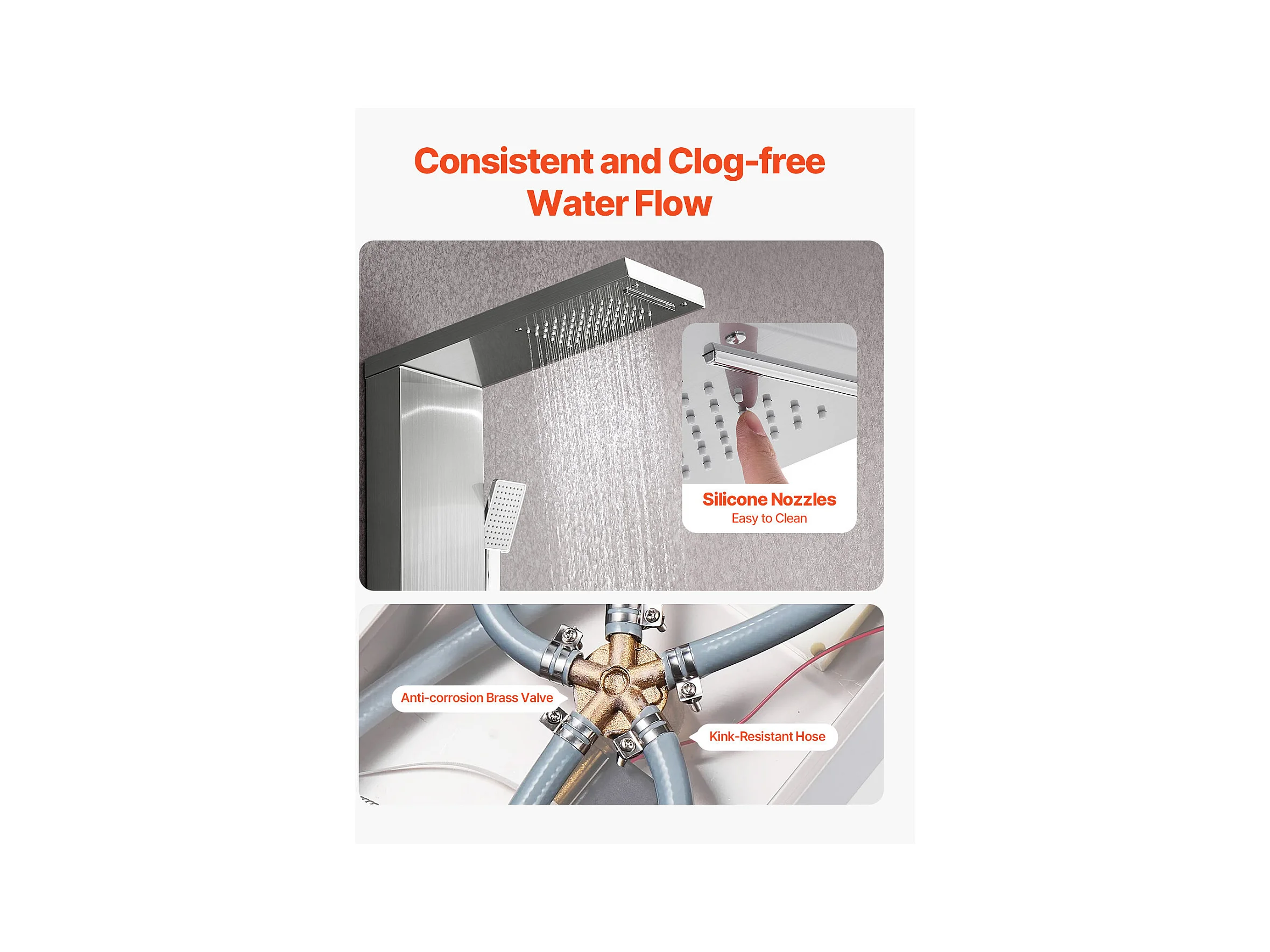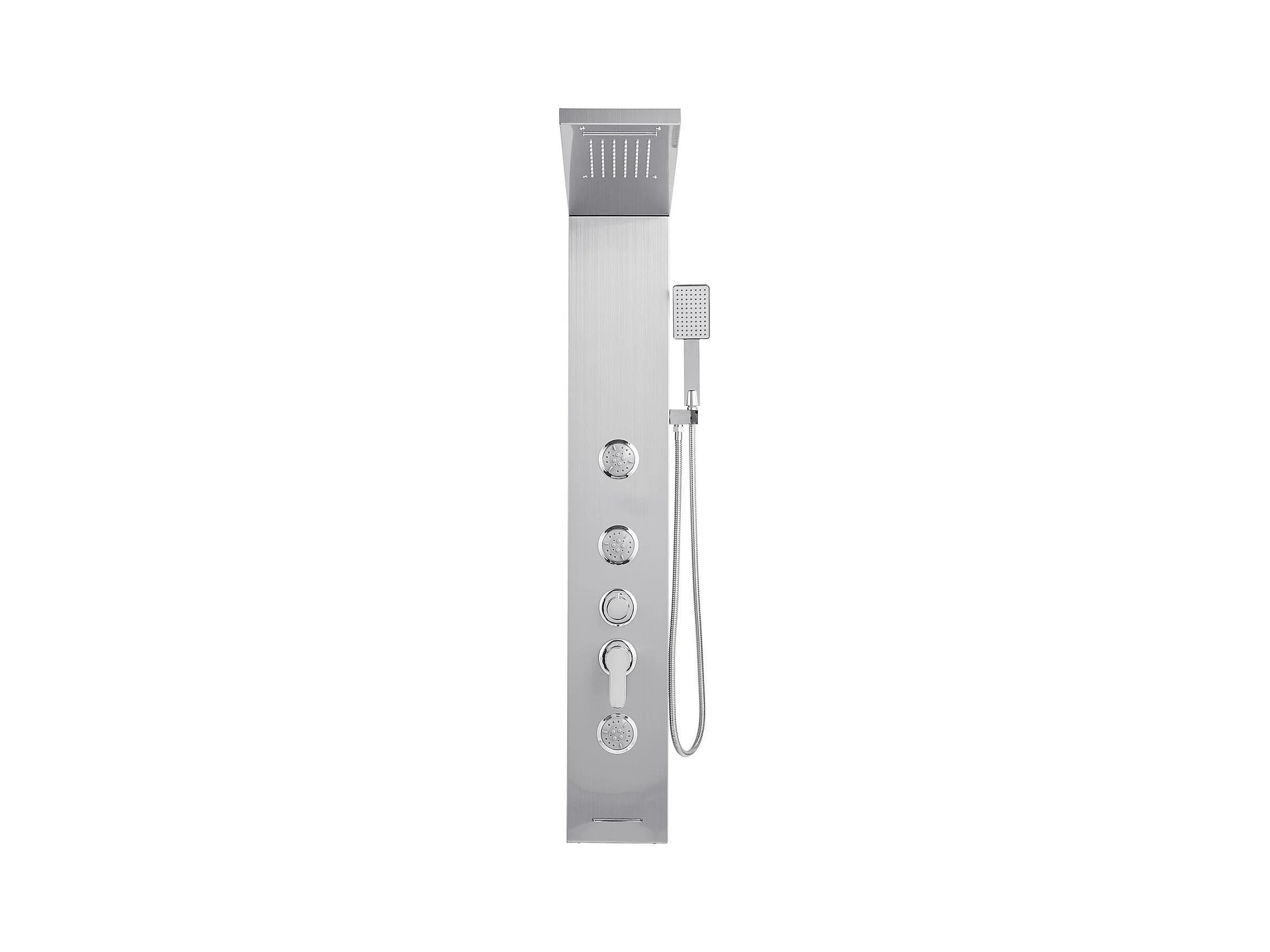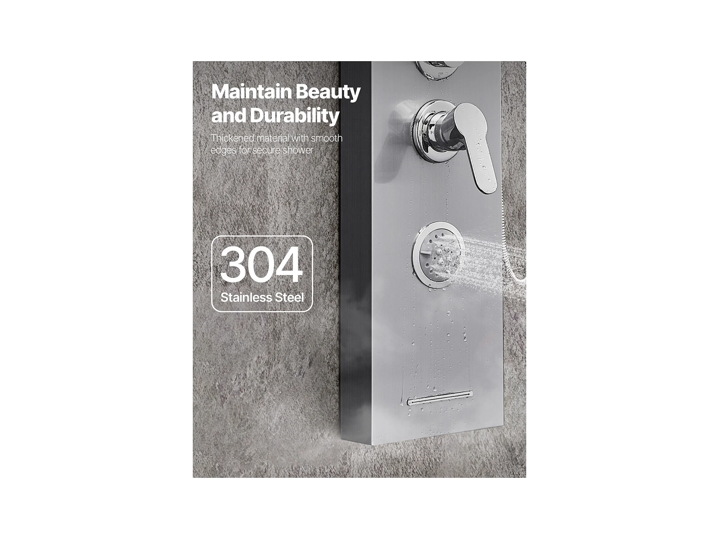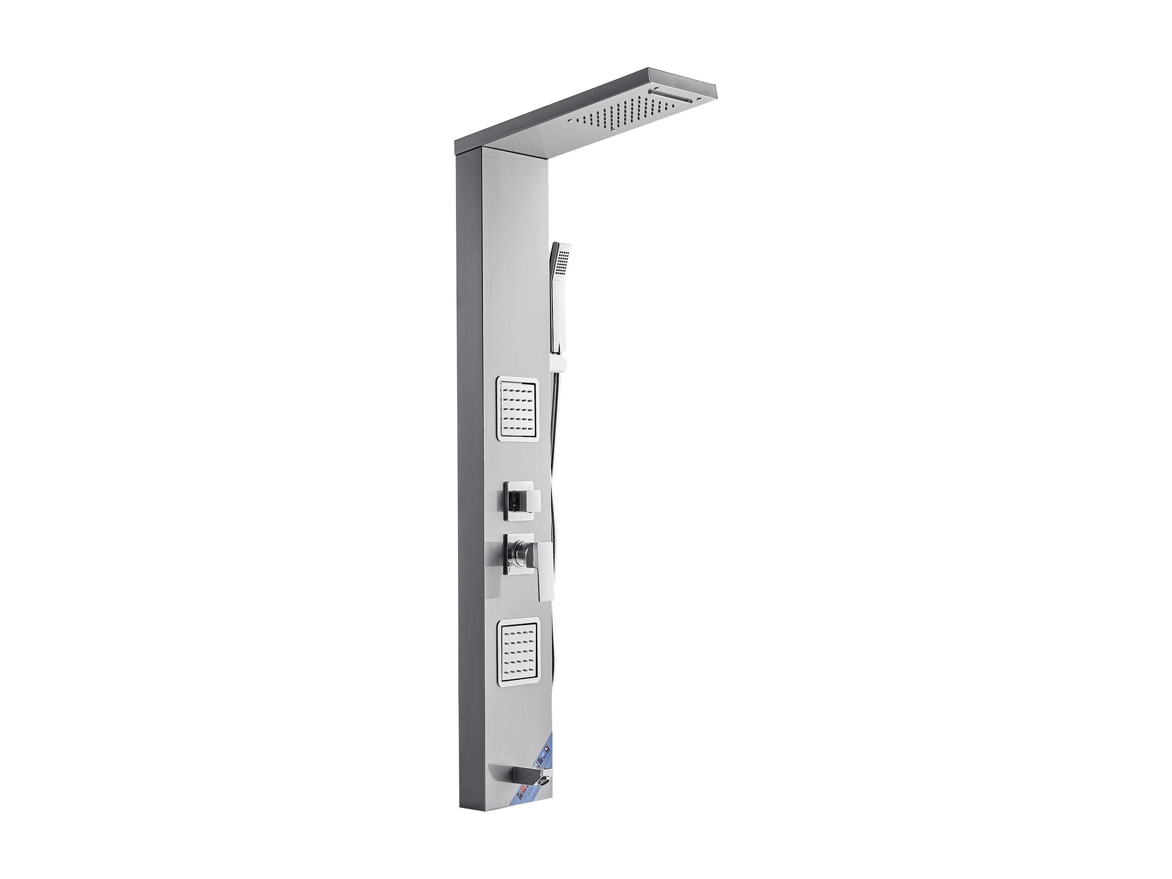 Colonne de Douche SucceBuy, avec Pommeau de Ddouche Effet Pluie, Système de Panneau de Douchette Mural Haute Pression Acier Inox Brossé, Robinet 5 Fonctions