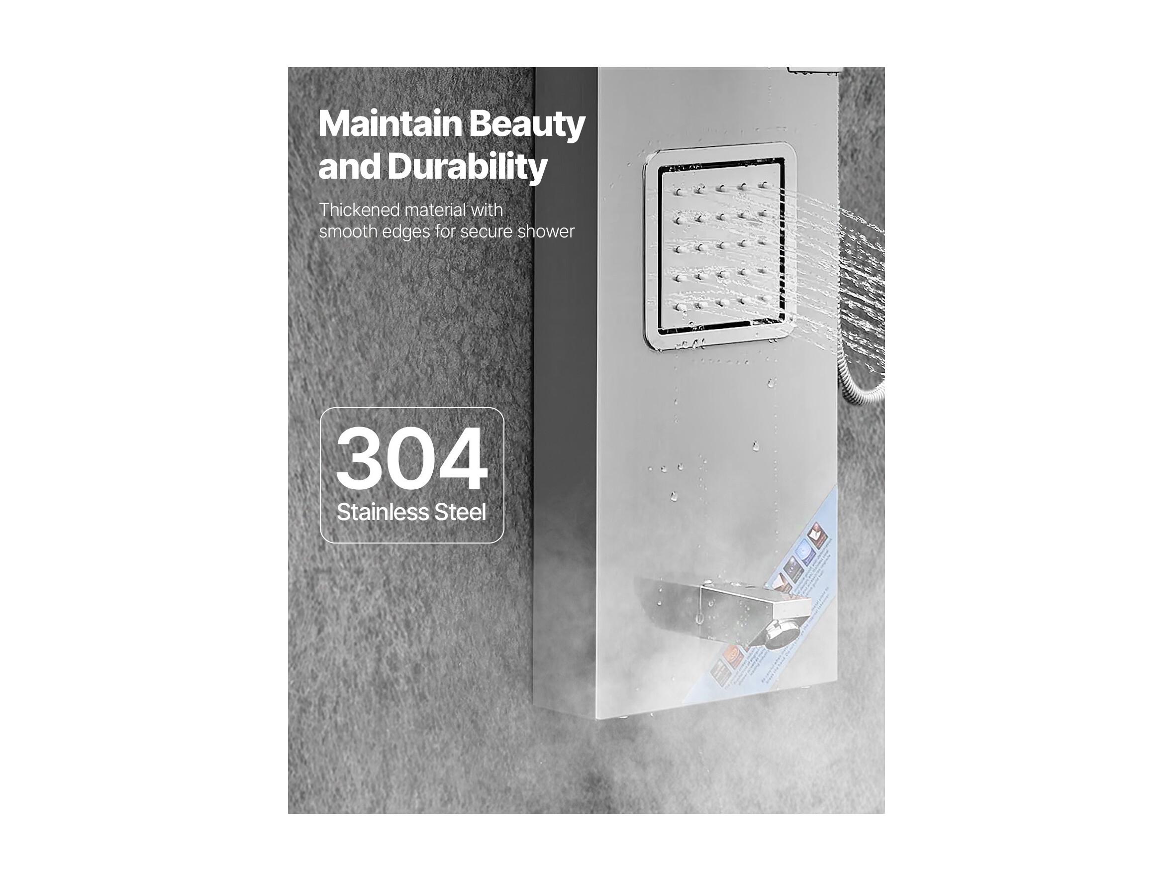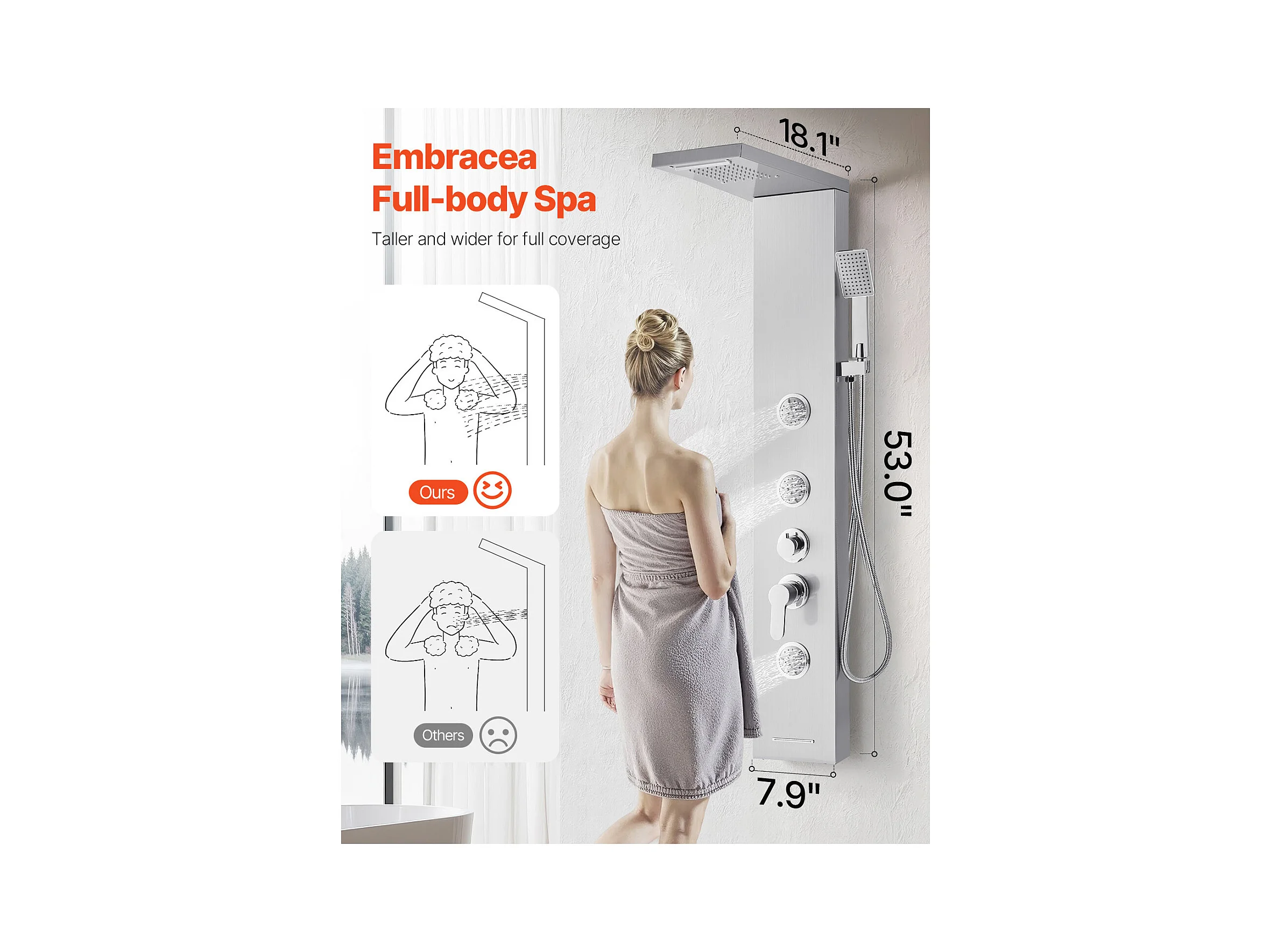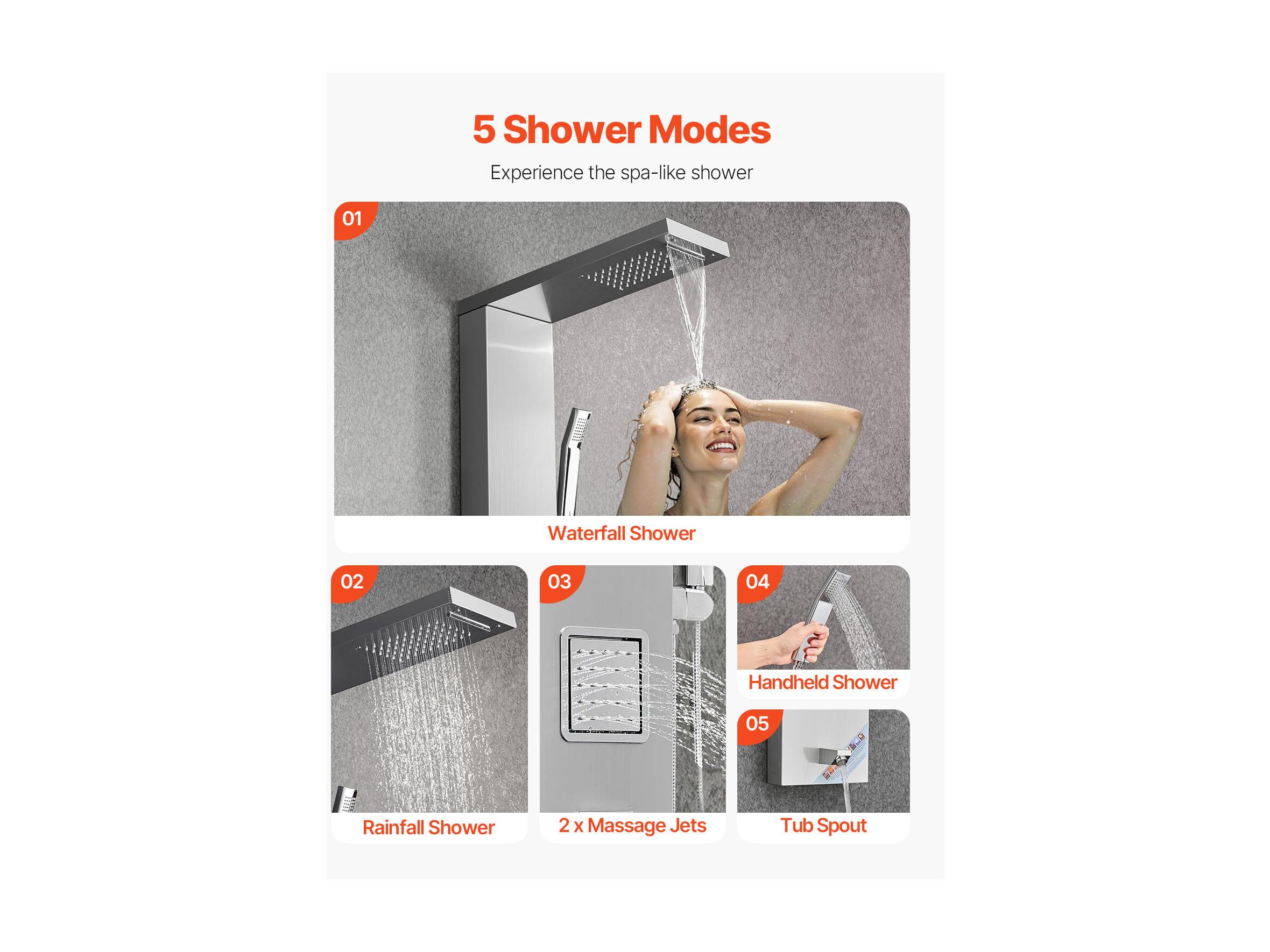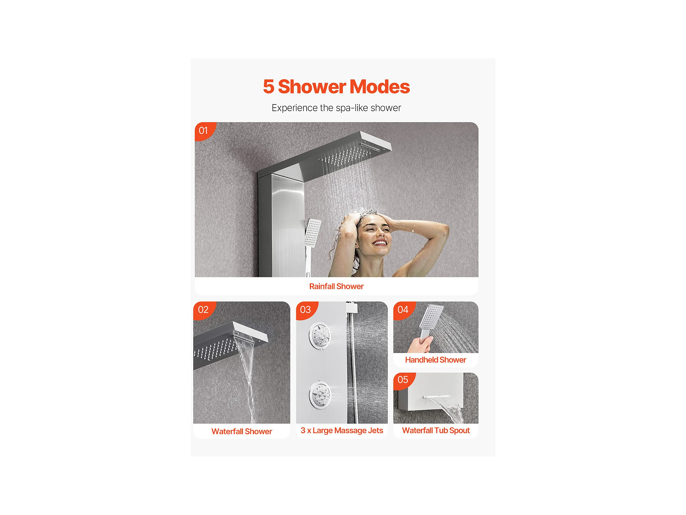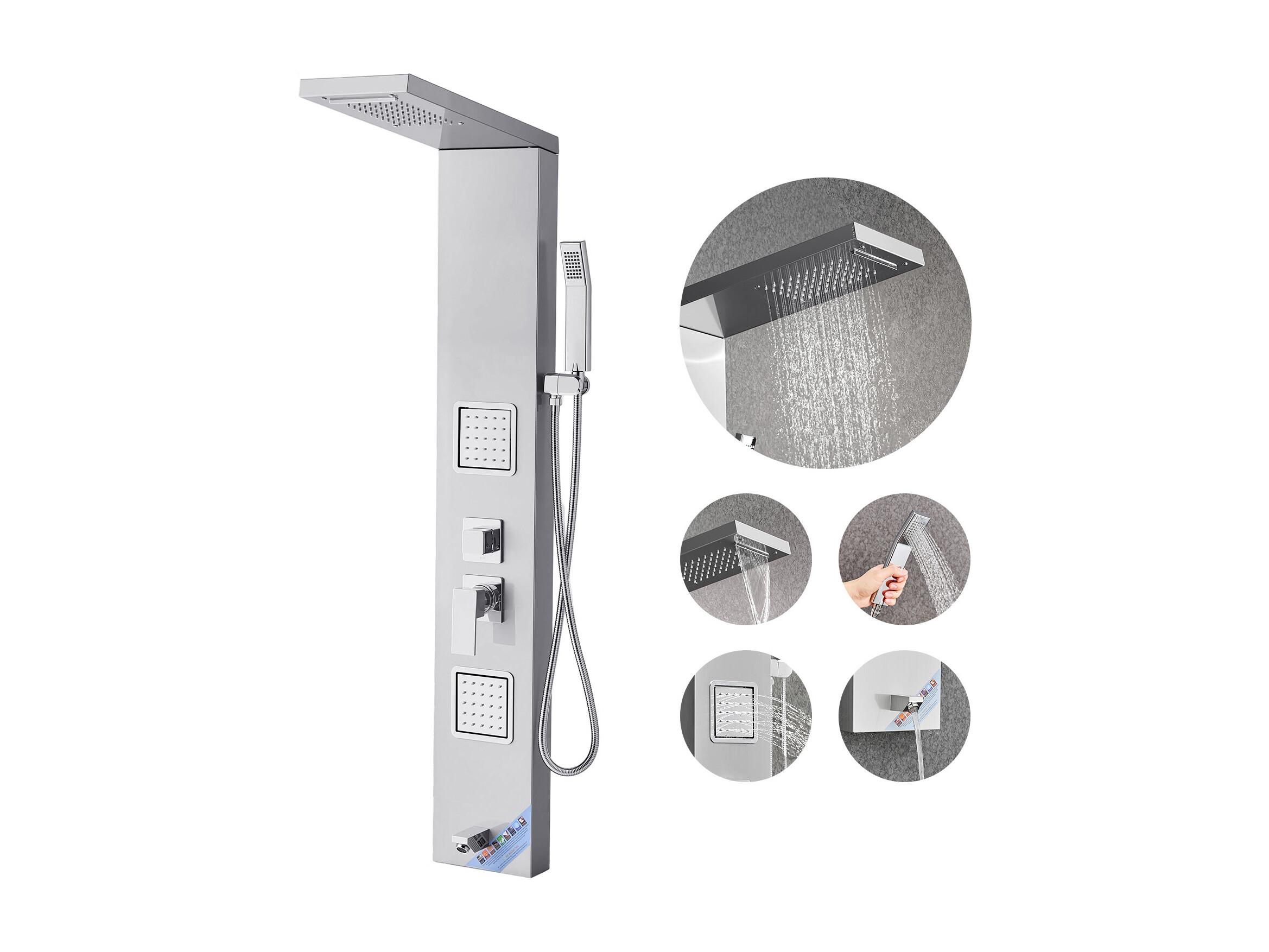Colonne de Douche SucceBuy, avec Pommeau de Ddouche Effet Pluie, Système de Panneau de Douchette Mural Haute Pression Acier Inox Brossé, Robinet 5 Fonctions