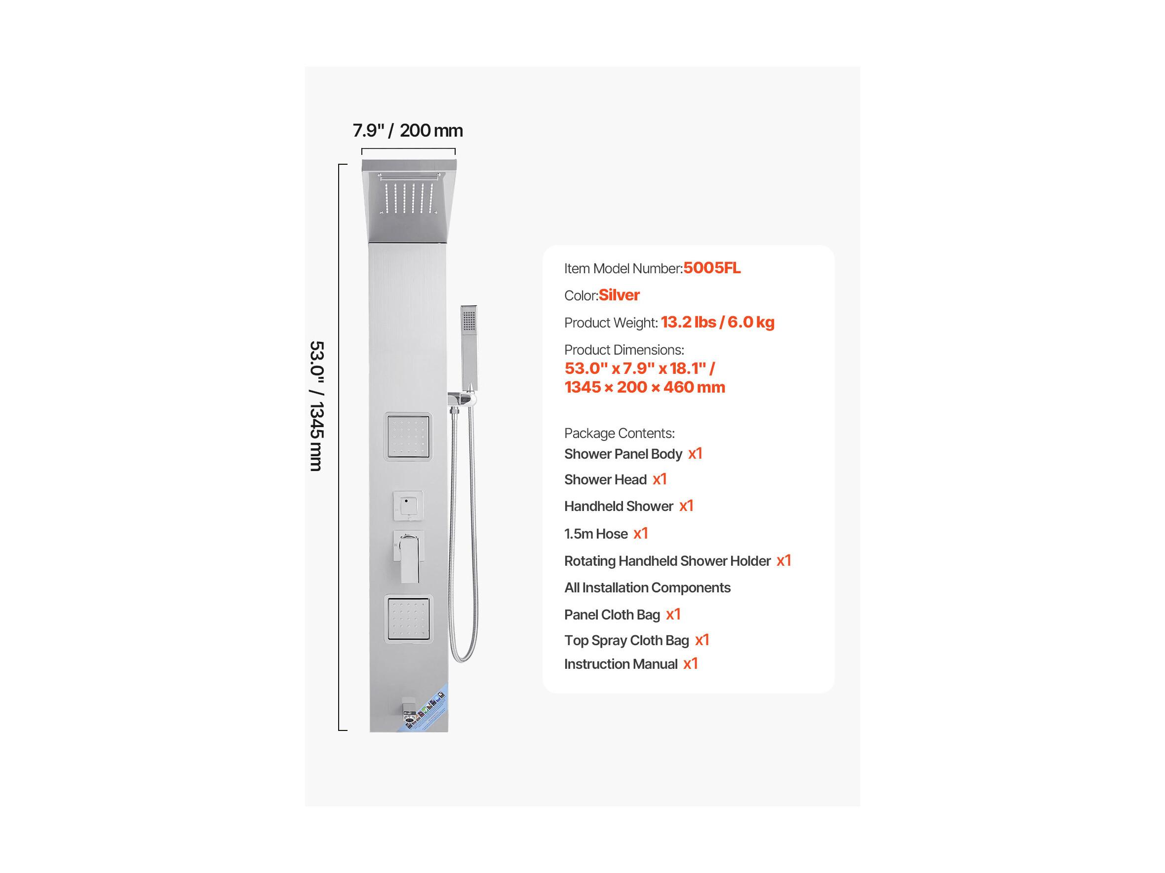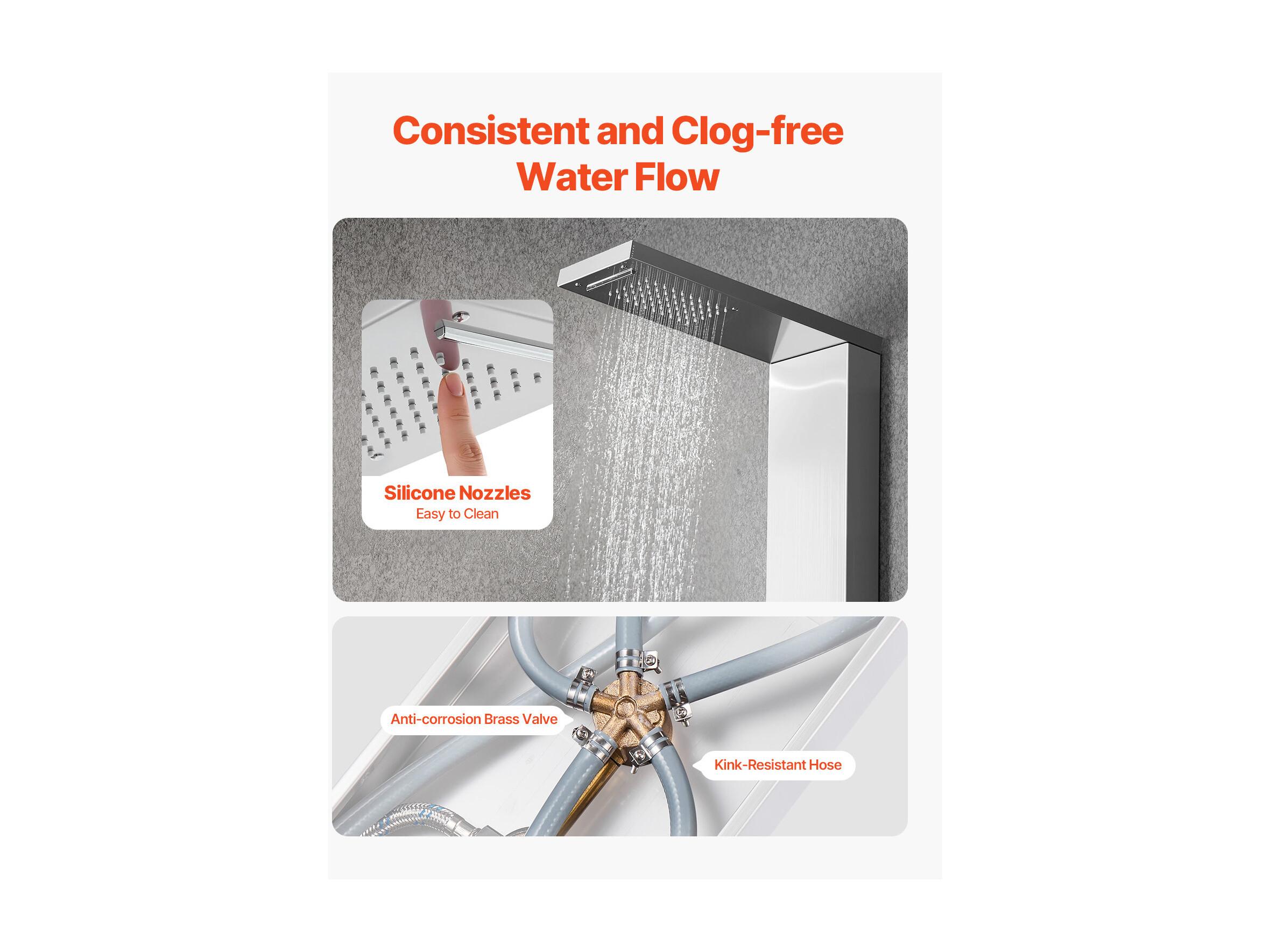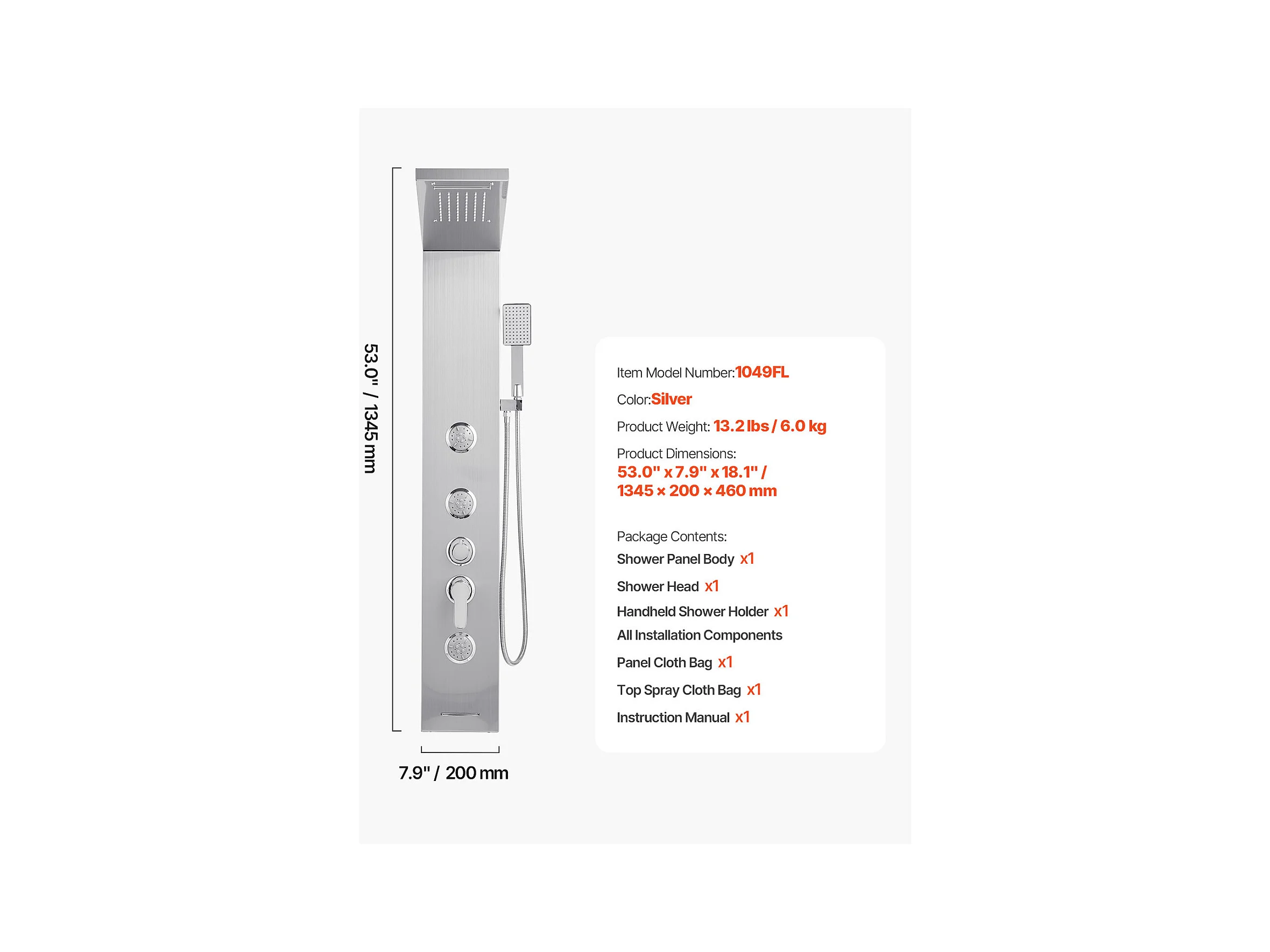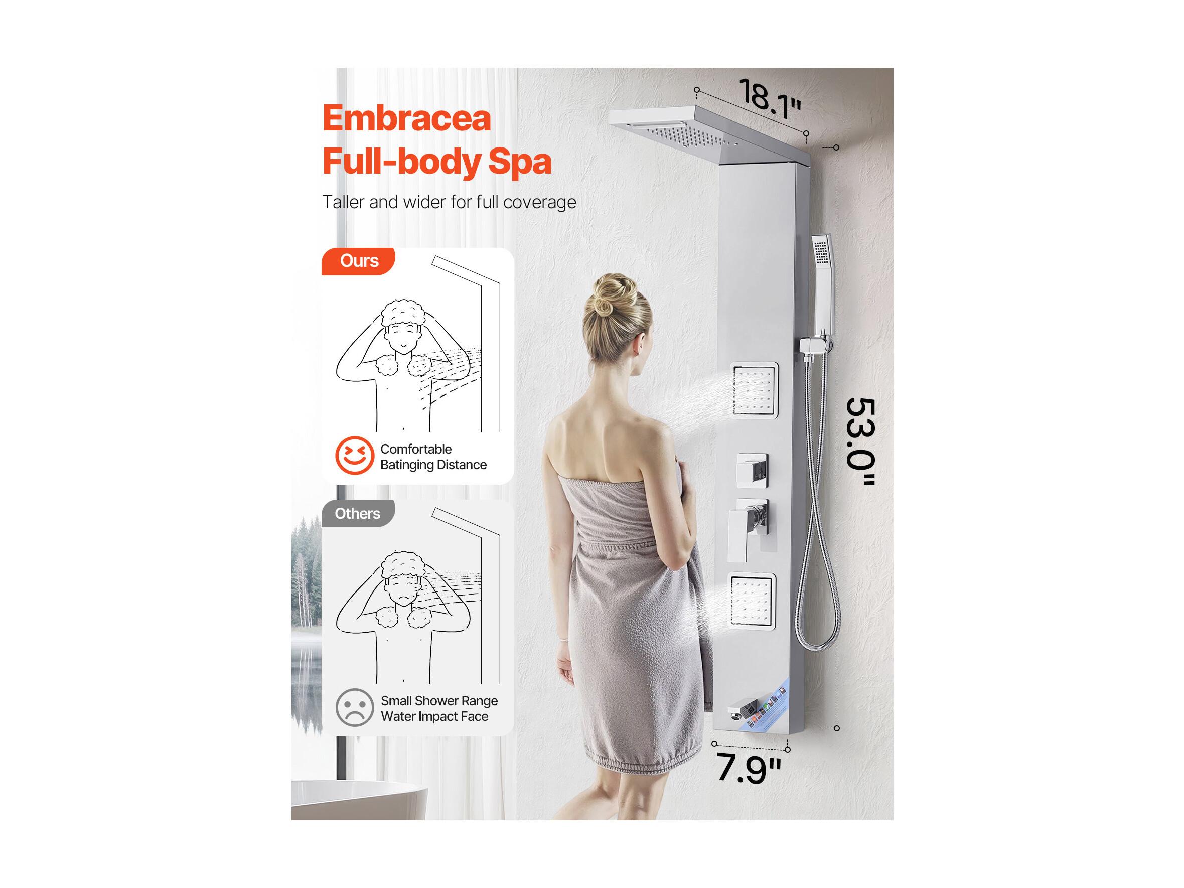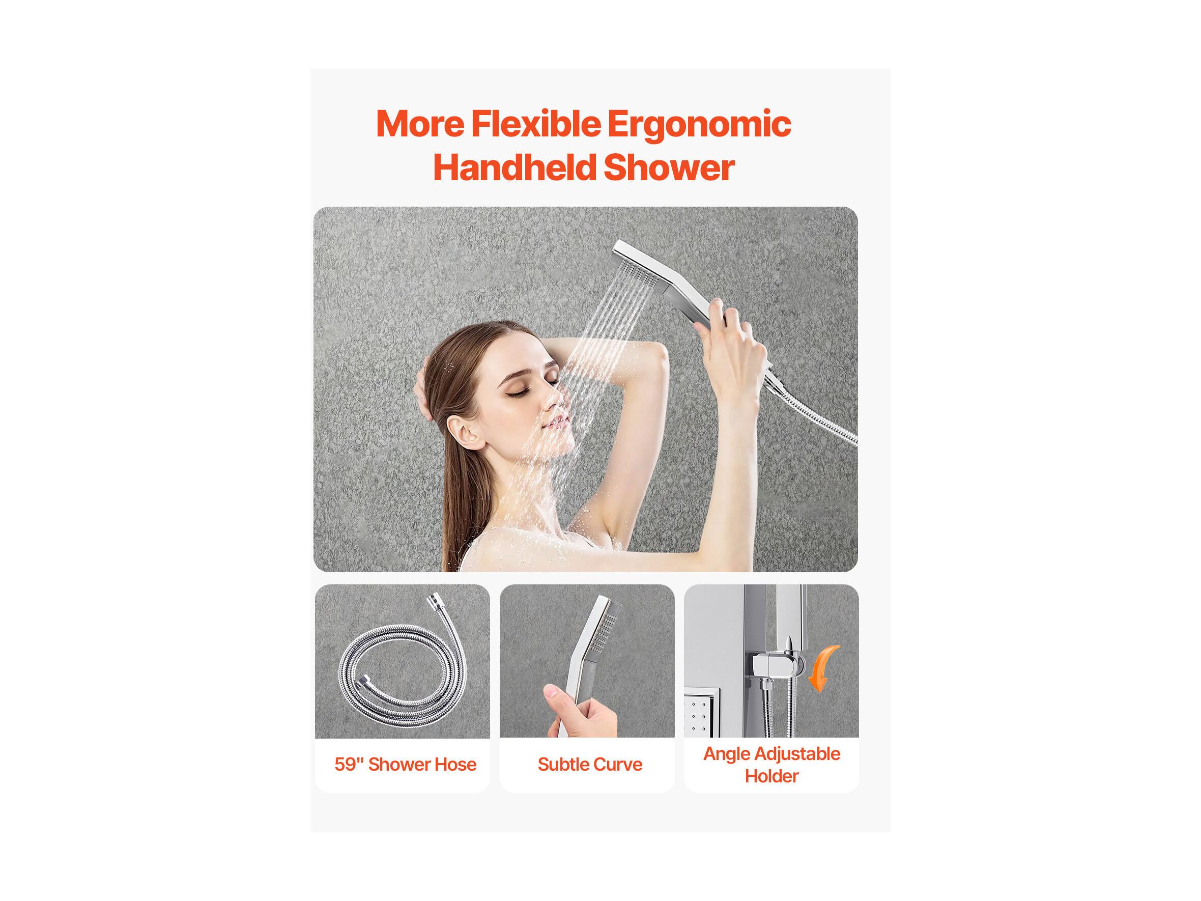 Colonne de Douche SucceBuy, avec Pommeau de Ddouche Effet Pluie, Système de Panneau de Douchette Mural Haute Pression Acier Inox Brossé, Robinet 5 Fonctions