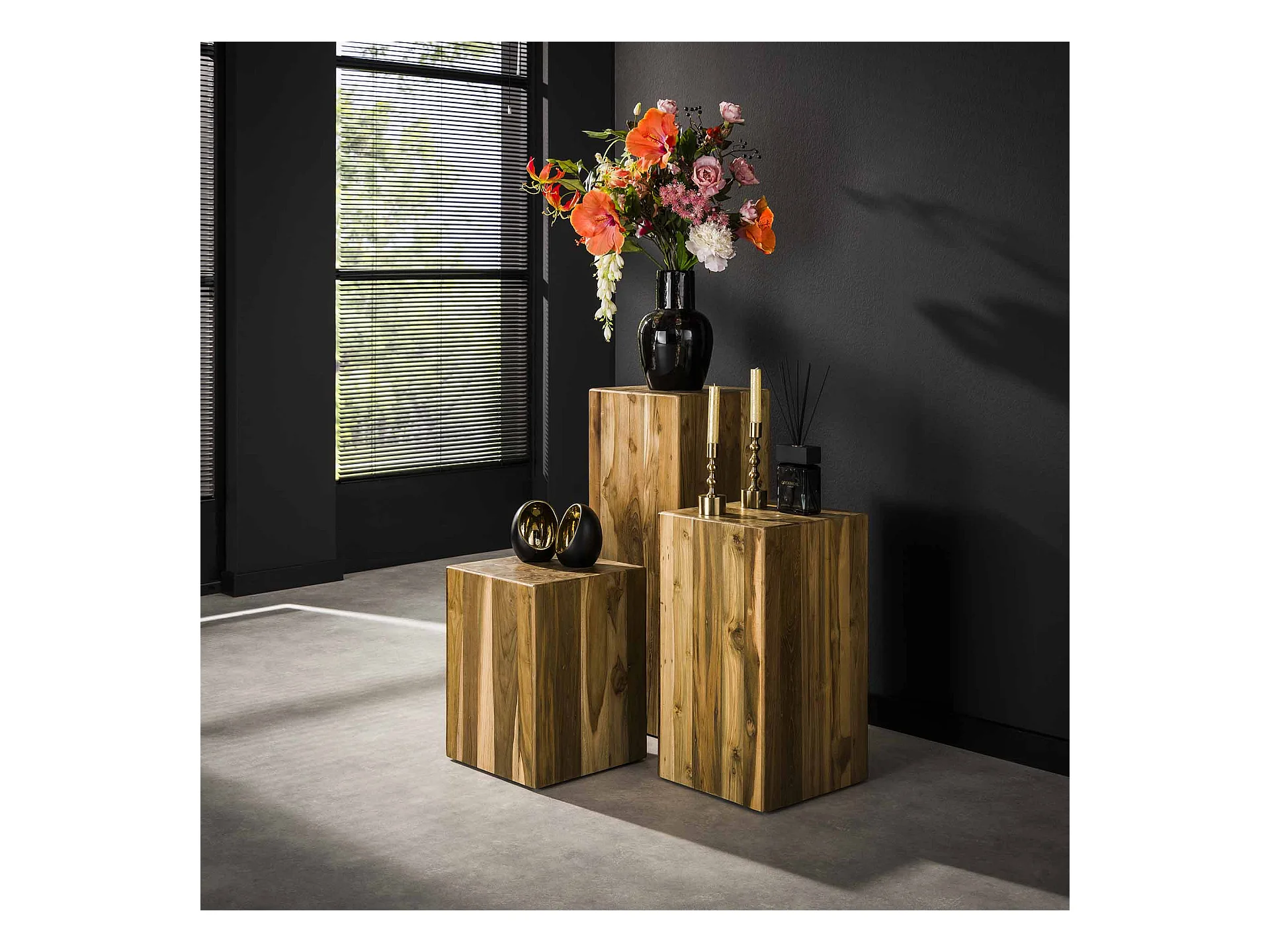 Colonne de fleurs en teck massif recyclé, 45 cm