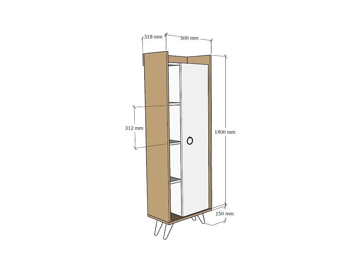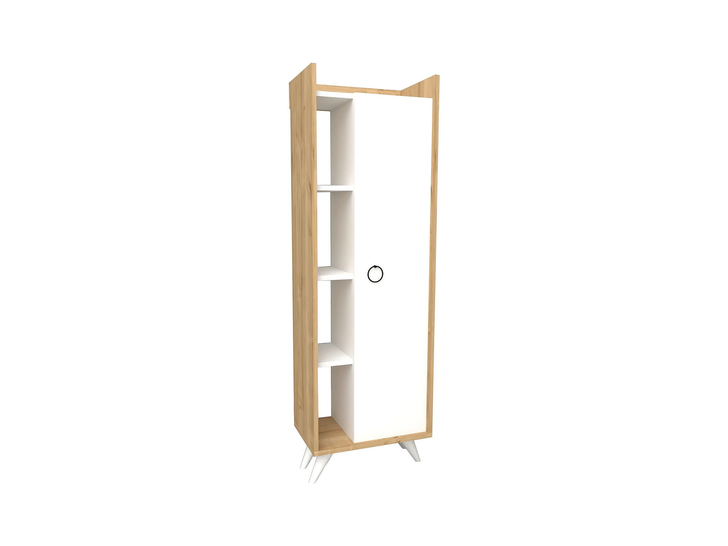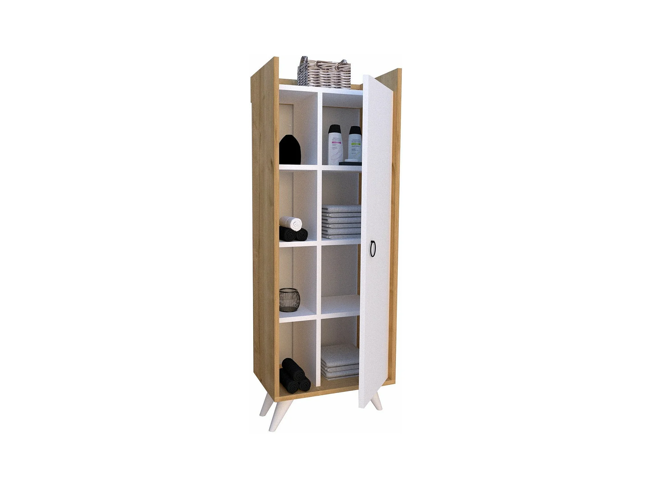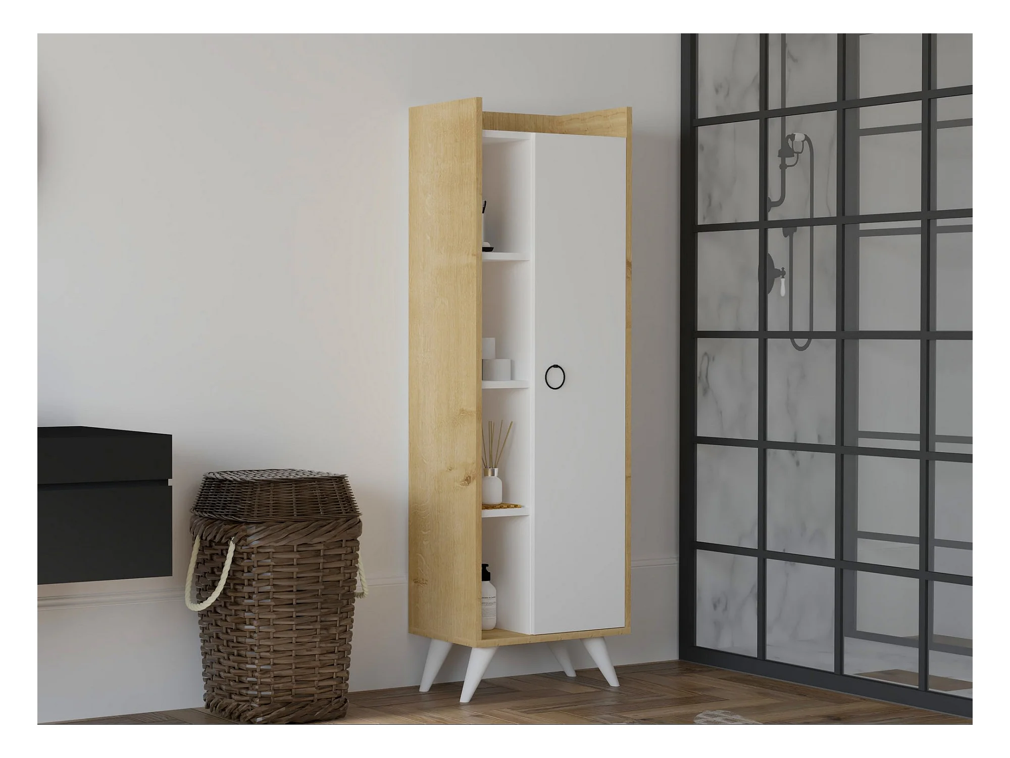 Colonne de salle de bain 1 porte 3 etagères bois blanc et naturel Vima 50cm