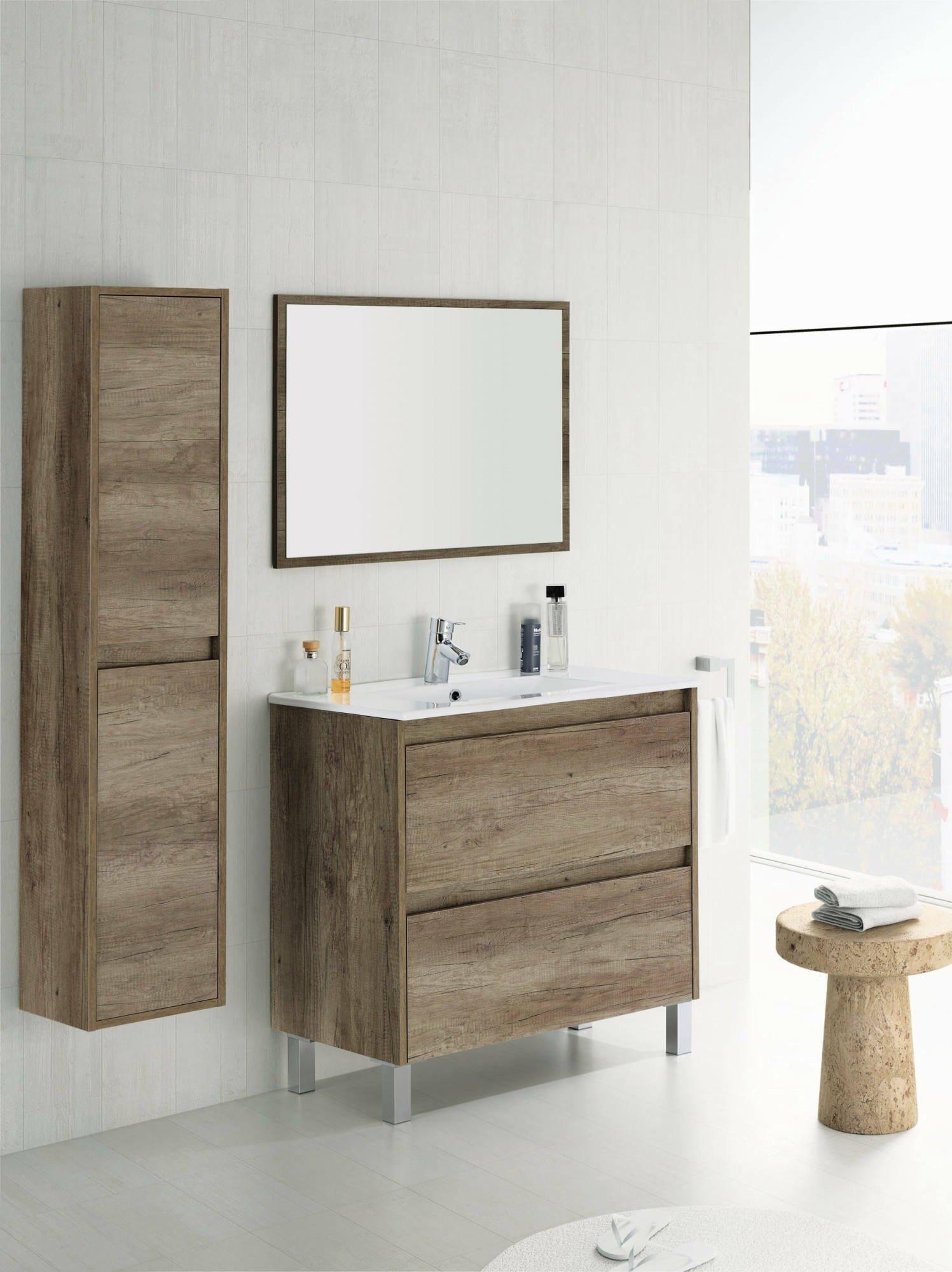 Shreveport Meuble sous-vasque, meuble de salle de bain 2 portes, meuble suspendu avec étagère et miroir, évier non inclus, 80 x 45 h 64 cm, chêne
