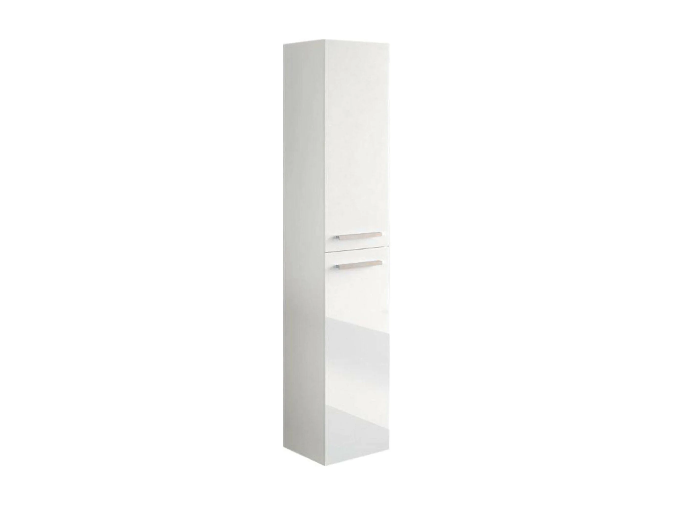 Colonne de salle de bain Dabado, Armoire colonne de salle de bain avec 2 portes, Armoire murale suspendue avec 2 étagères, 30x25h150 cm, Blanc brillant