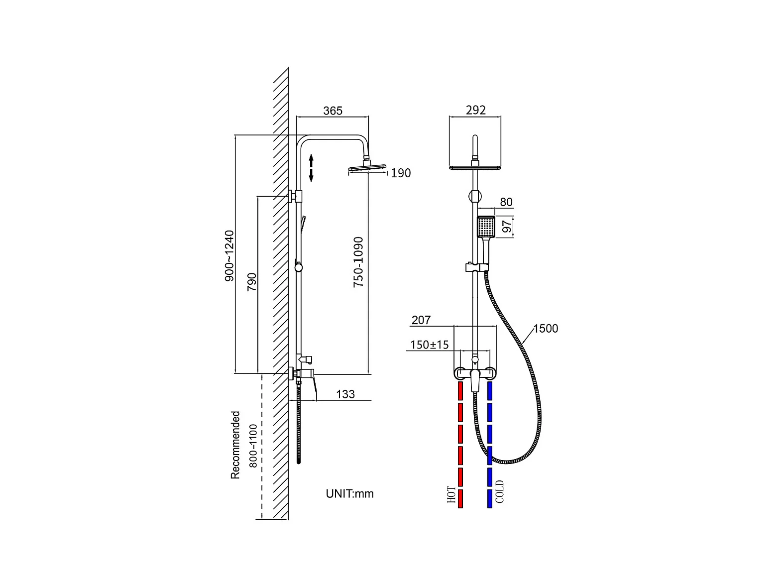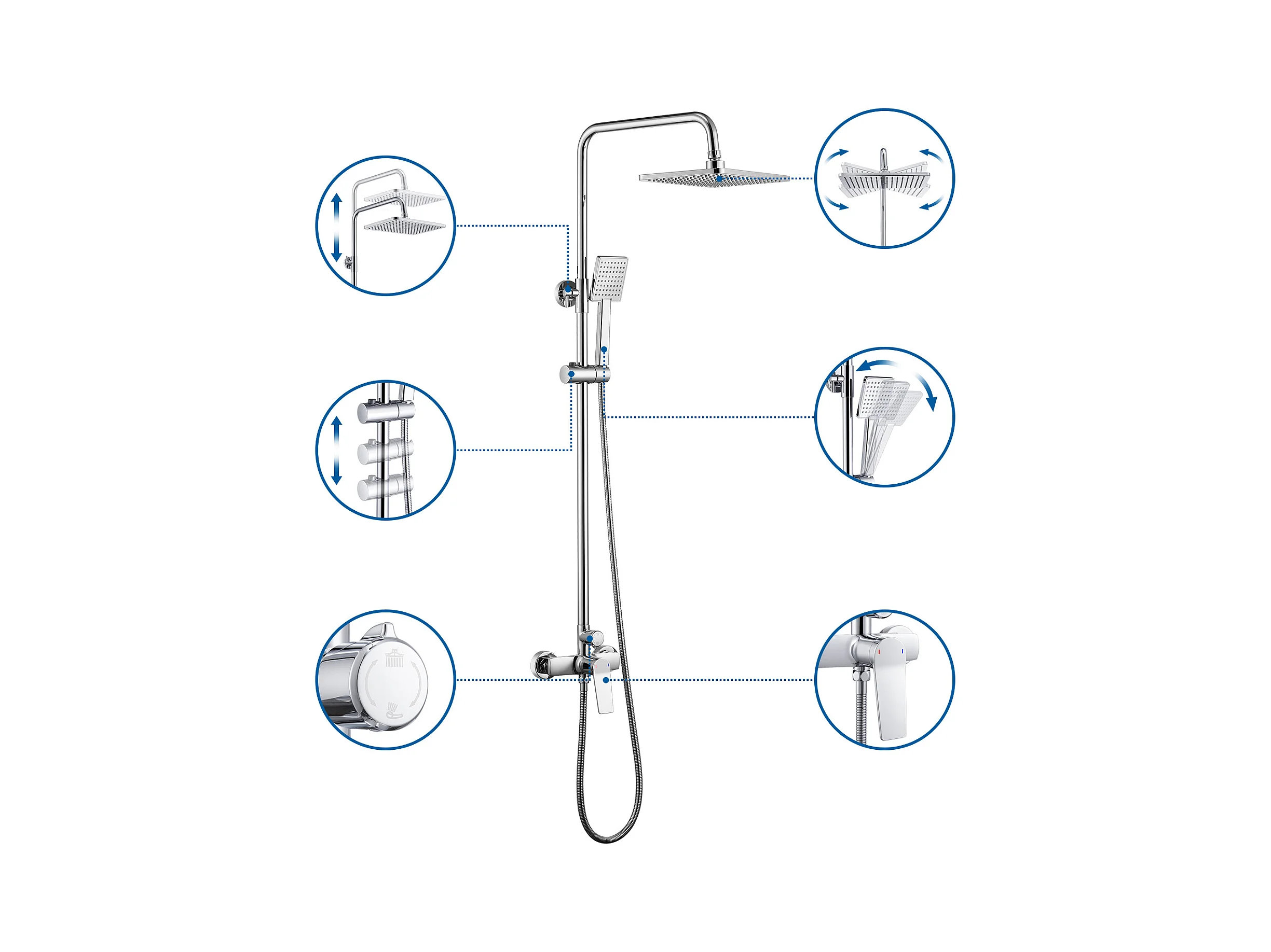 Colonne de Douche Mécanique,Hauteur Réglable 90-1240mm Colonne de Douche Mecanique Kit Set de Douche en Laiton Chromé Solide