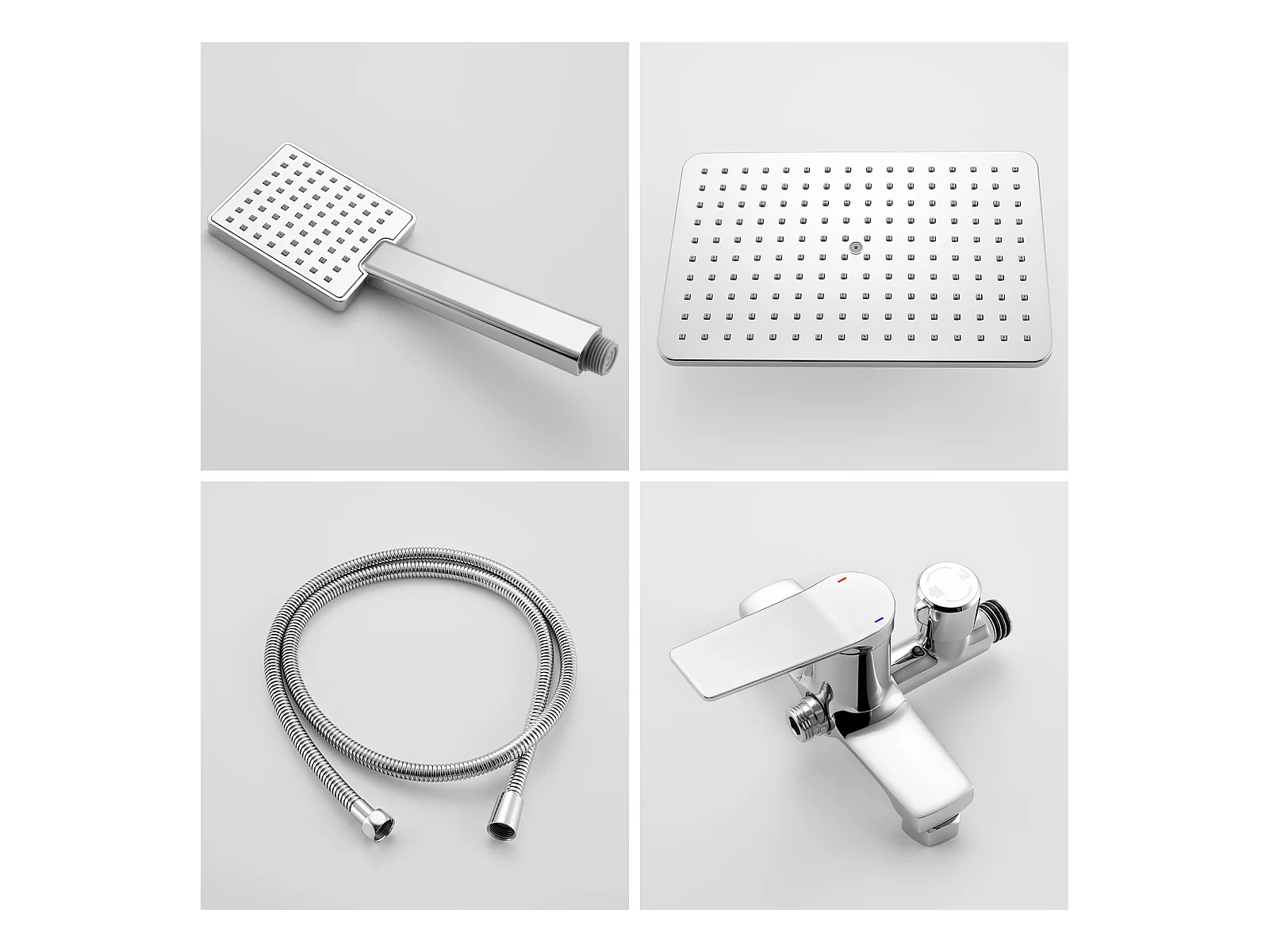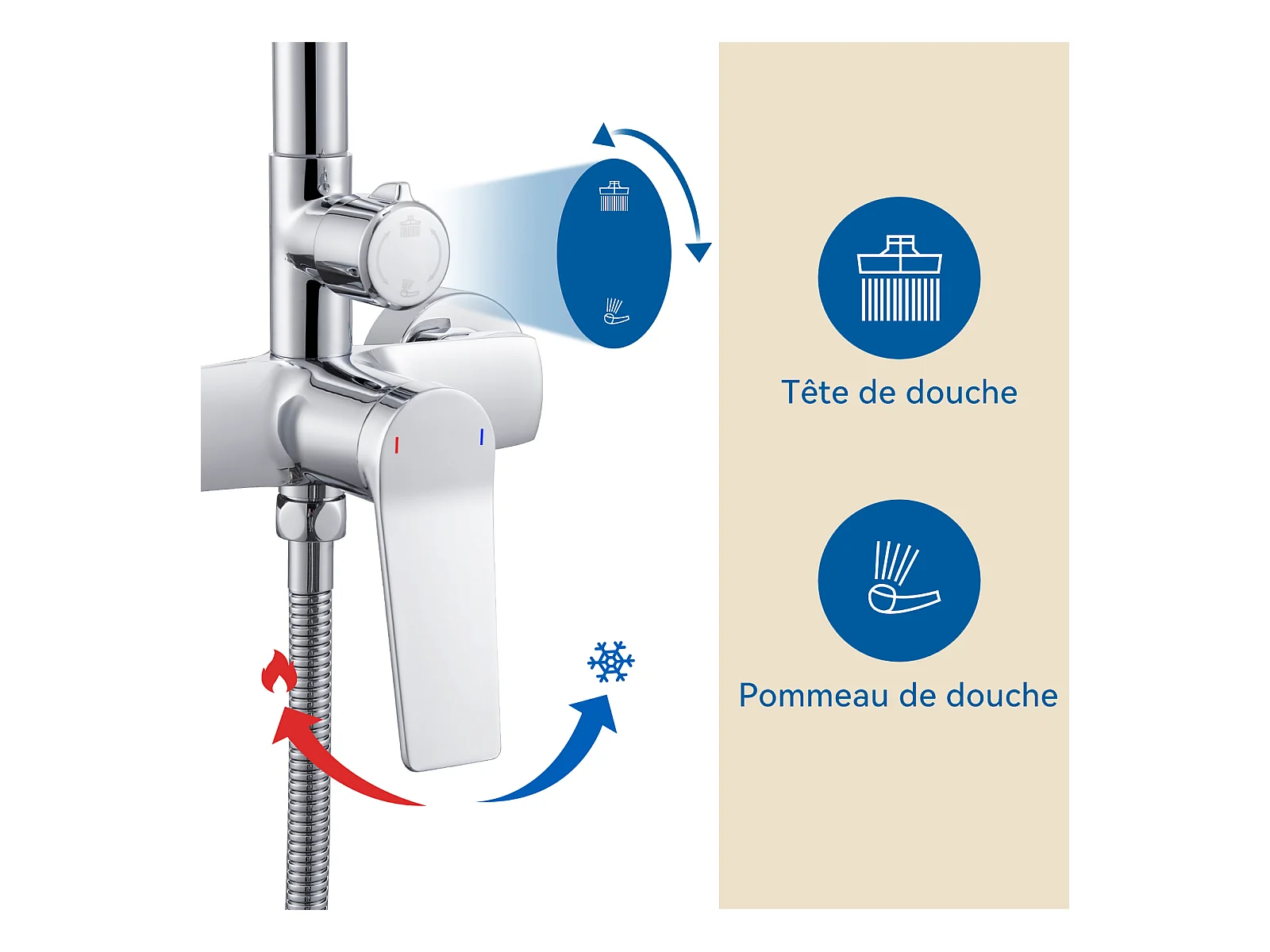 Colonne de Douche Chromée Système de Douche Montage Mural Ensemble de Douche avec Tête de Douche Douchette à Mains Robinet de Baignoire