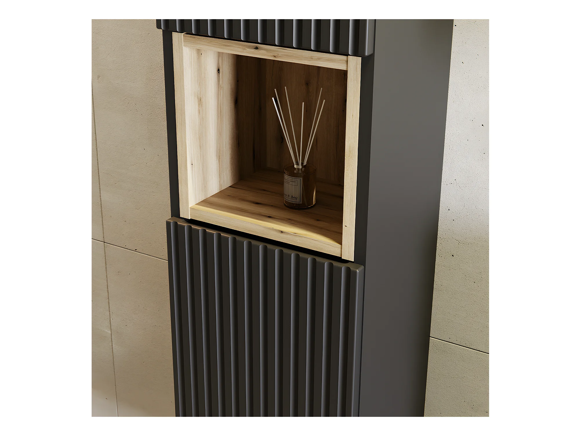 Colonne murale 2 portes 1 niche Riva Noir et Bois