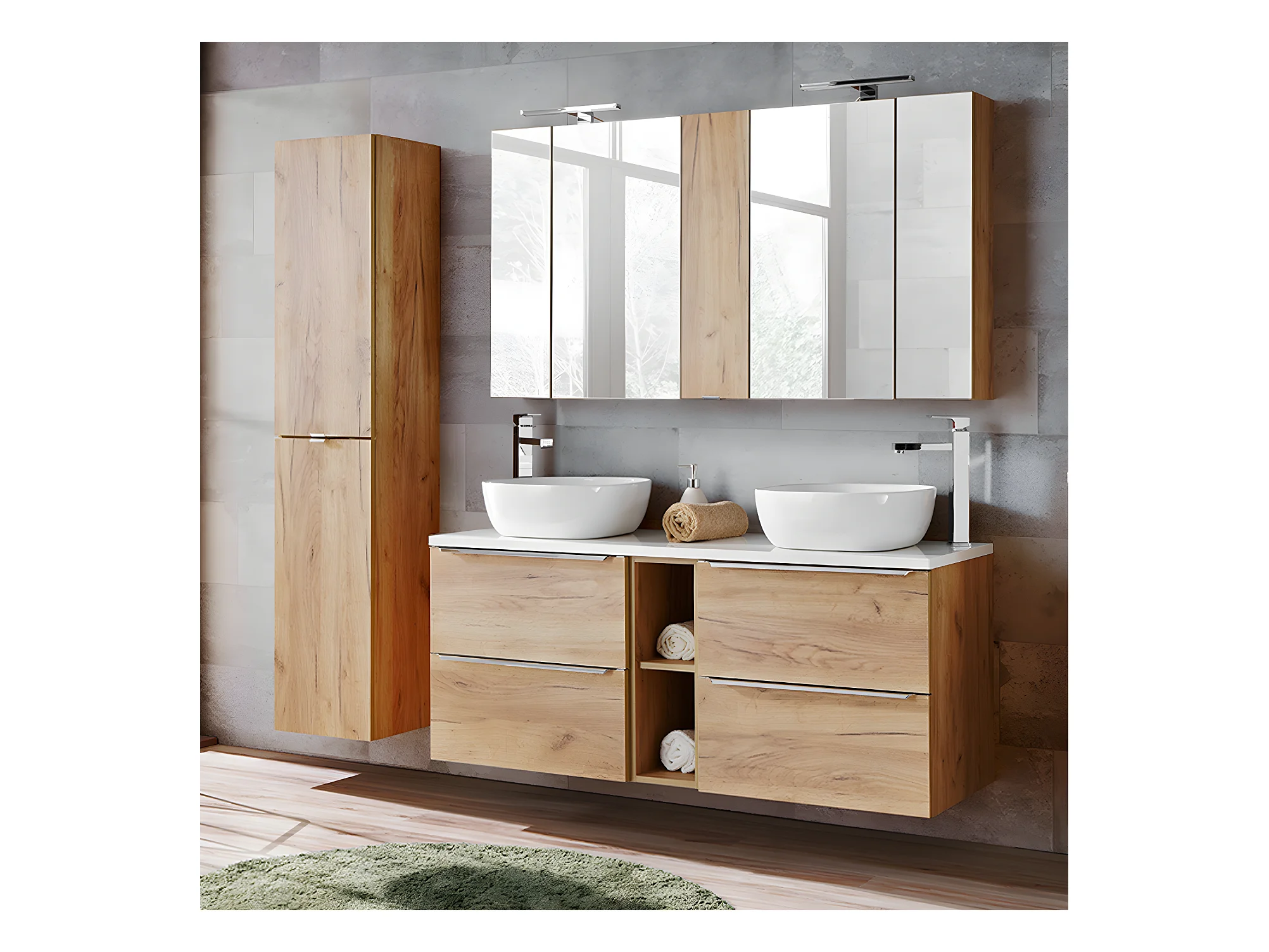 Colonne murale 2 portes 1 niche Riva Blanc et Bois