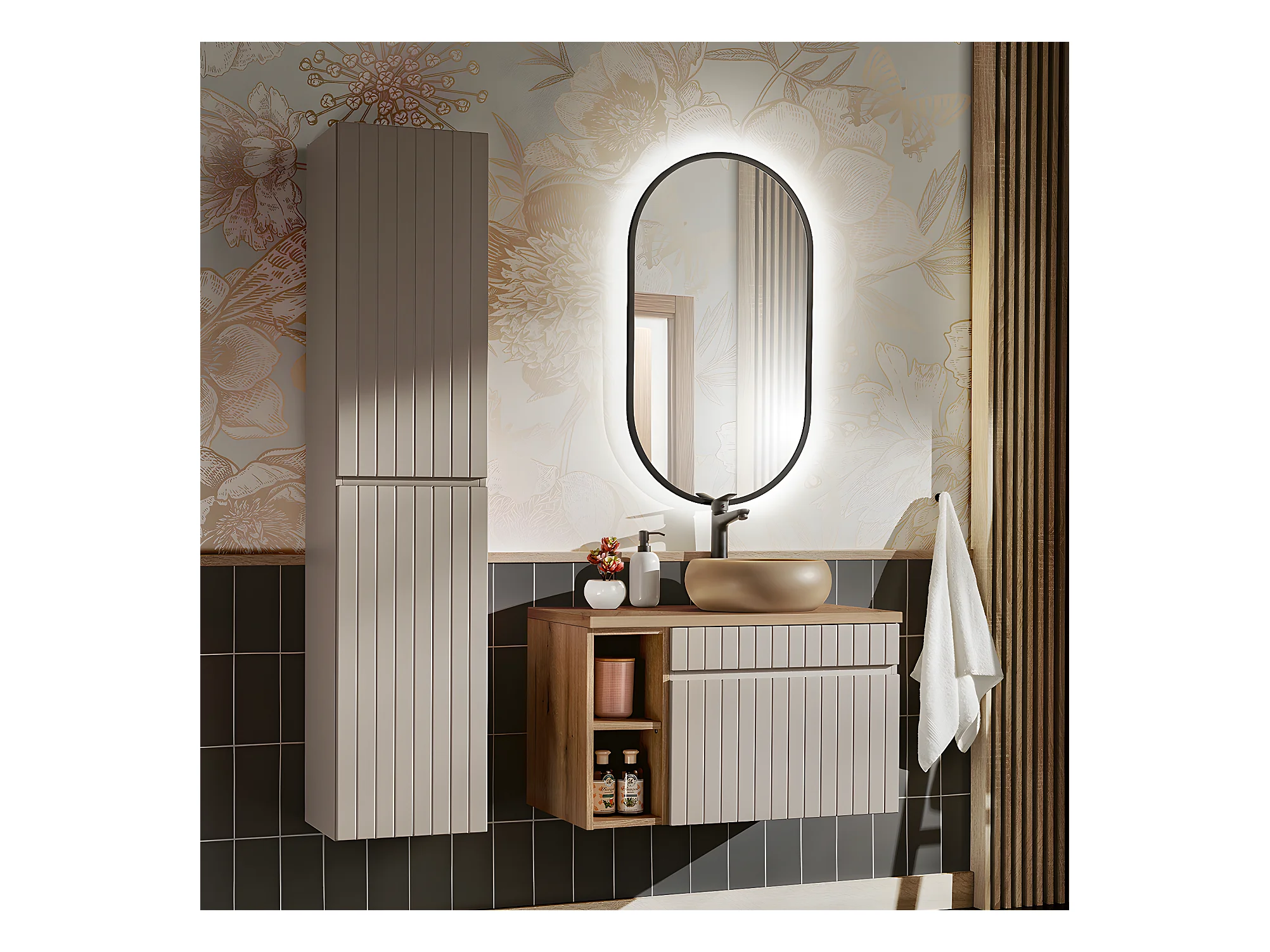 Colonne murale 2 portes 1 niche Riva Cachemire et Bois