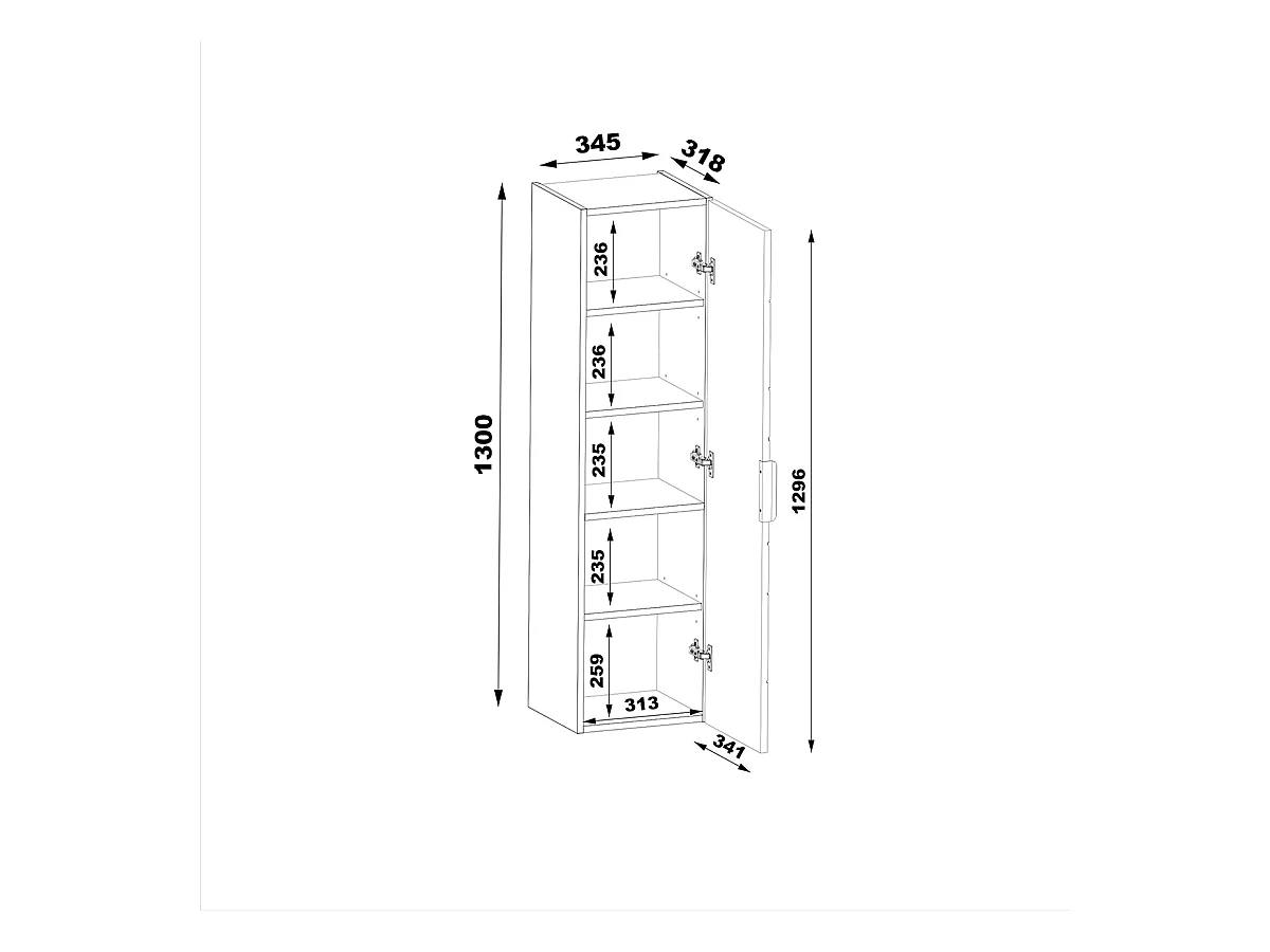 Armoire de salle de bain en cachemire, colonne haute, 1 porte, Pile