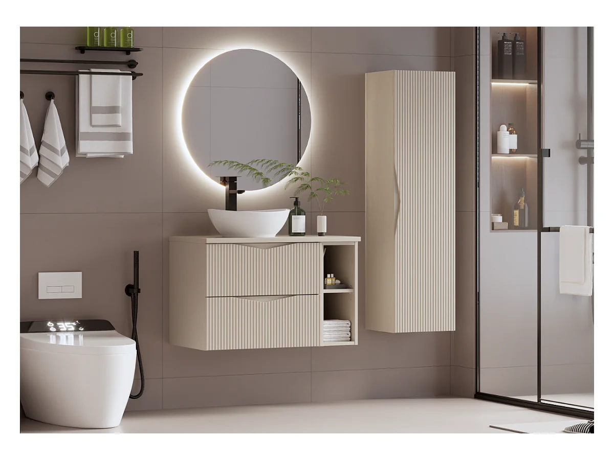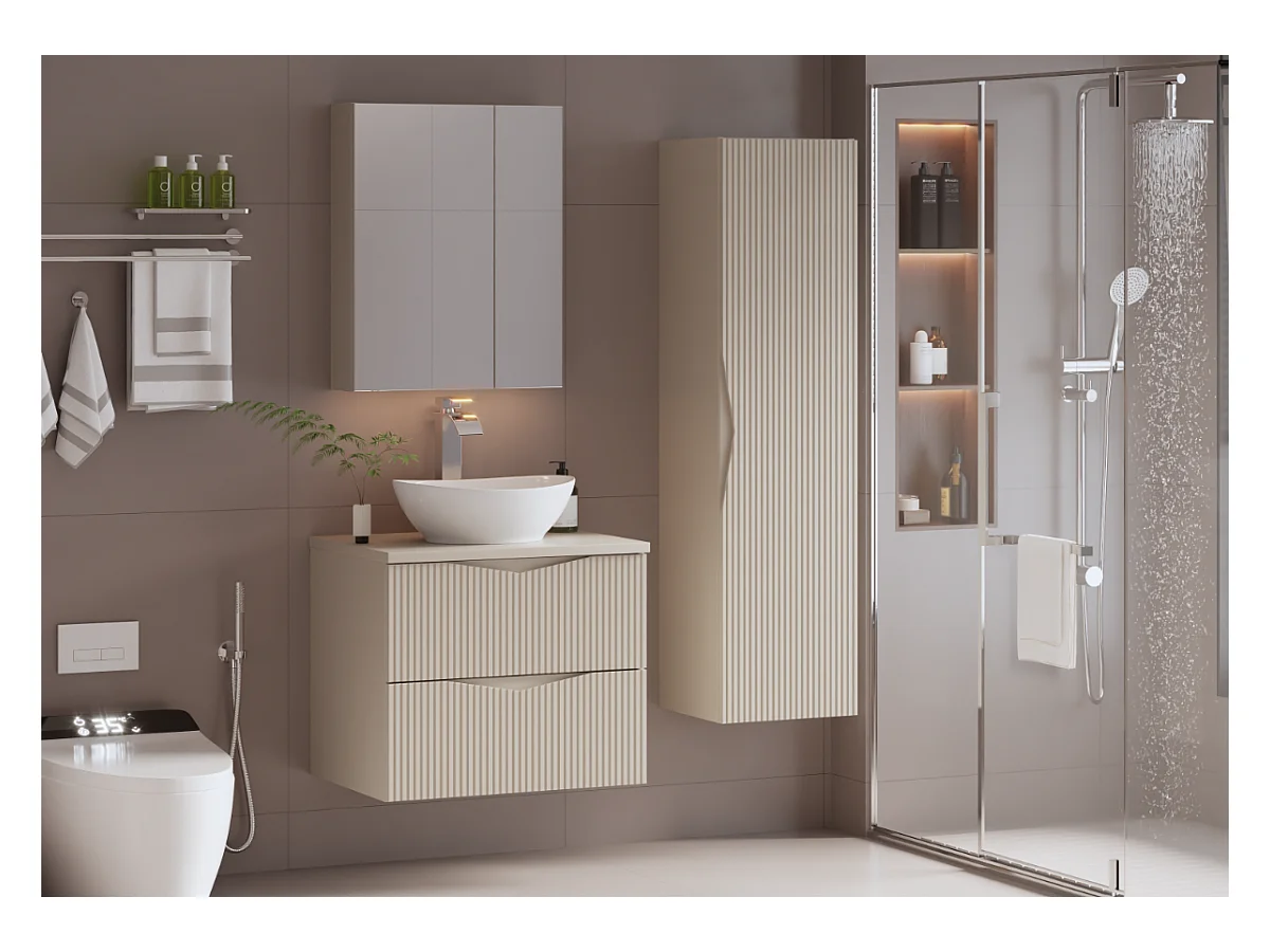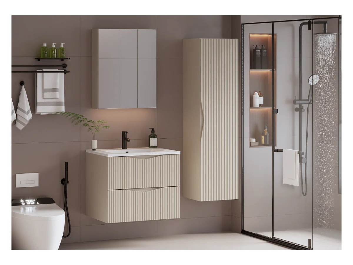 Armoire de salle de bain en cachemire Colonne haute Façades rainurées Aqua