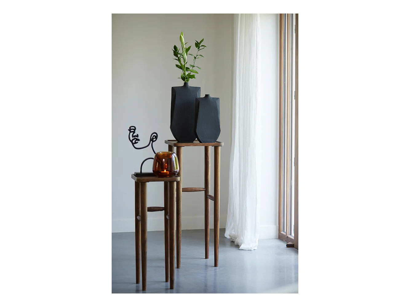 Table d'appoint carrée bois plaqué noyer et acier inoxydable Gucca