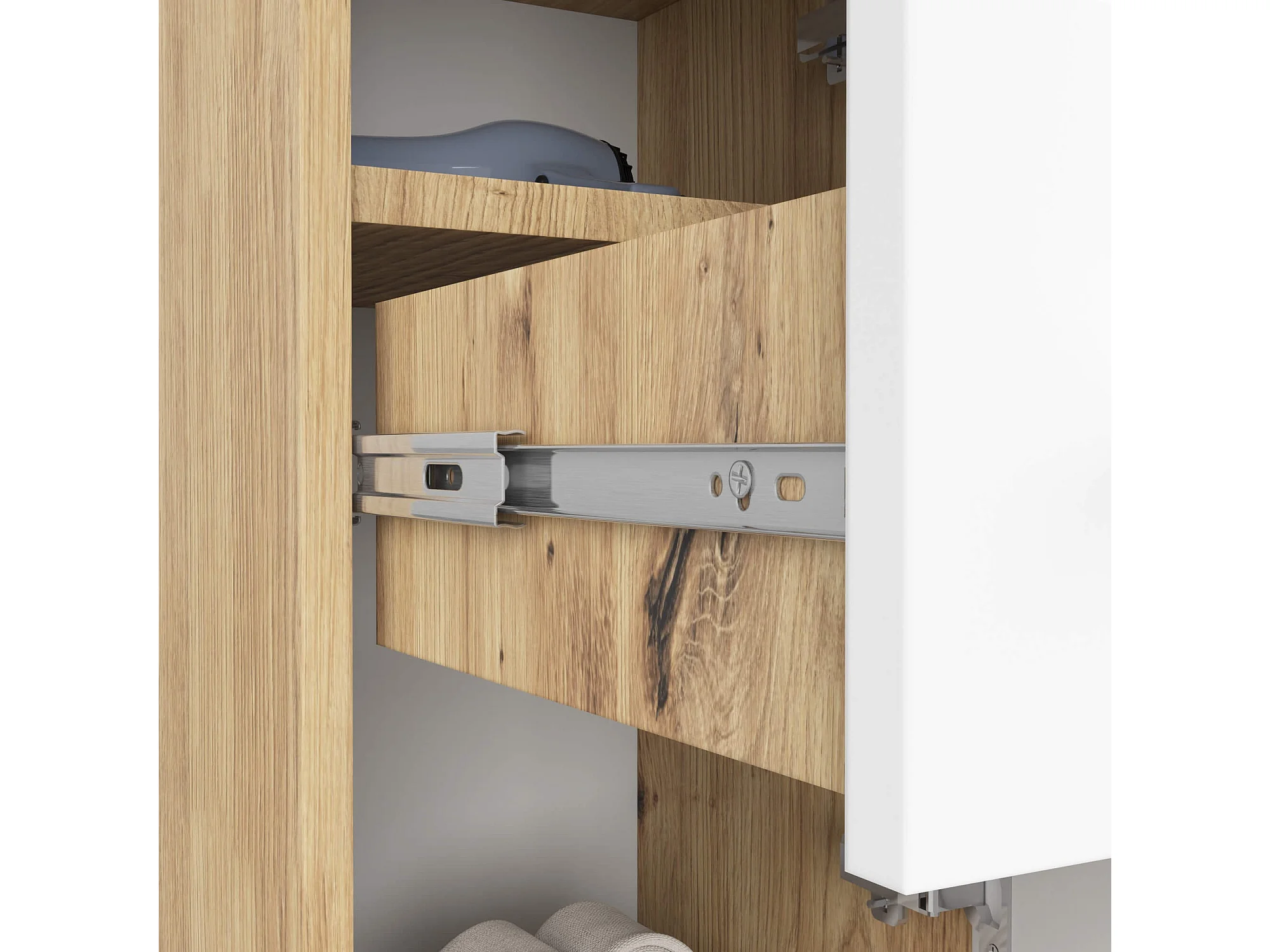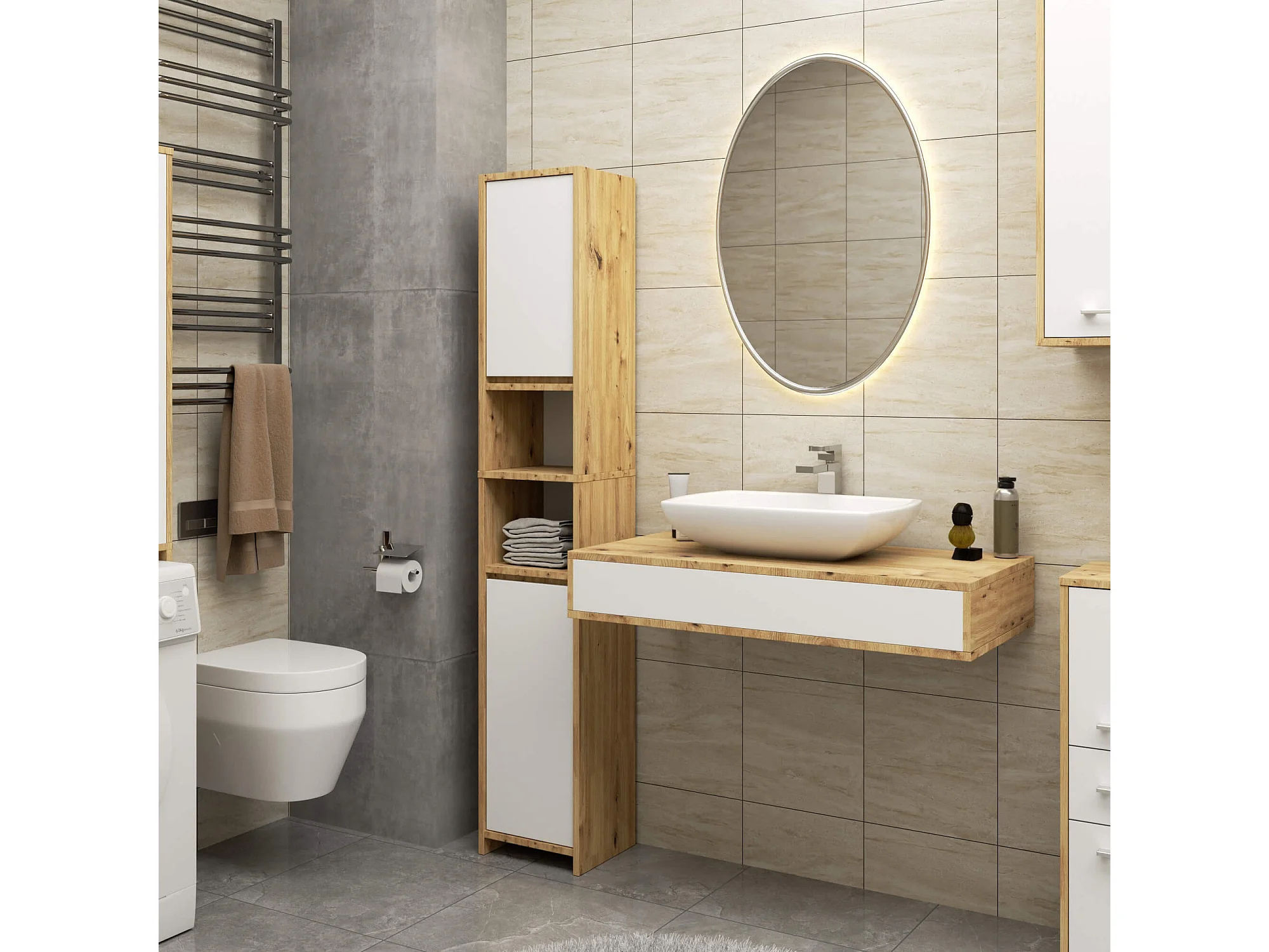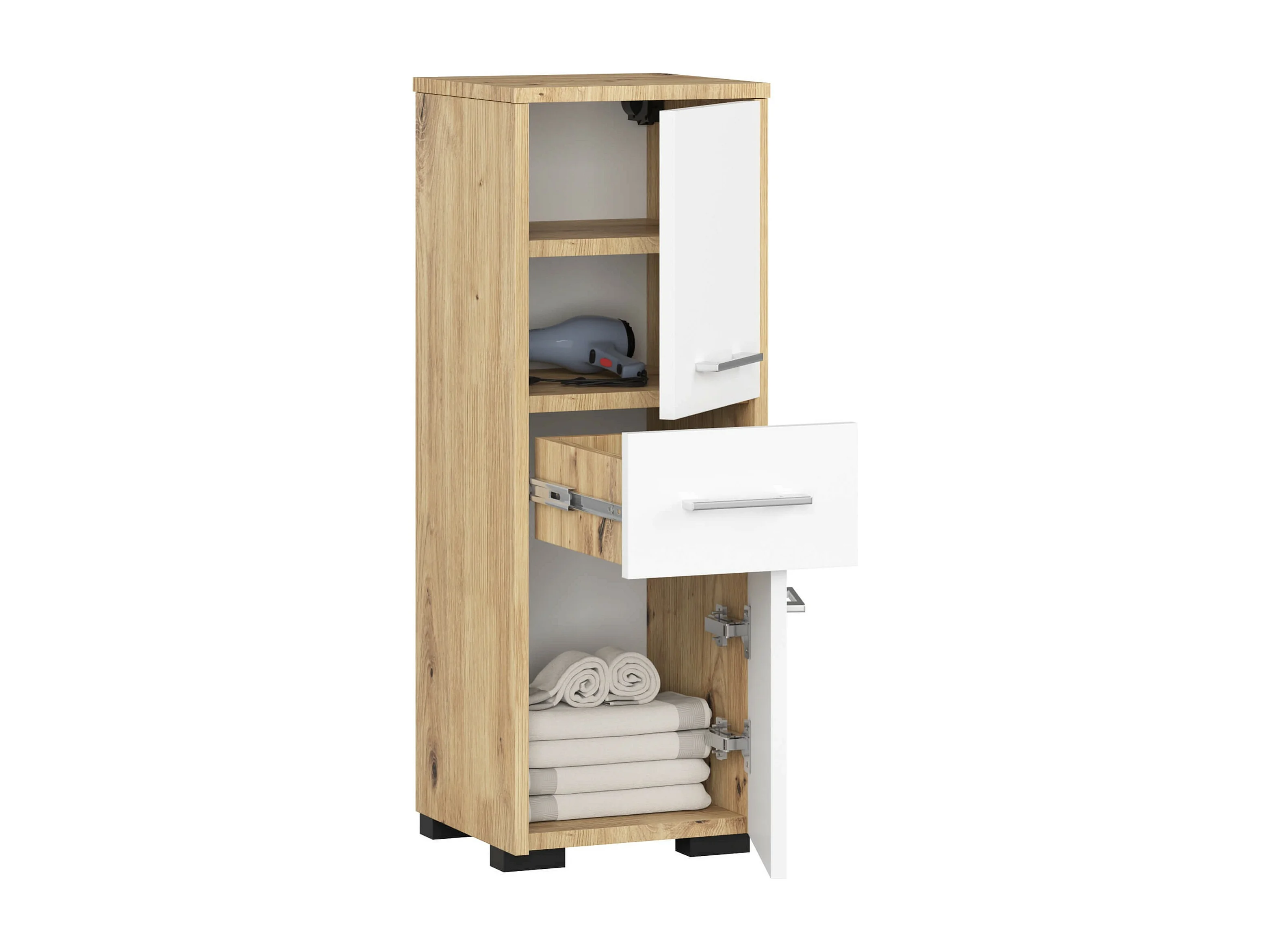 Colonne salle de bains AKORD FIN Chêne Artisan 30 cm 2 portes 1 tiroir façade Blanche 3 étagères 30x30x85 cm