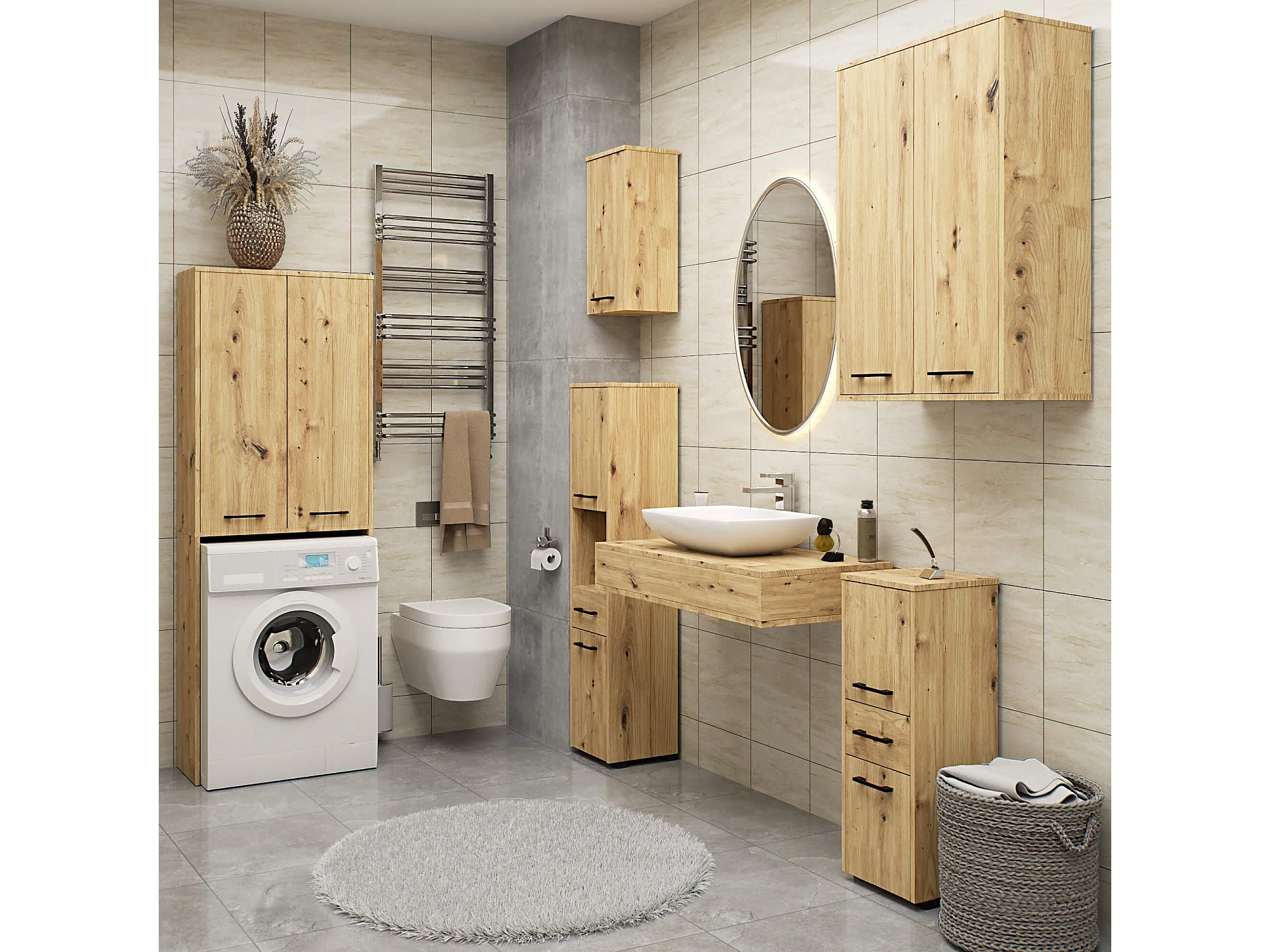 Colonne salle de bains AKORD FIN Chêne Artisan 30 cm 2 portes façade Chêne Artisan 5 étagères 30x30x140 cm