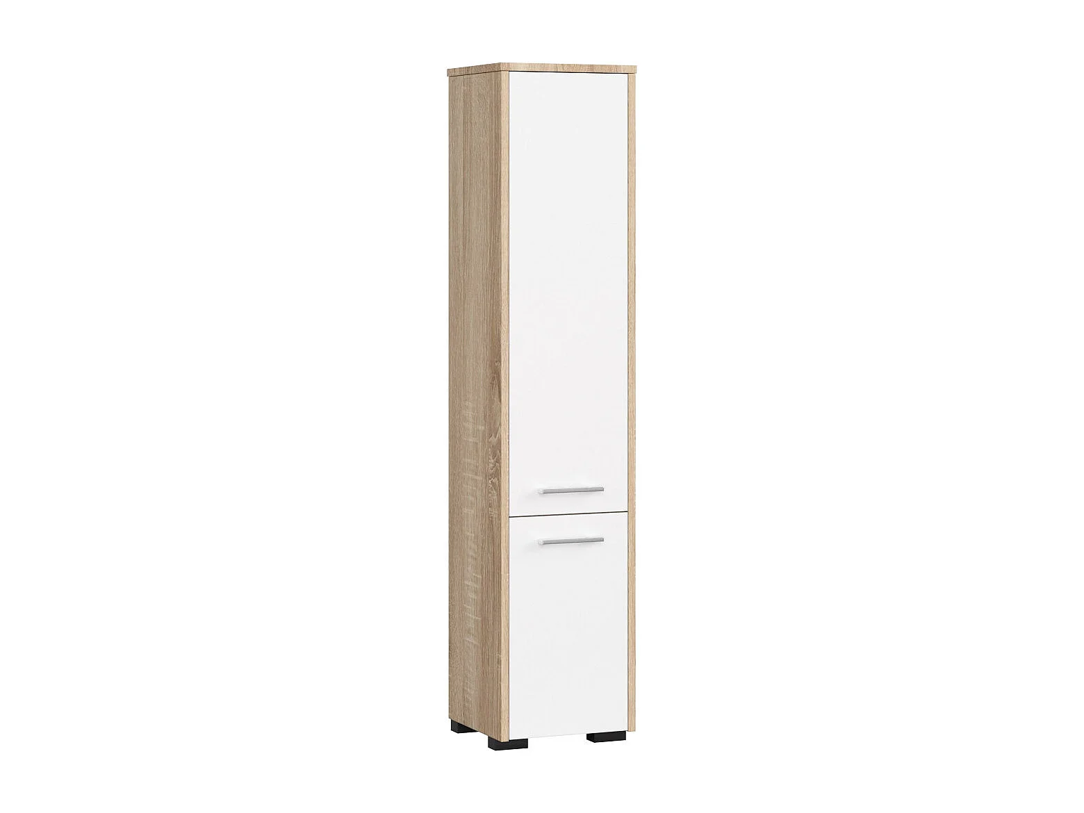Colonne salle de bains AKORD FIN Chêne Sonoma 30 cm 2 portes façade Blanche 5 étagères 30x30x140 cm