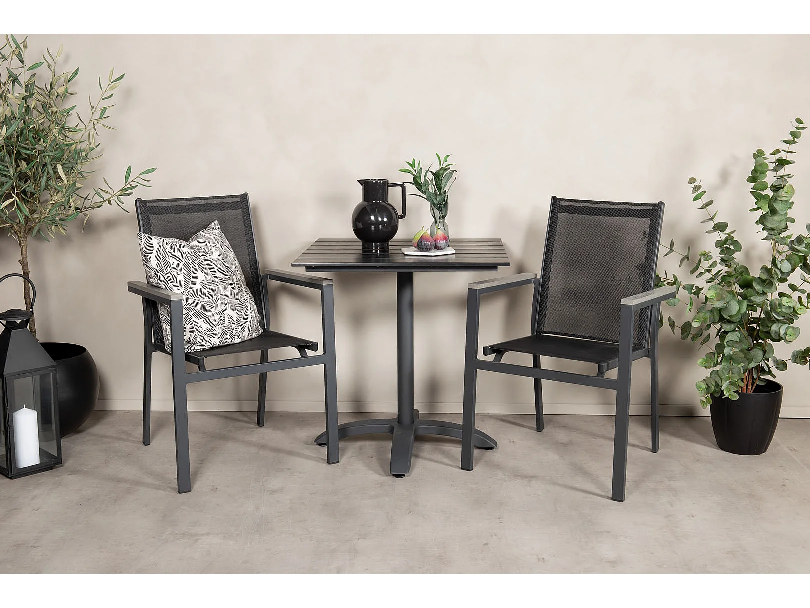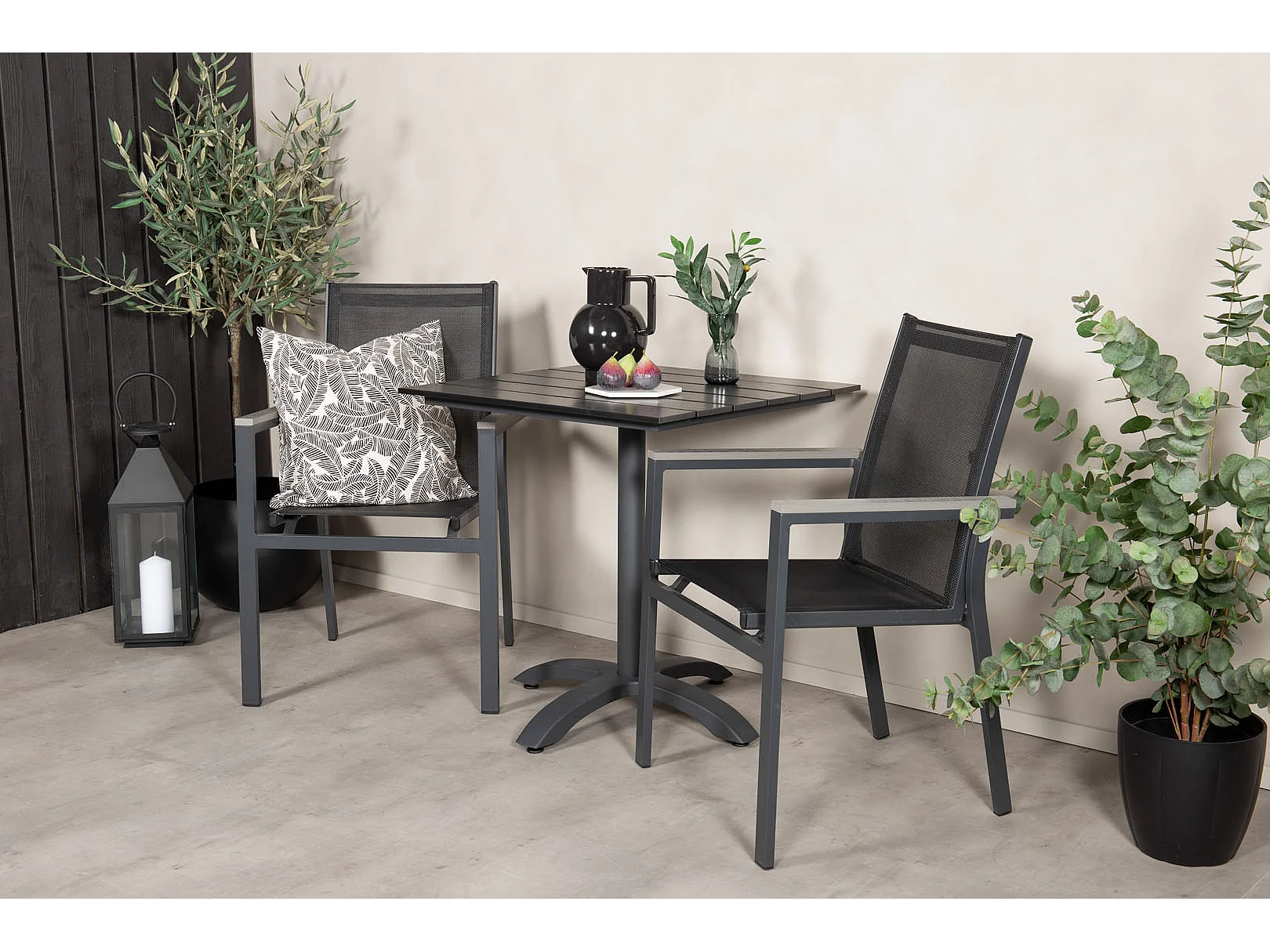 Colorado 70*70 Ensemble table et chaises de jardin, table 70x70cm et 2 chaises Parma, noir.