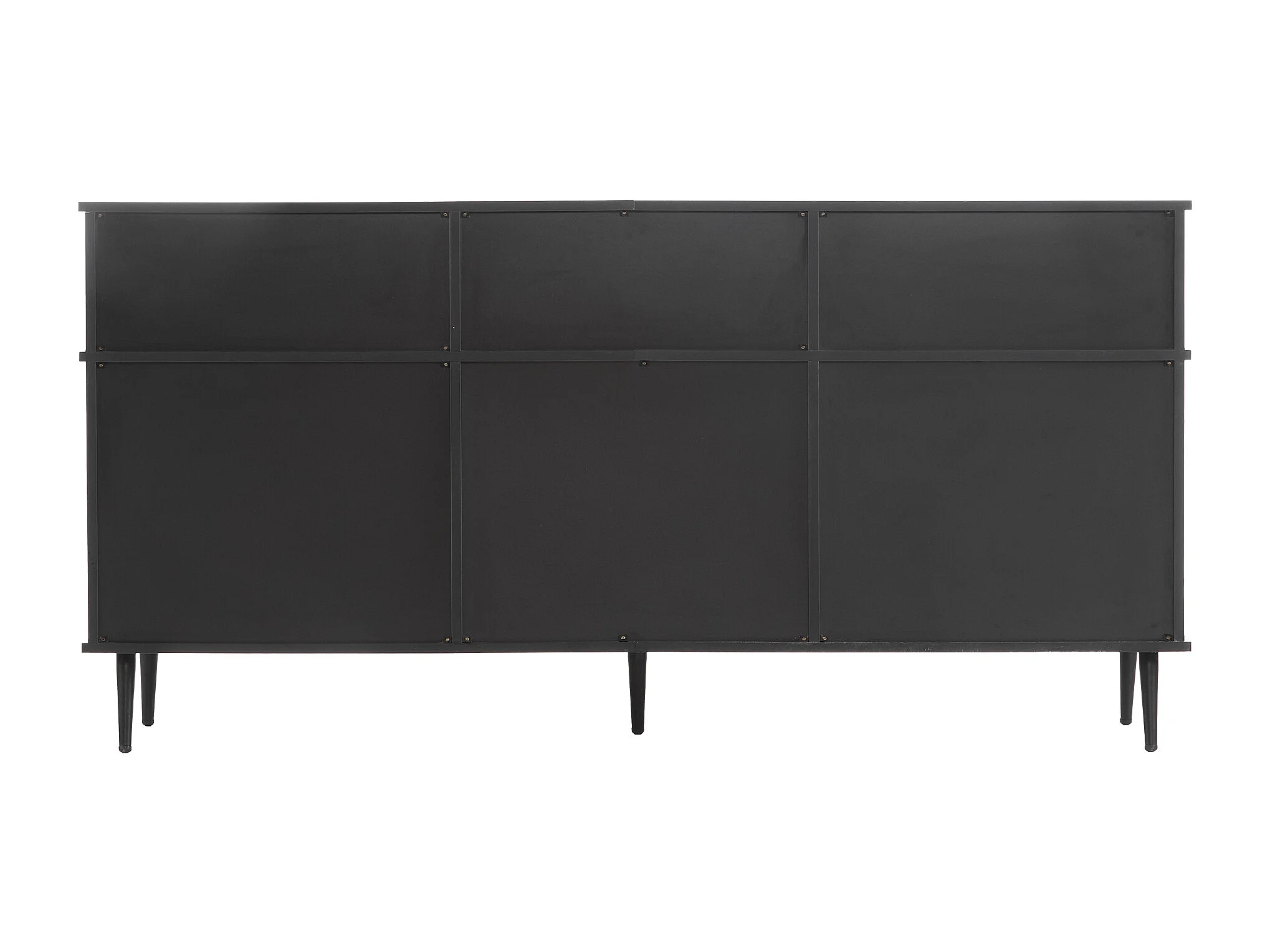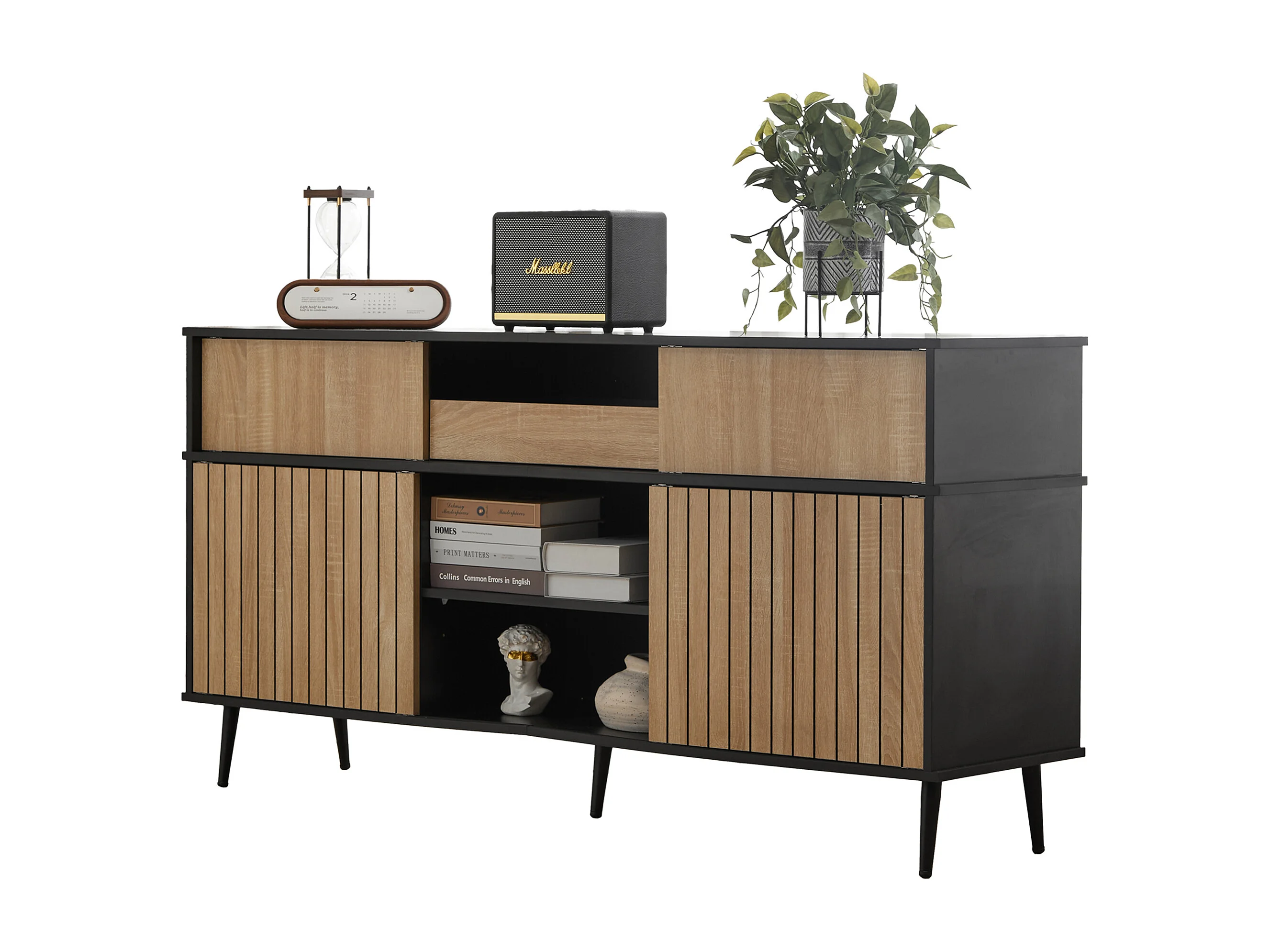 Commode 160x40x80 cm avec quatre portes coulissantes et un tiroir panneaux de particules en noir et Couleur naturelle