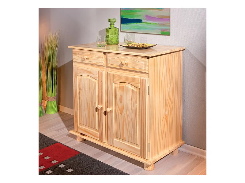 Bahut Bois 2 Portes 2 Tiroirs "Alienor" 88cm Naturel