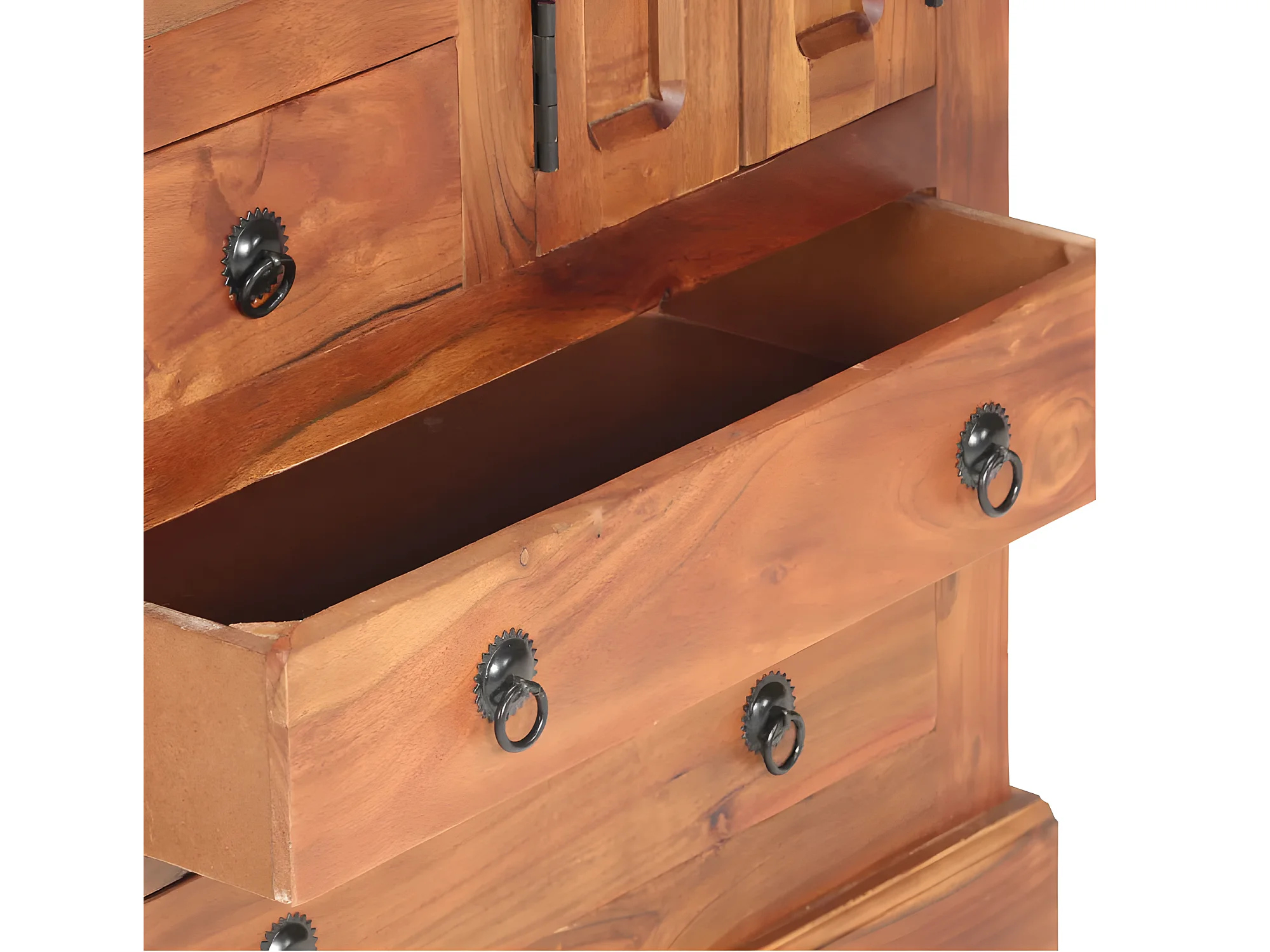 Commode 2 portes 4 tiroirs acacia massif foncé Sokina