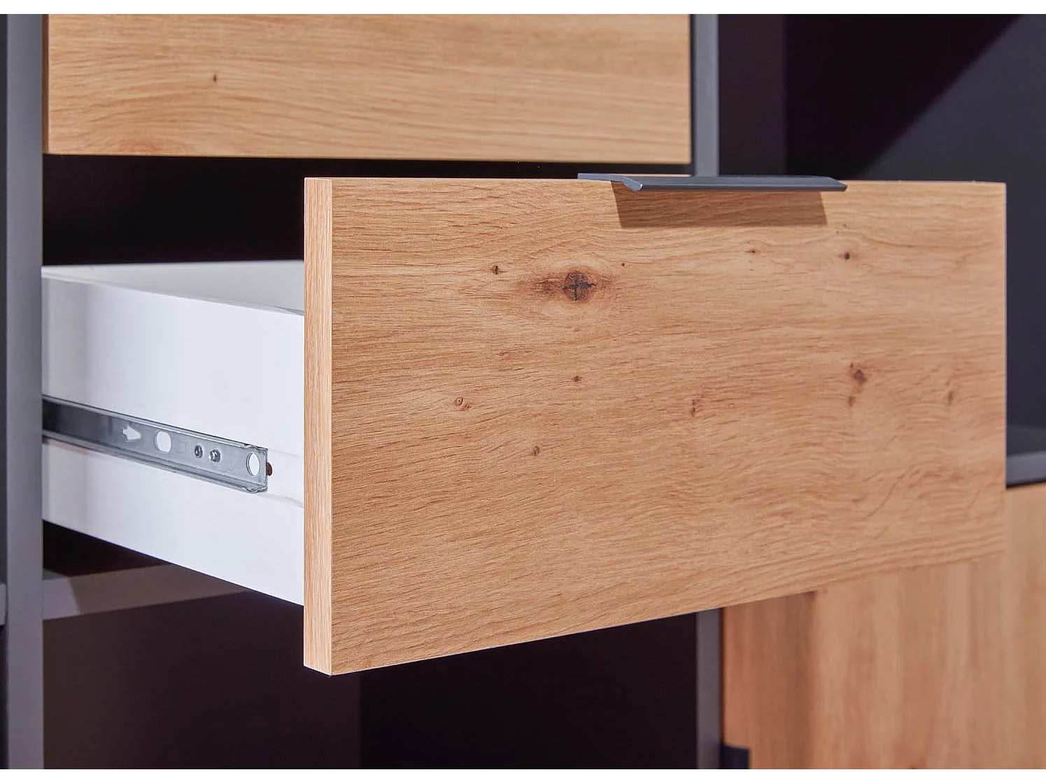 Commode 2 Portes "Gemeno" 120cm Gris & Chêne
