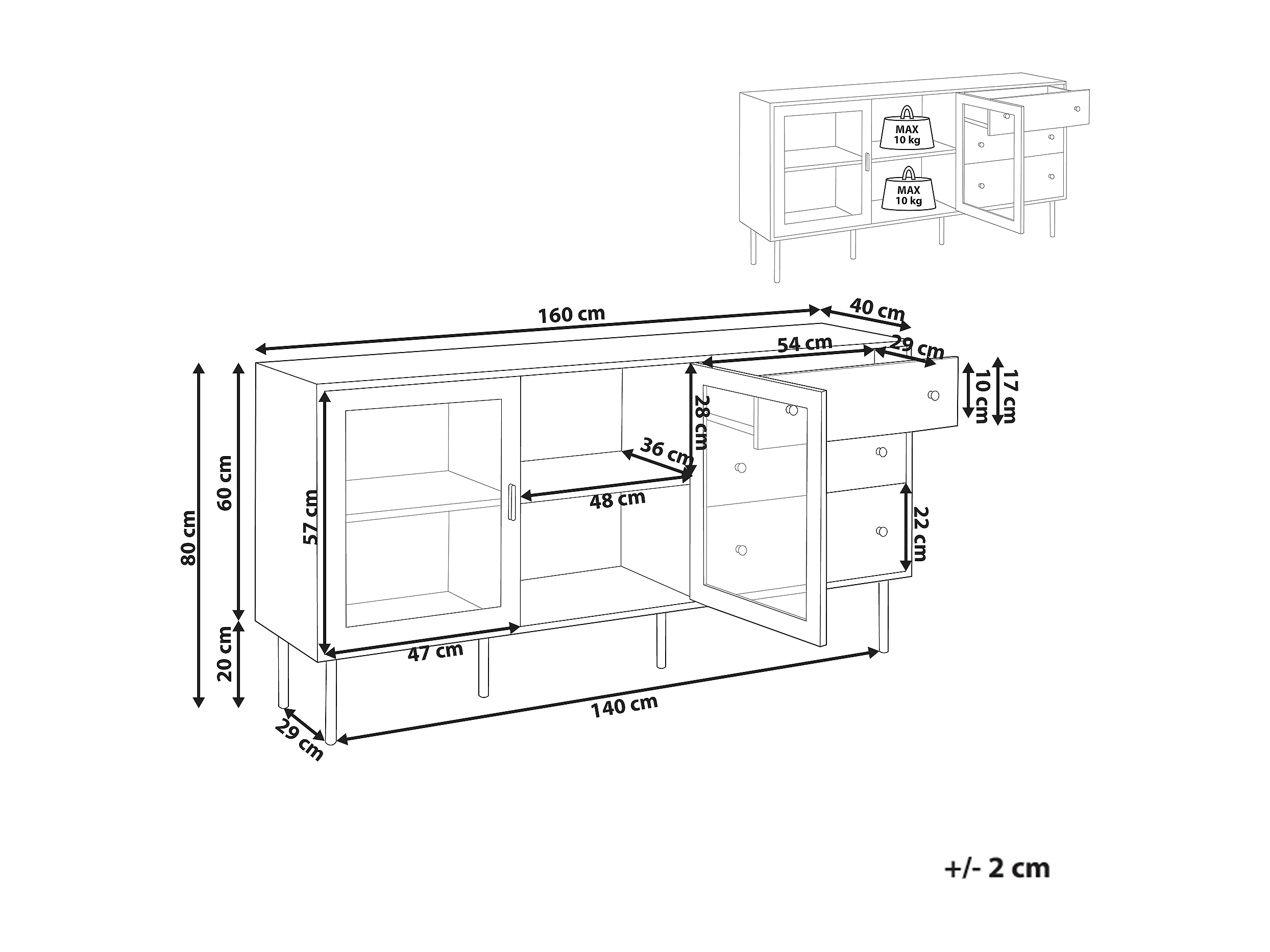 Buffet avec vitrine en verre MILORA 160 cm Blanc