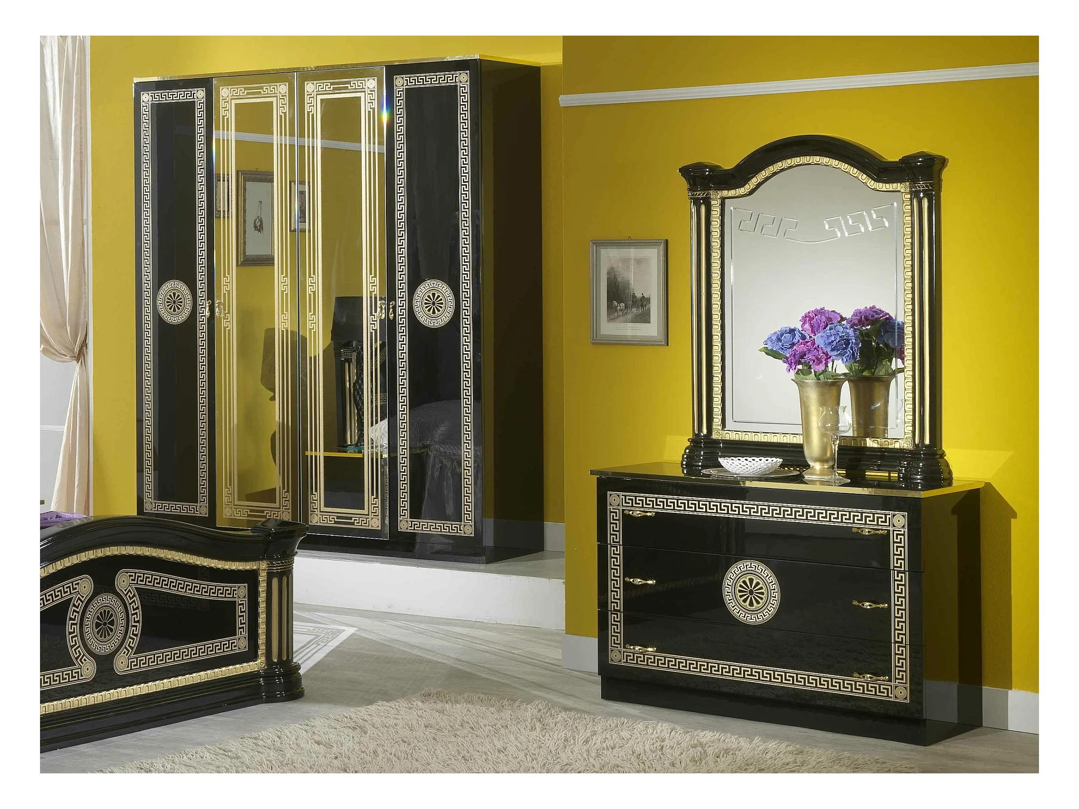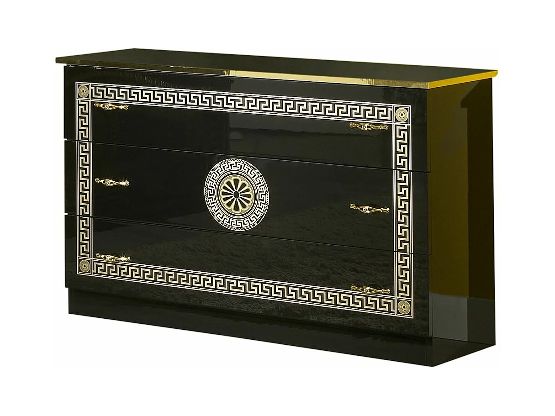 Commode 3 grands tiroirs bois brillant noir et doré Savana