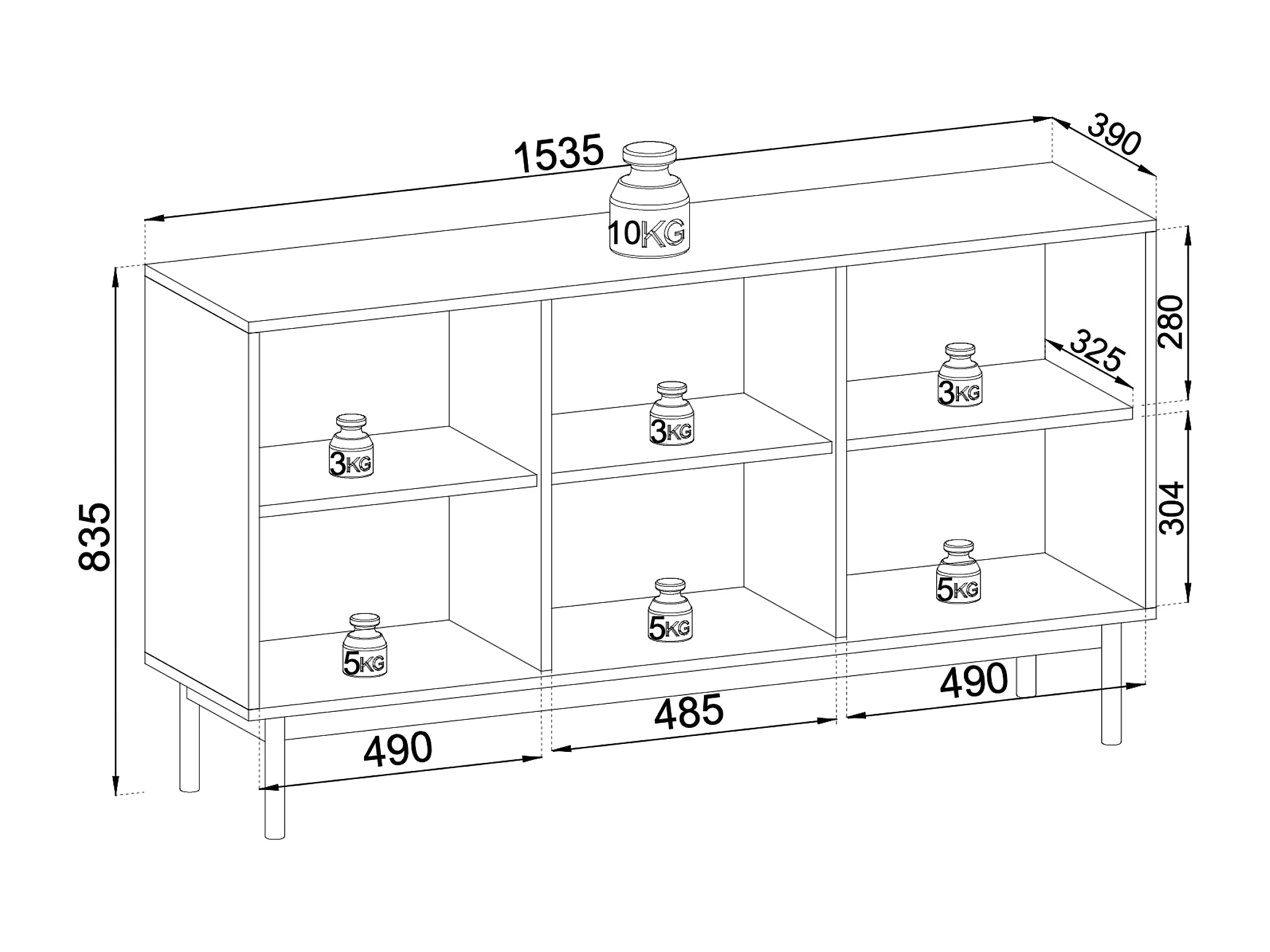 Commode : Cachemire, Pieds Noir, 153,5 x 83,5 x 39 cm