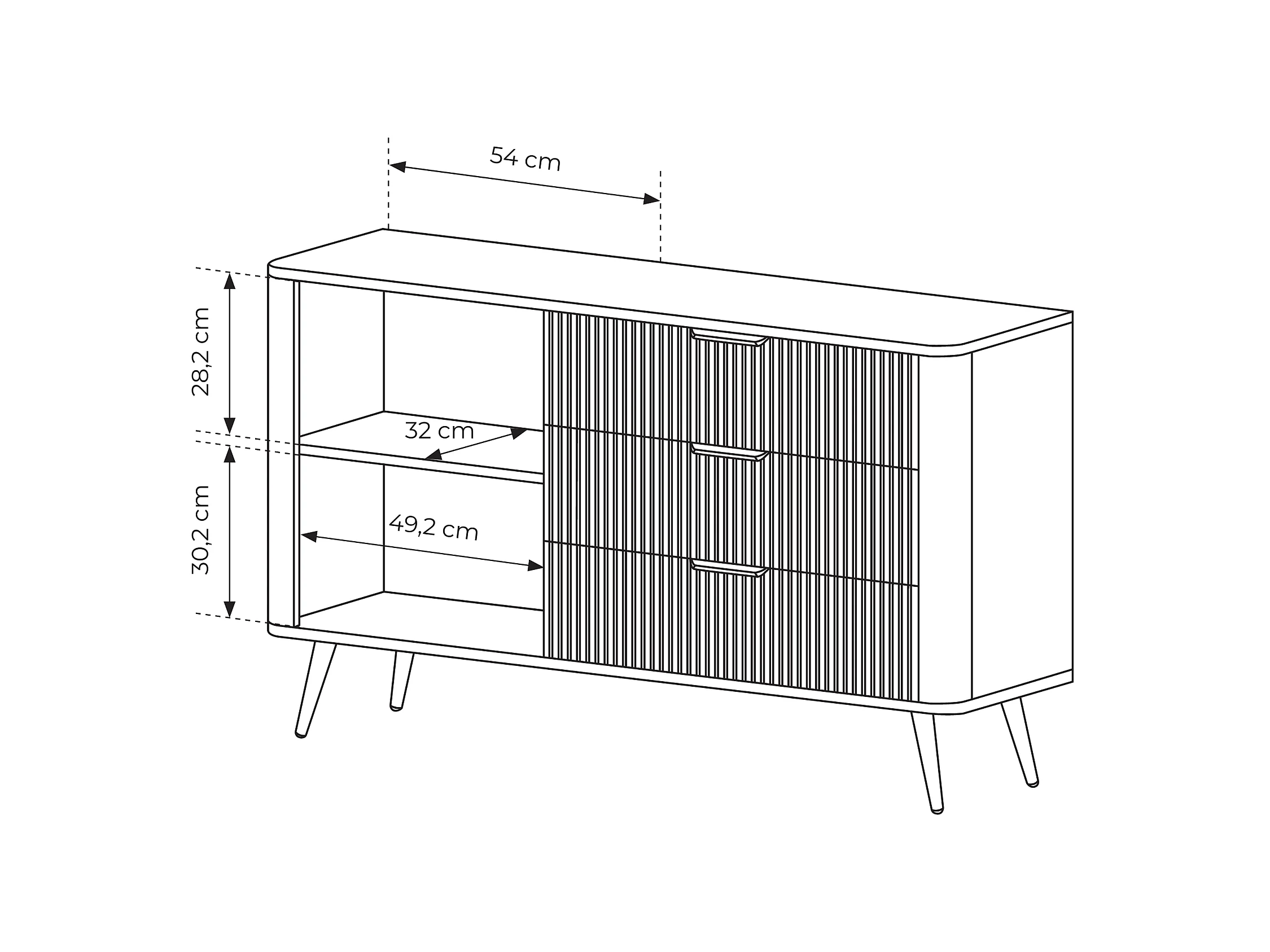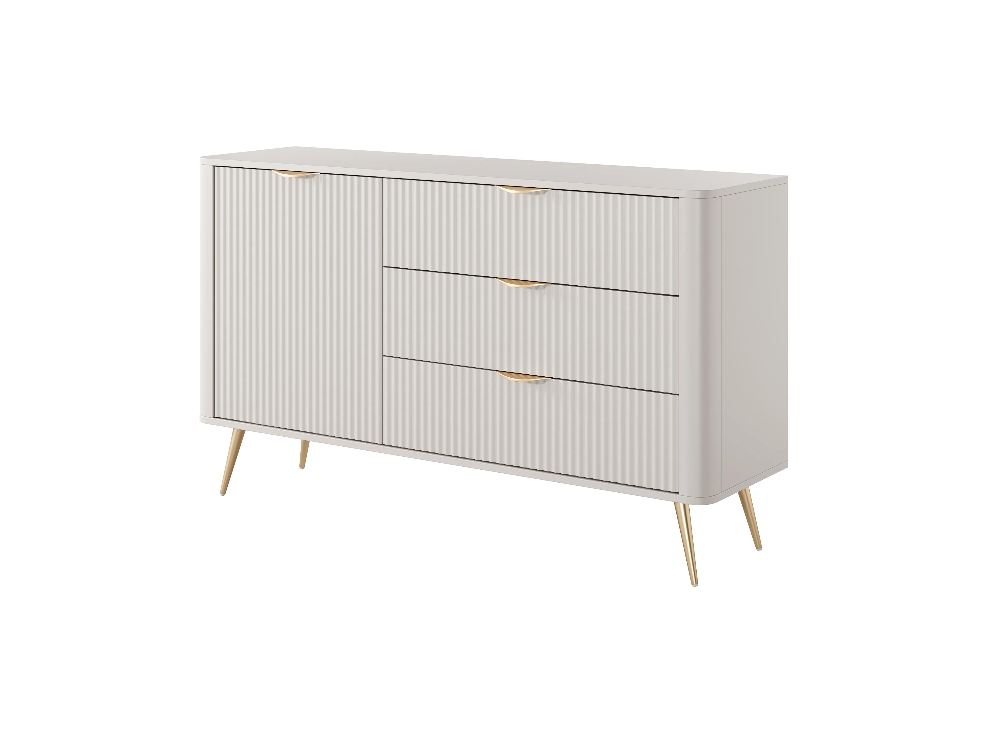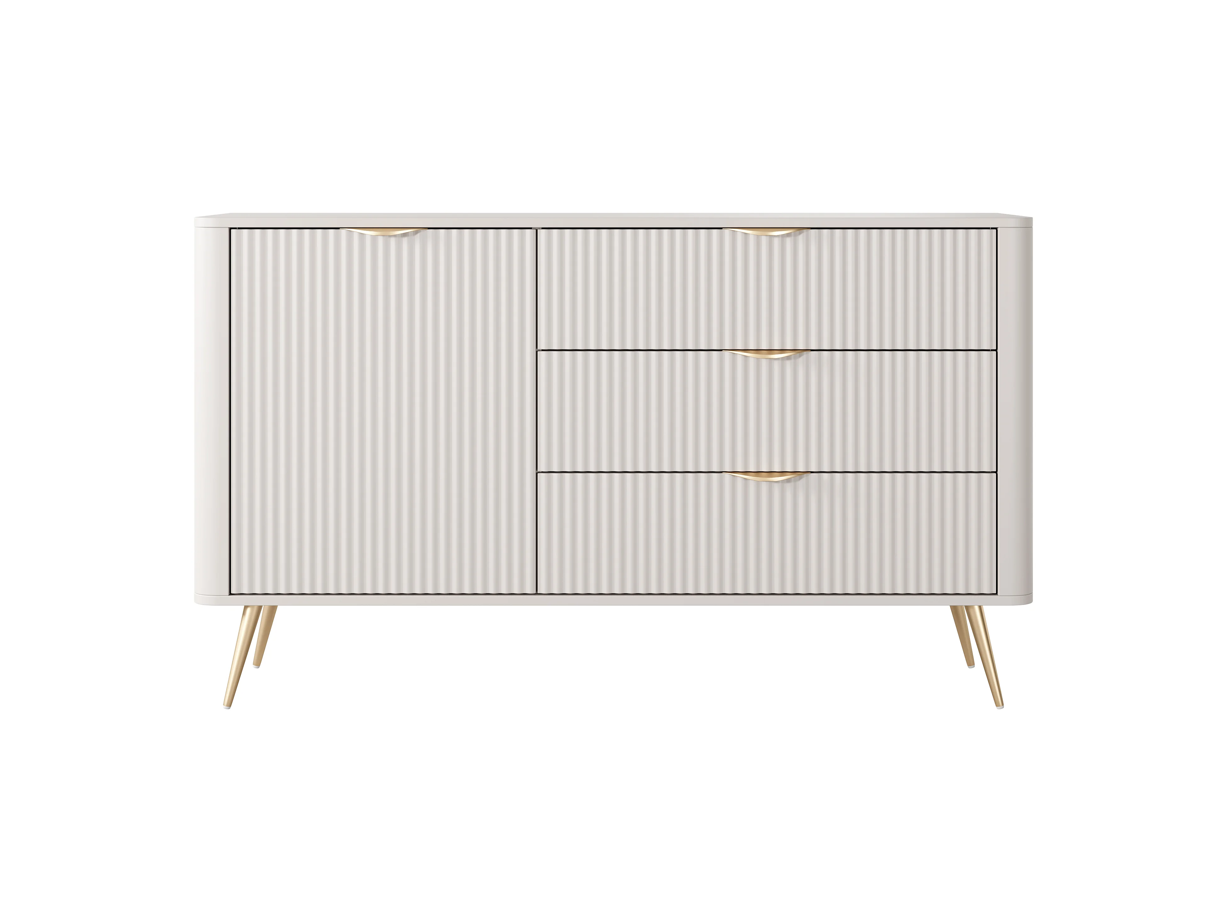 Commode : 3 Tiroirs, 1 Porte, Beige, 138,2 x 38 x 81,2 cm