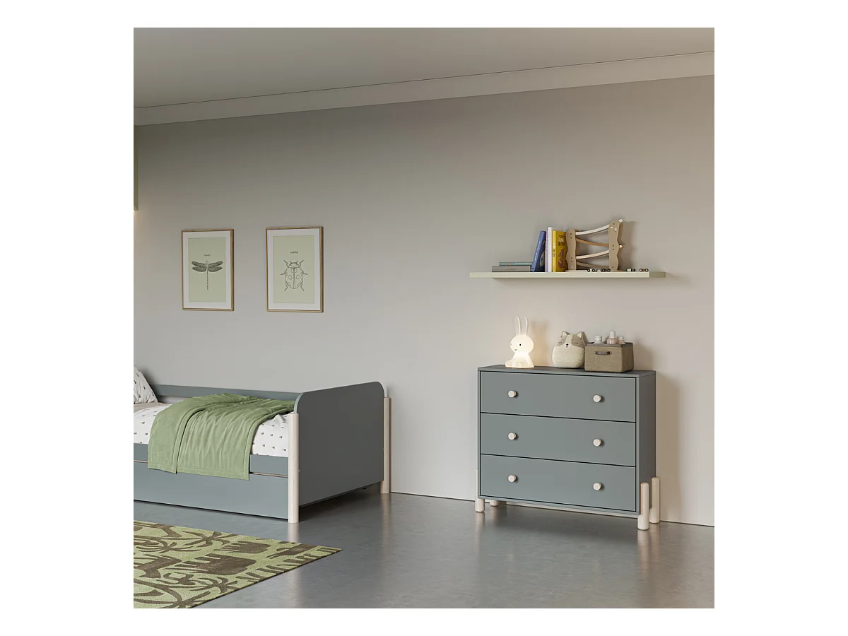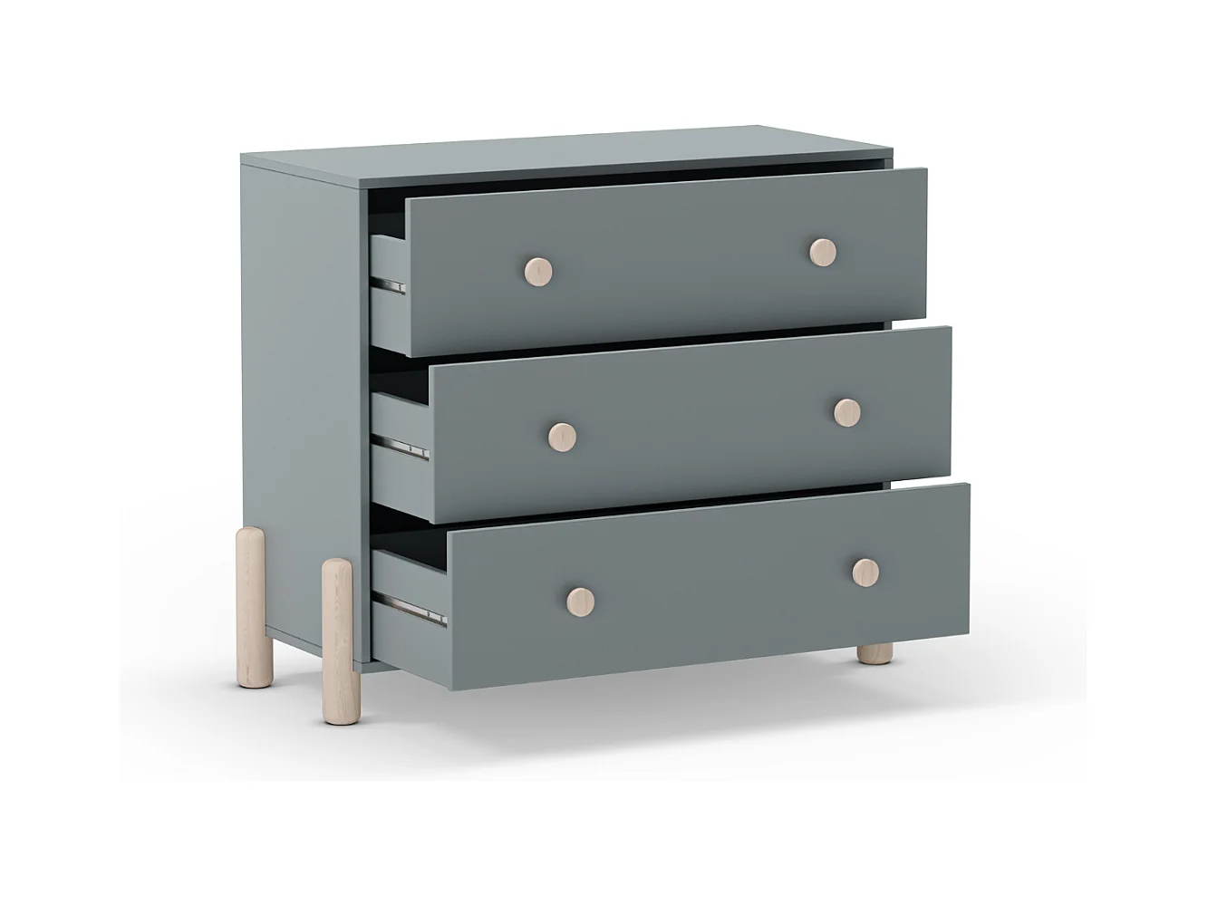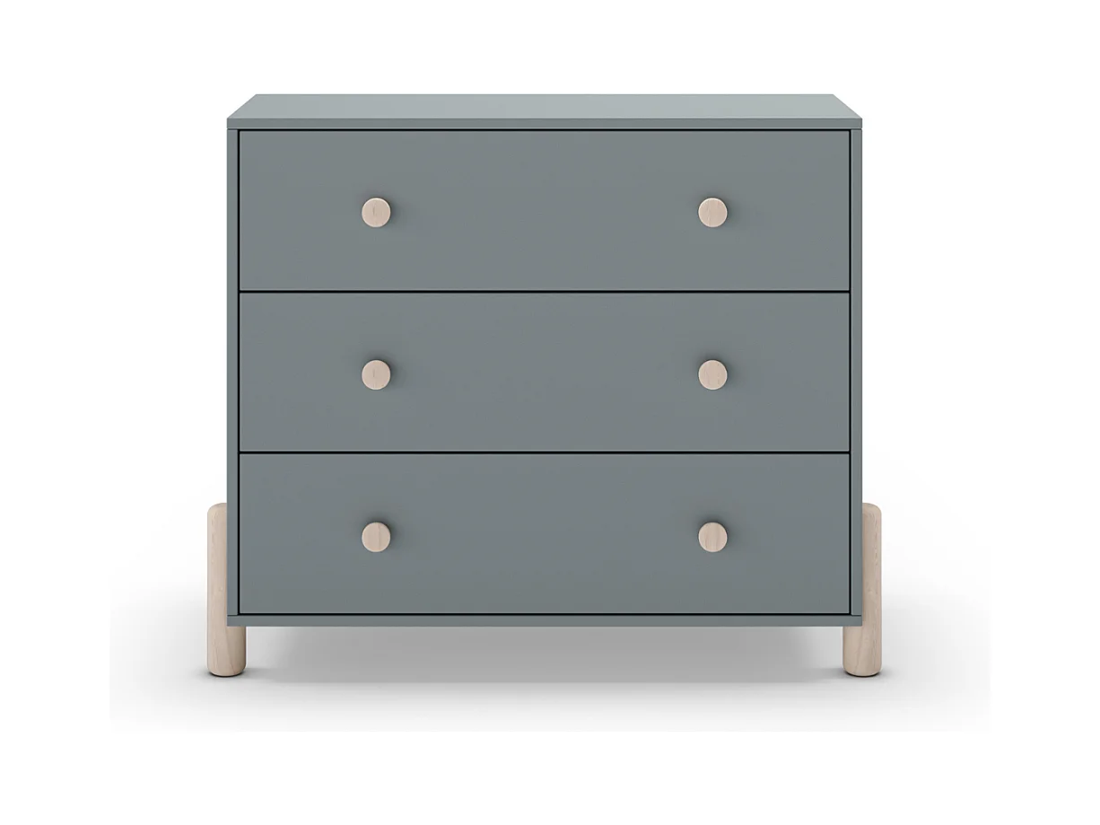 Chiffonnier 4 tiroirs laqué gris et pieds chêne massif clair Pecas