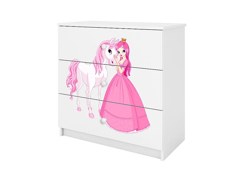 Commode 3 tiroirs Babydream La princesse et le cheval - Blanc